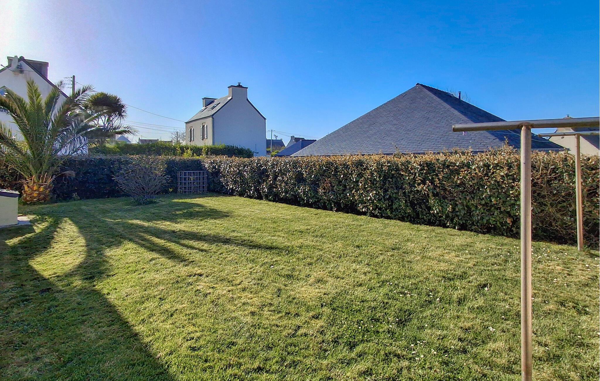 Dette frittliggende feriehuset ligger i landsbyen Stréjou i nærheten av Plouguerneau. Interiøret er hyggelig, og utenfor finner du en inngjerdet hage med plen, hagemøbler og grill. Her er du på ferie i fantastiske omgivelser med hyggelige turstier og eksepsjonelle panoramaer. Den uberørte kystlinjen er innen gangavstand, og en nydelig sti for fotturer og sykling går langs kysten, der vakre hvite sandstrender, steinete viker og elvemunninger går hånd i hånd. Når du spaserer langs vannkanten, kan du få et glimt av fyret på Île Vierge, det høyeste fyret i Europa. På markedet i Lesneven, ikke langt unna, kan du få regionale produkter fra land og hav. 2 parkeringsplasser.