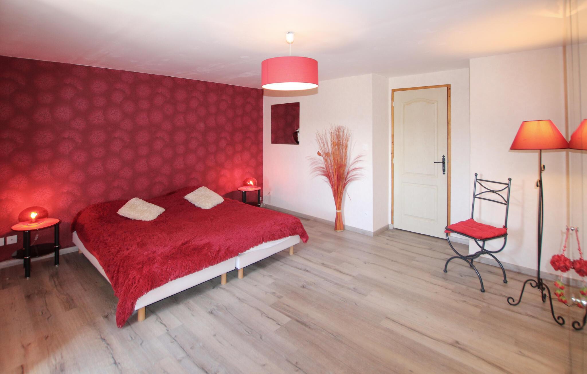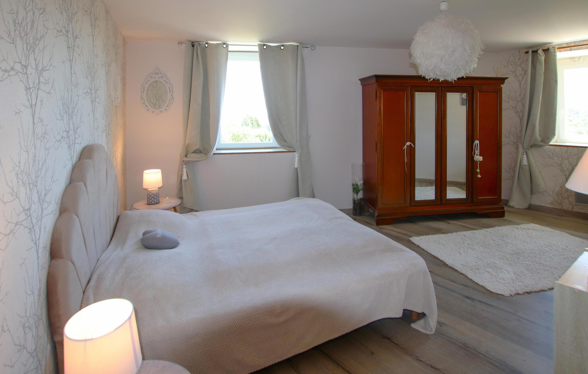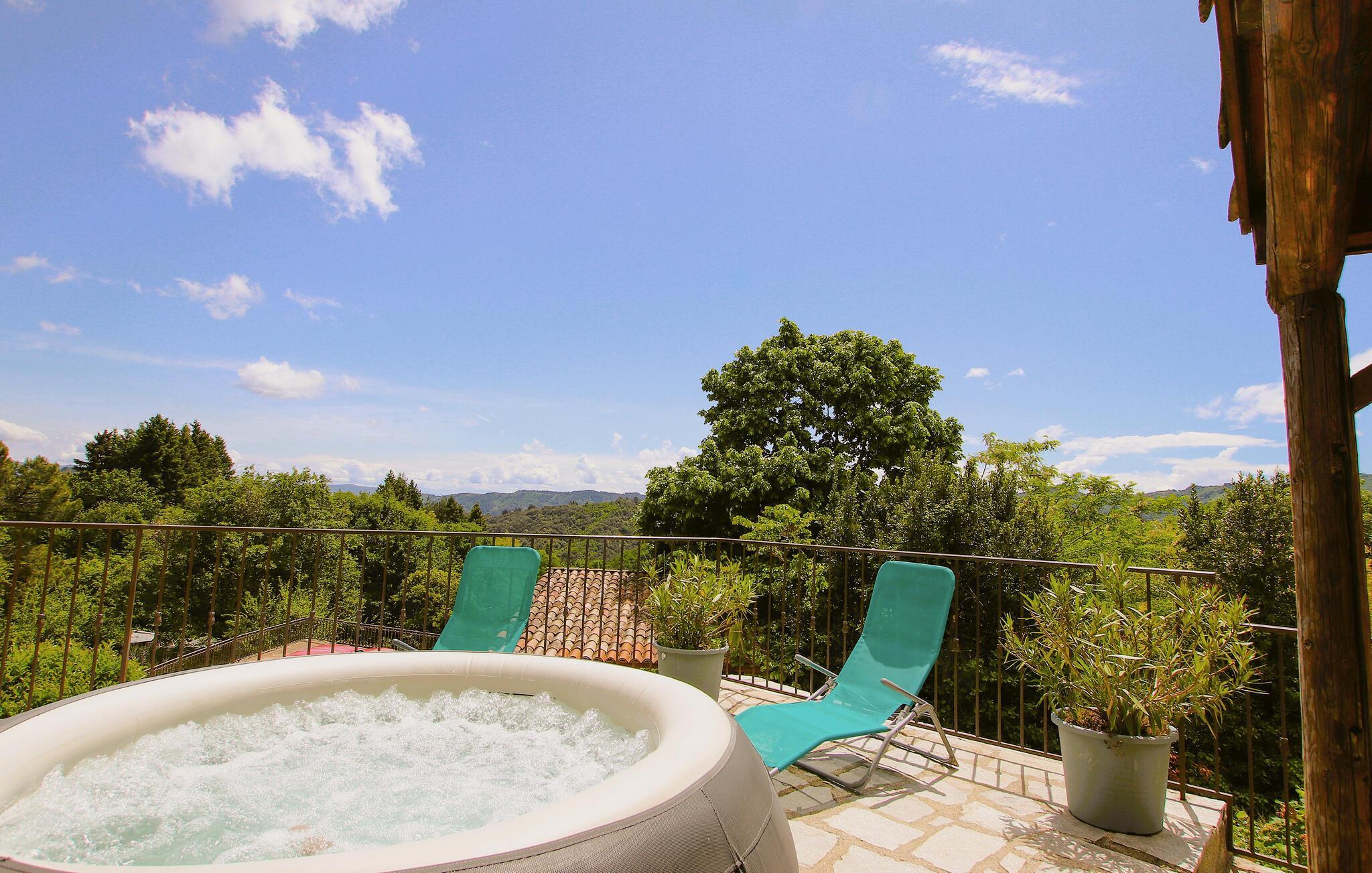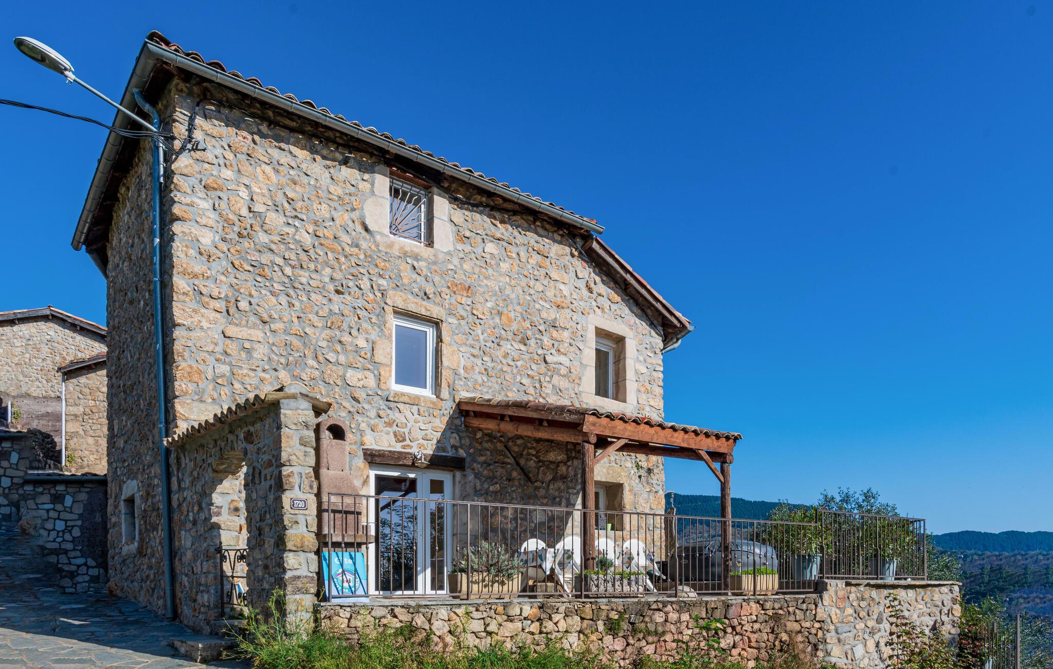 Dette smakfullt innredede og nennsomt restaurerte natursteinhuset ligger i de skogkledde åsene i naturparken Monts d'Ardèche, i utkanten av en historisk landsby, og skjemmer deg bort med en fantastisk panoramautsikt over landskapet. Lag deilige måltider på det romslige kjøkkenet, og slå deg ned i den innbydende stuen for koselige spillkvelder.