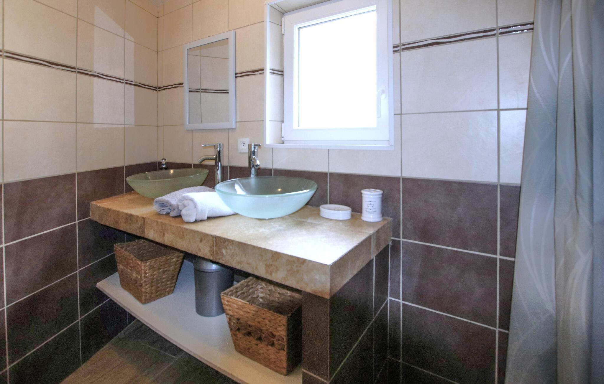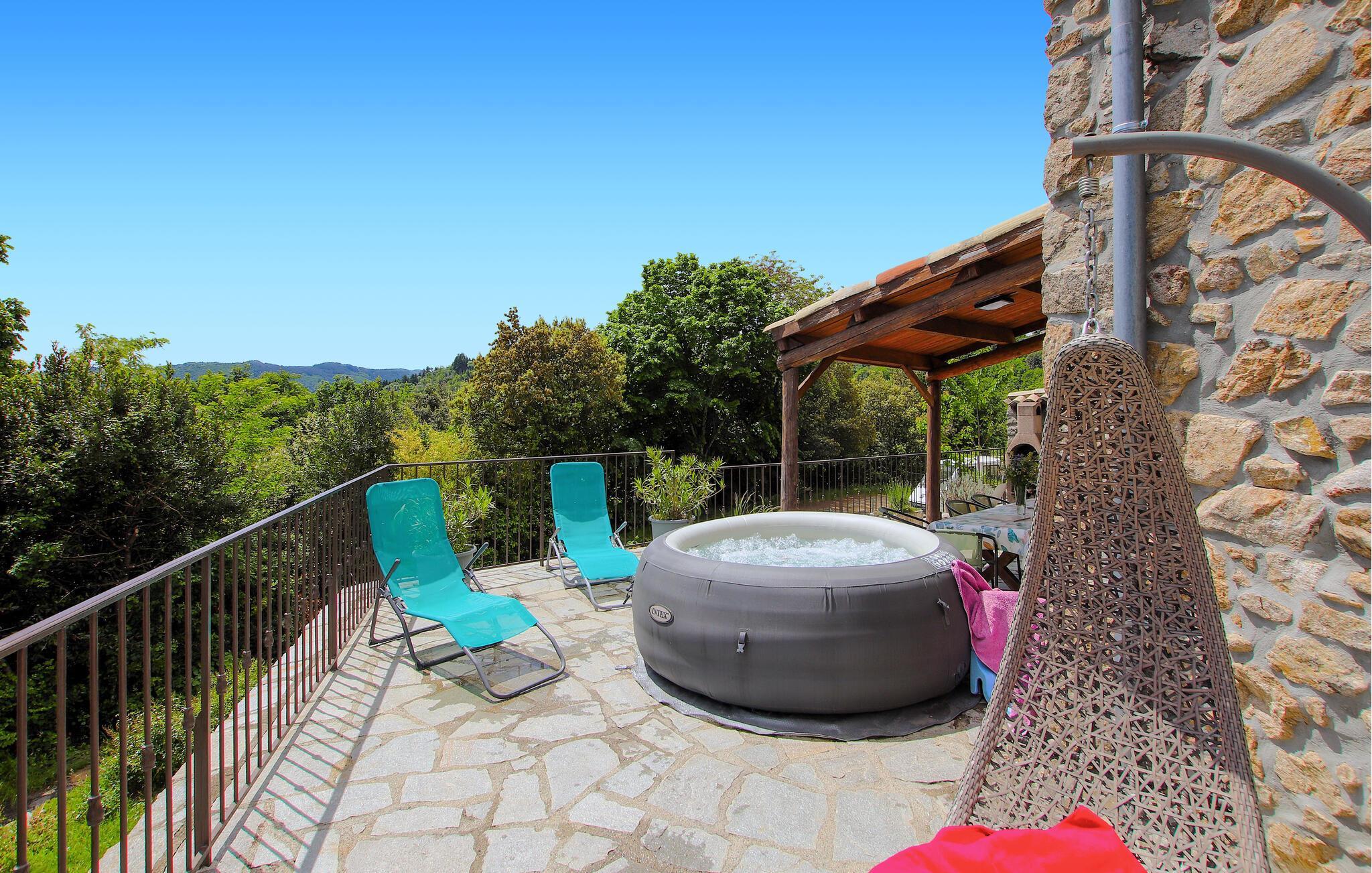 Tilbring en herlig ferie i dette komfortable feriehuset med en romantisk terrasse og boblebad.