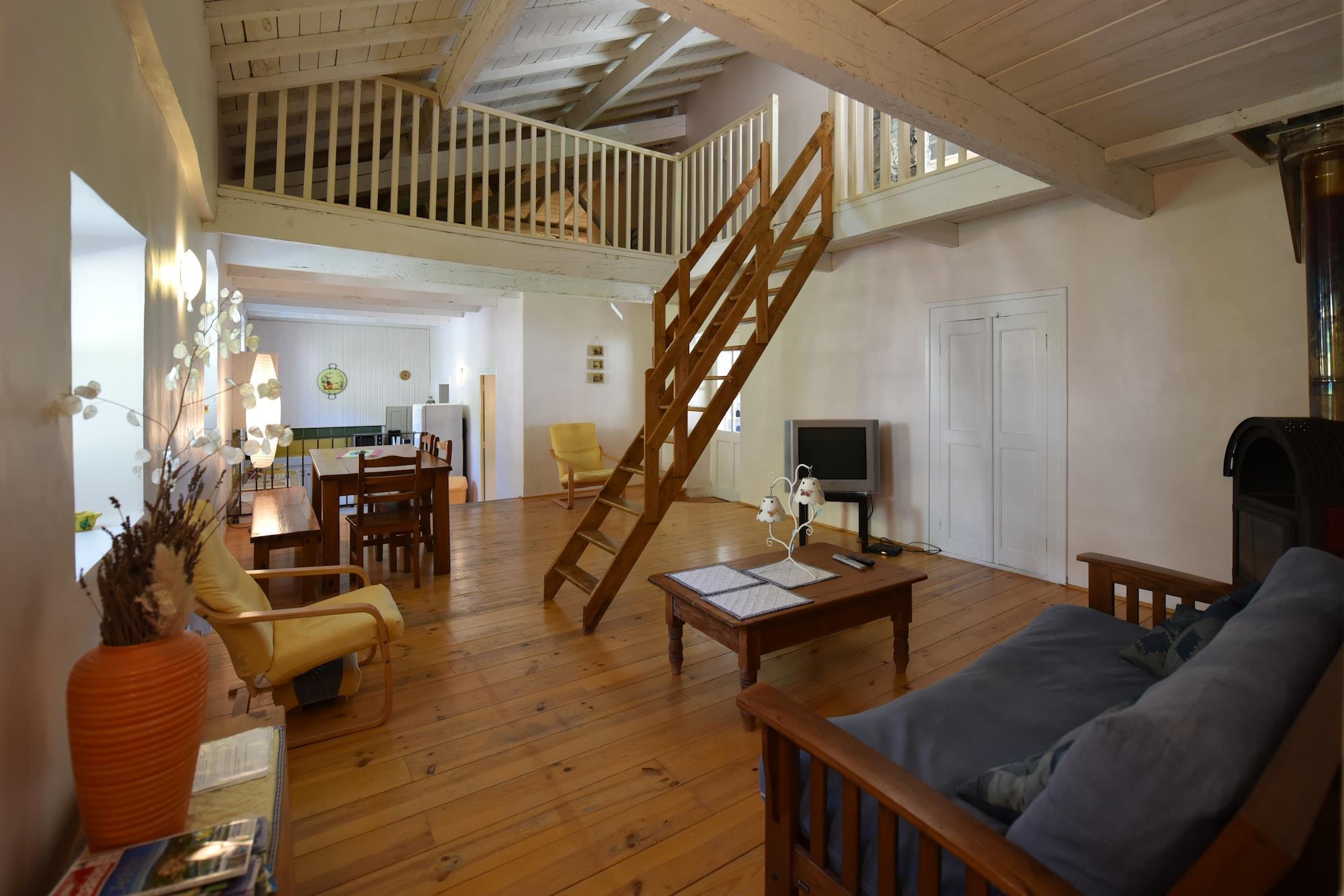 Første etasje: (åpent kjøkken(mikrobølgeovn, oppvaskmaskin, kjøleskap med fryser), Stue/spisestue(TV, vedovn(tre), DVD-spiller), soveværelse(2x enkeltseng), soveværelse(køyeseng), bad(dusj, toalett)) Mellomliggende etasje: (dobbeltseng(dobbeldyne)) kaffetrakter, stekovn, kjøleskap, fryser, vaskemaskin, oppvarming(elektrisk), terrasse(overdekket), terrasse(privat), hage(deles med andre gjester), hagemøbler, grill, svømmebasseng(deles med andre gjester, 12 x 5 m., opened from 1/2 May upto and including 1/2 Oct)