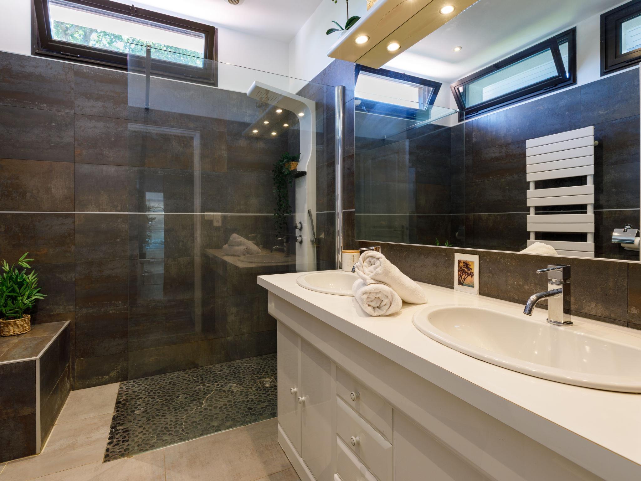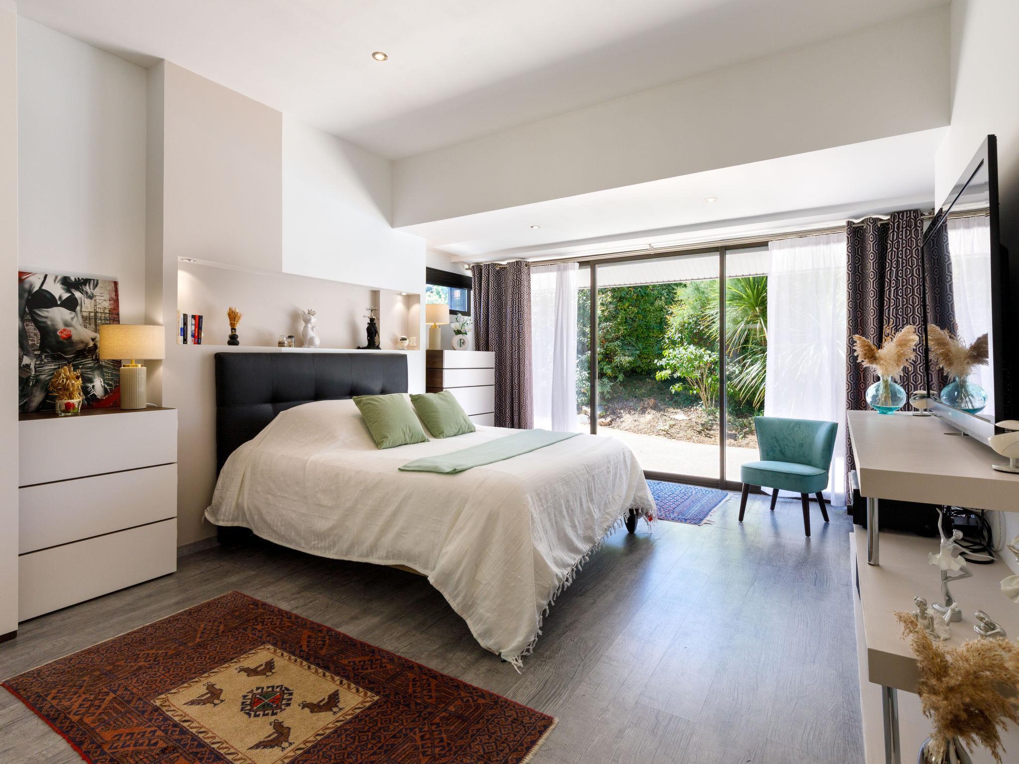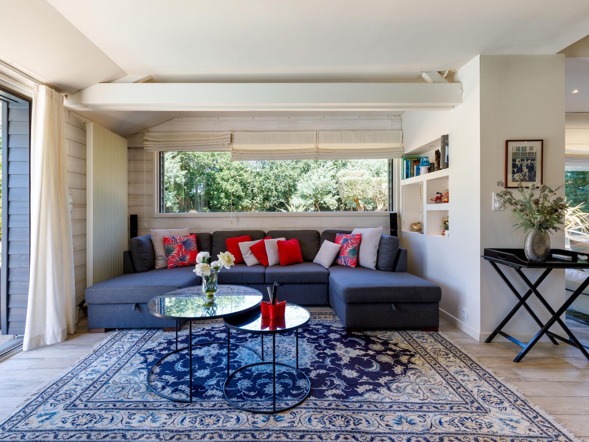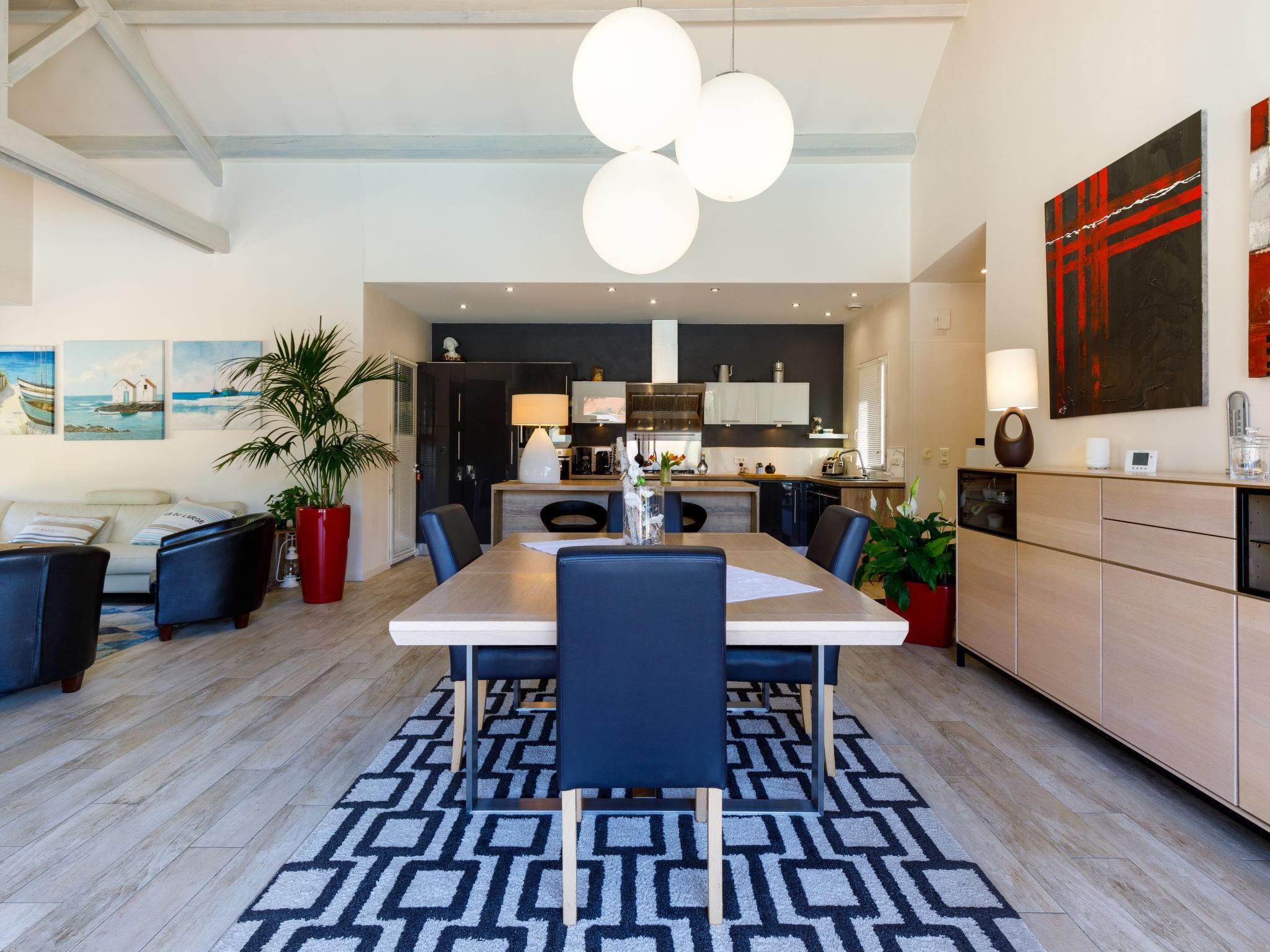"Le Grand Large", 6-room villa 195 m2, south facing position. Spacious, modern furnishings: living/dining room 90 m2 with open-hearth fireplace (only for decoration), TV (flat screen), Home cinema. Exit to the terrace, south facing position. 3 rooms, each room with 1 french bed (1 x 140 cm, length 190 cm). 2 rooms, each room with 1 french bed (1 x 160 cm, length 200 cm). Open kitchen (oven, dishwasher, 5 gas rings, toaster, kettle, microwave, freezer, electric coffee machine). Shower, 2 showers/WC, sep. WC. Floor heating. Large terrace, south facing position. Terrace furniture, barbecue, deck chairs. Facilities: washing machine, iron, hair dryer. Internet (WiFi, free). Parking (fenced). Please note: non-smoking house. Smoke alarm. No internal connecting door between the separated properties. The pool mentioned in the description is for private use. Main house: 150 m², 3 bedrooms and annex: 45 m², 2 bedrooms. Offer by a private individual according to Art. 155, IV of CGI. 44131000926NO