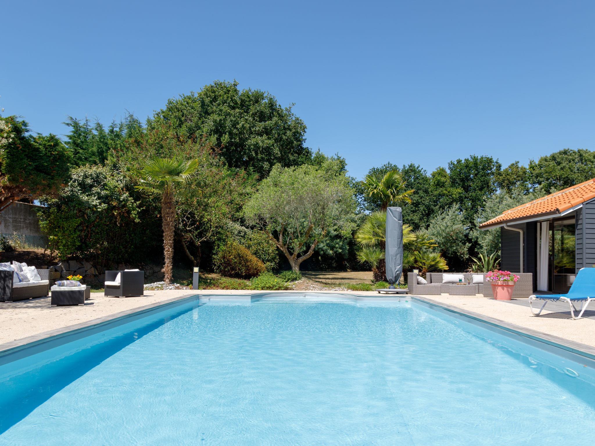 Large, beautiful villa "Le Grand Large". Property composed of main house and outbuilding, in the district of La Fontaine aux Bretons, in a quiet, sunny position, 900 m from the sea, 900 m from the beach, in a cul-de-sac, south facing position. Private: property 3'500 m2 (fenced), well-kept garden with lawn and trees, swimming pool heated (6 x 11 m, depth 120 - 180 cm, seasonal availability: 15.Jun. - 15.Sep.) with shutter cover. Garden furniture, barbecue, parking on the premises. Shop 2 km, grocery 2 km, supermarket 2 km, restaurant 2 km, bakery 2 km, 40 minute walk to the centre, bus stop "La Fontaine aux Bretons" 300 m, railway station "Pornic" 3 km, sandy beach "La Fontaine aux Bretons" 900 m (small), thermal baths "Alliance Pornic Thalasso & Spa" 2 km. Sports harbour 3 km, golf course (18 hole) 7 km, minigolf 7 km. Nearby attractions: Pornic Aventure Accrobranche 5 km, Legendia Parc 20 km, Planète Sauvage 28 km, La Baule 46 km, Nantes 48 km, Ile de Noirmoutier 55 km. Well-known lakes can easily be reached: Lac de Saint Viaud 21 km. Hiking paths: Sentier des Douaniers 900 m.
