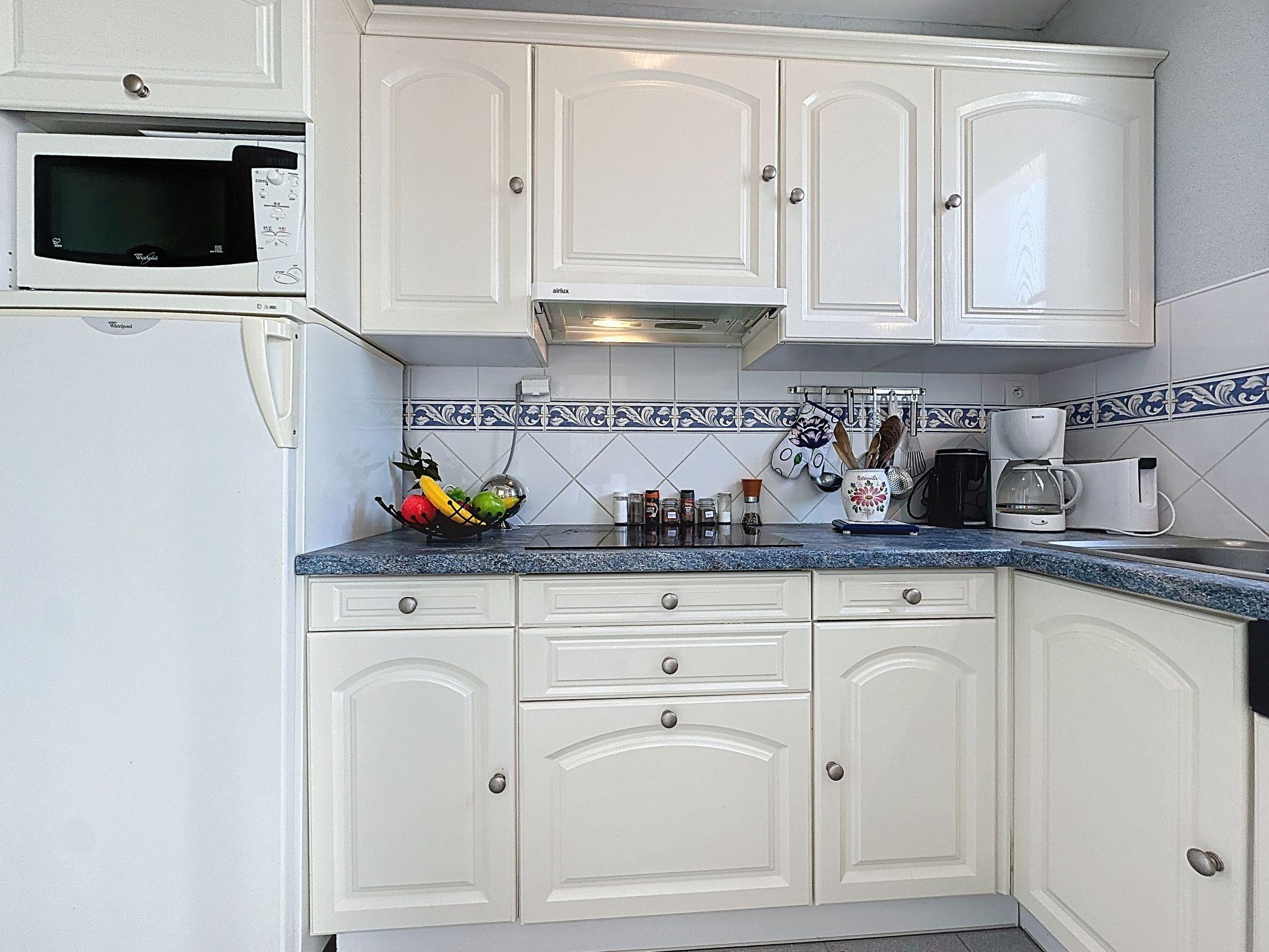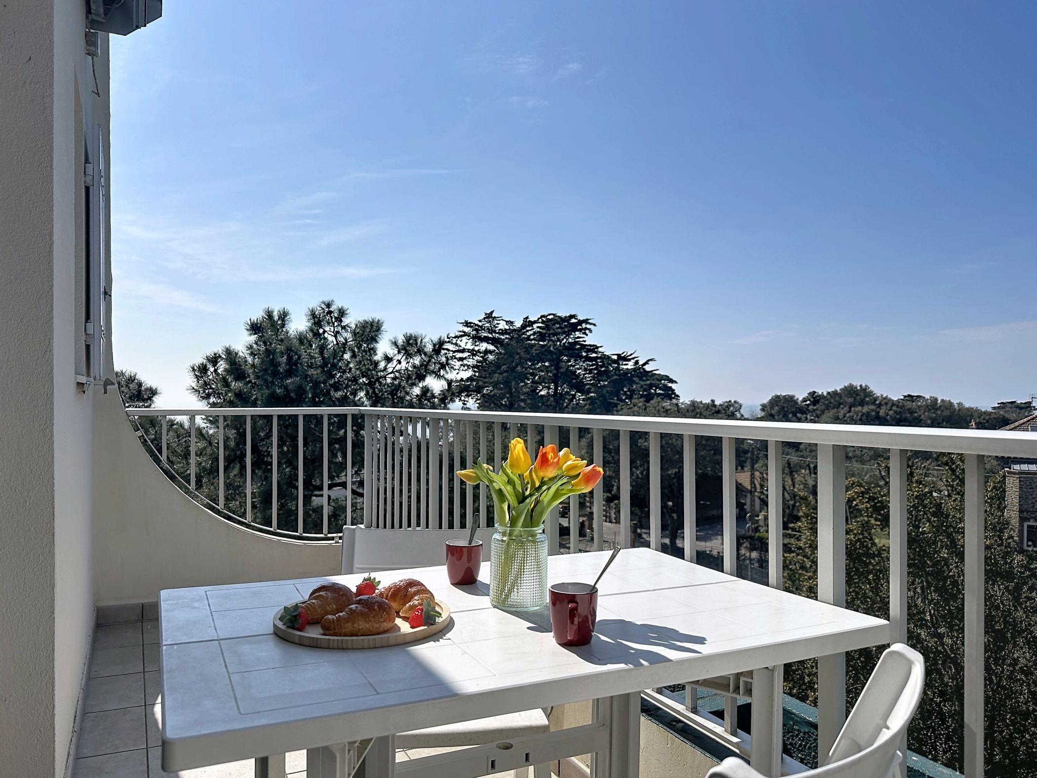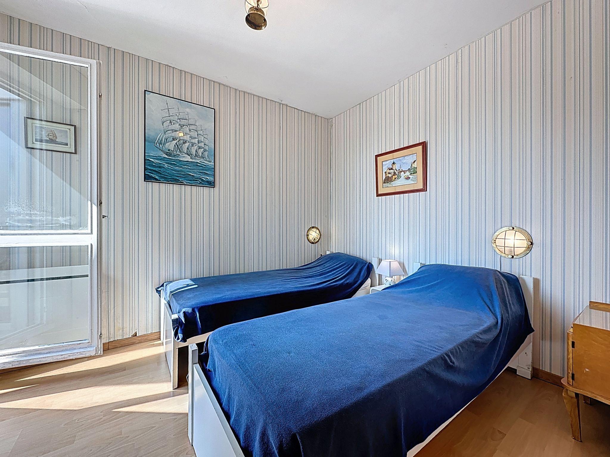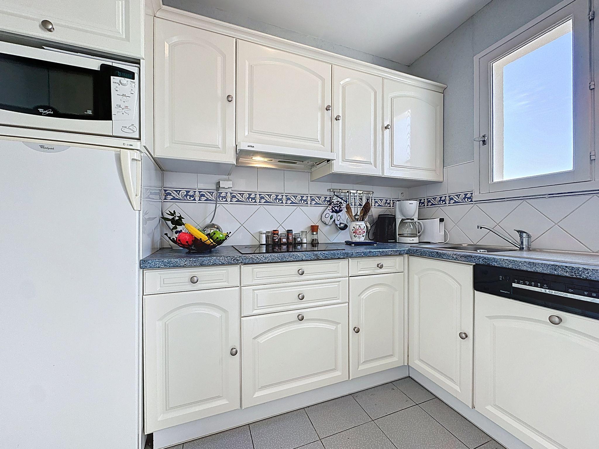"Les Criques", 2-room apartment 38 m2 on 4th floor, west facing position. Simple and beautiful furnishings: living/dining room with 1 double fold-away bed (1 x 140 cm, length 190 cm), TV (flat screen). Exit to the balcony, west facing position. 1 room with 2 beds (80 cm, length 190 cm). Exit to the balcony, south facing position and west facing position. Open kitchen (dishwasher, 4 induction hot plates, toaster, kettle, electric coffee machine, combination microwave). Bathroom, sep. WC. Electric heating. Balcony 10 m2, south facing position and west facing position. Balcony furniture, deck chairs (2). Partial view of the sea. Facilities: washing machine, iron, hair dryer. Internet (WiFi, extra). Parking space n 40 (fenced 1 car). Please note: non-smokers only. Smoke alarm. Offer by a private individual according to Art. 155, IV of CGI. 44131001401HF