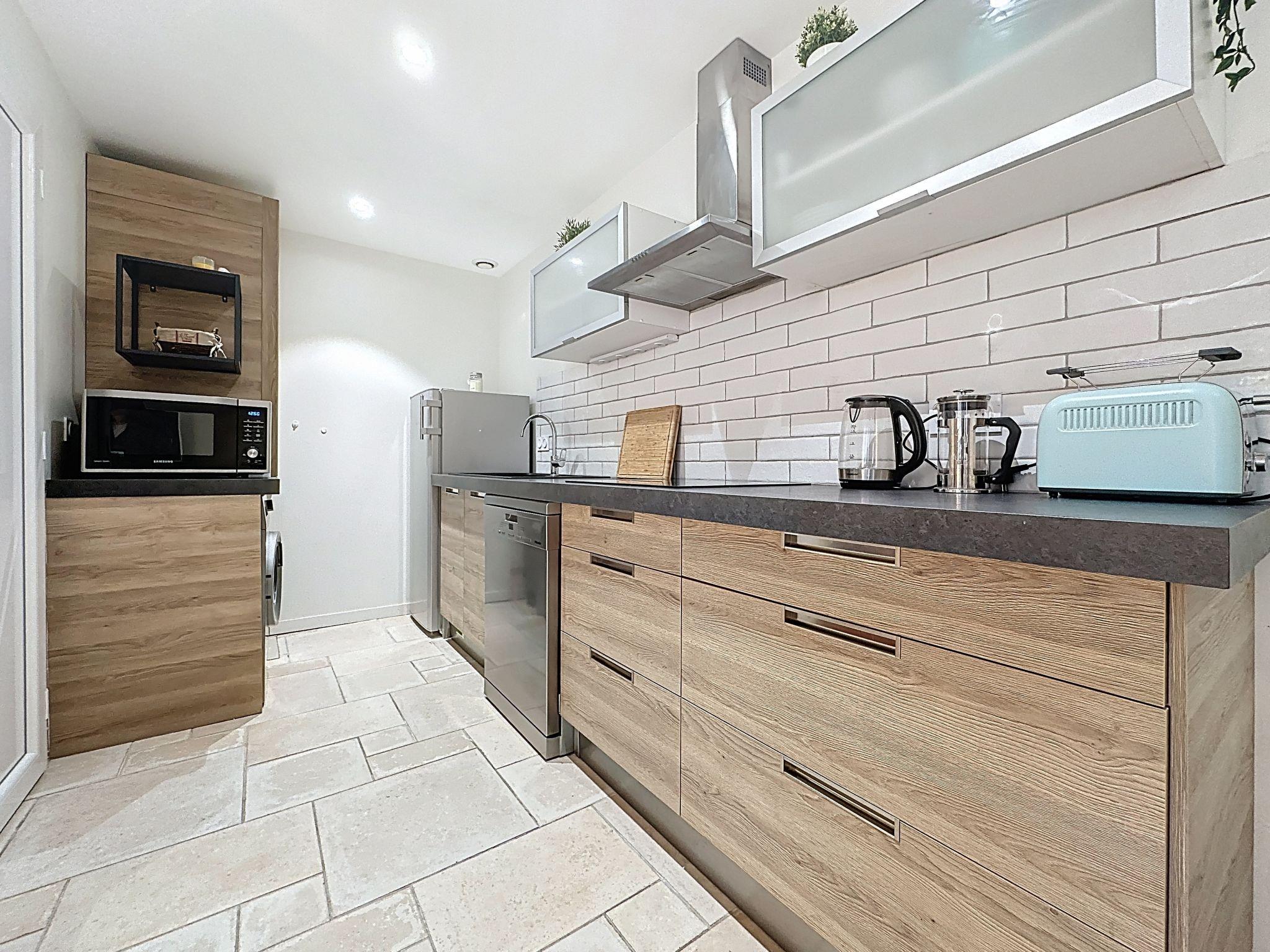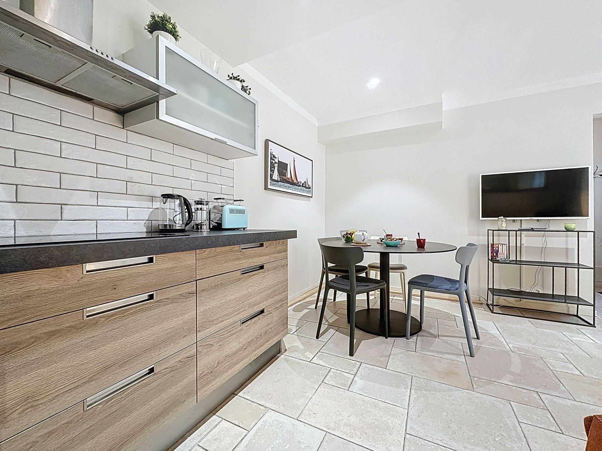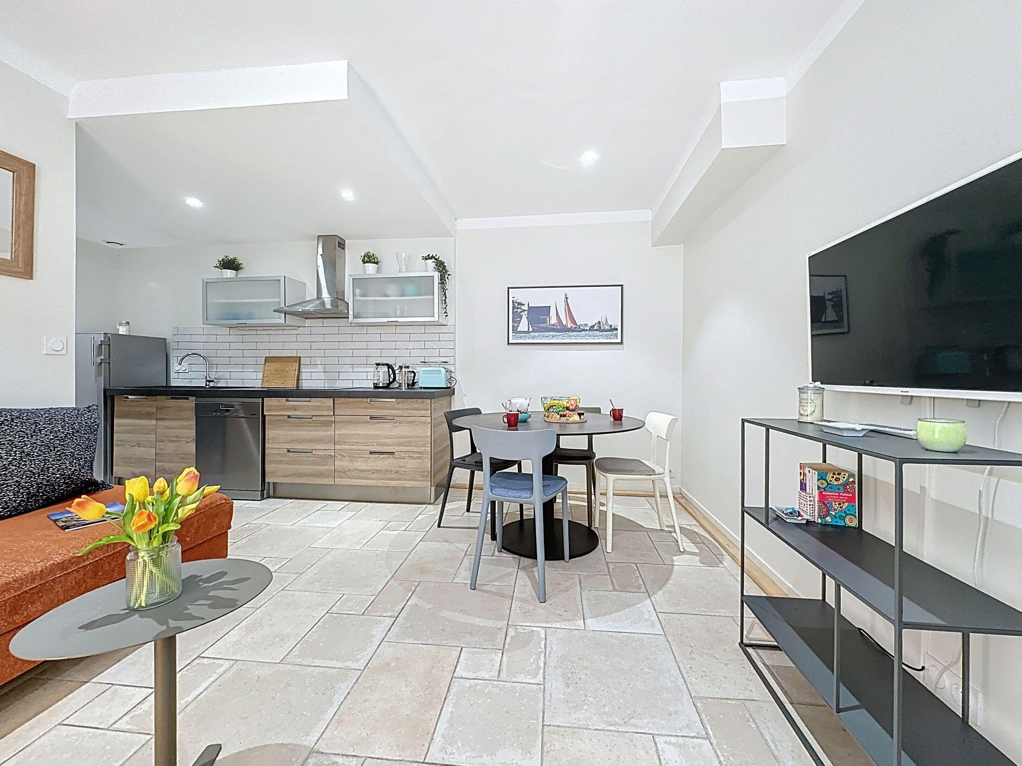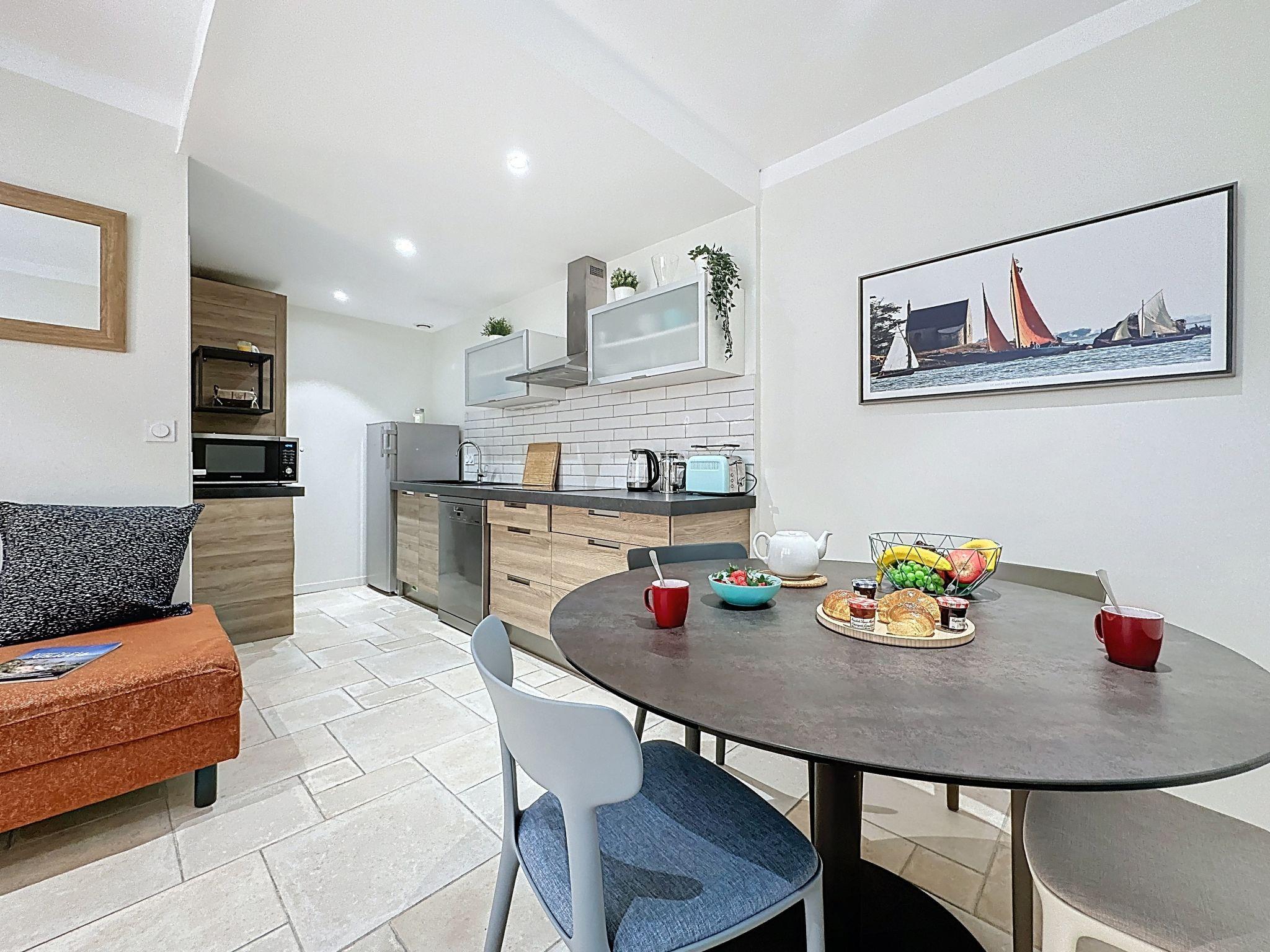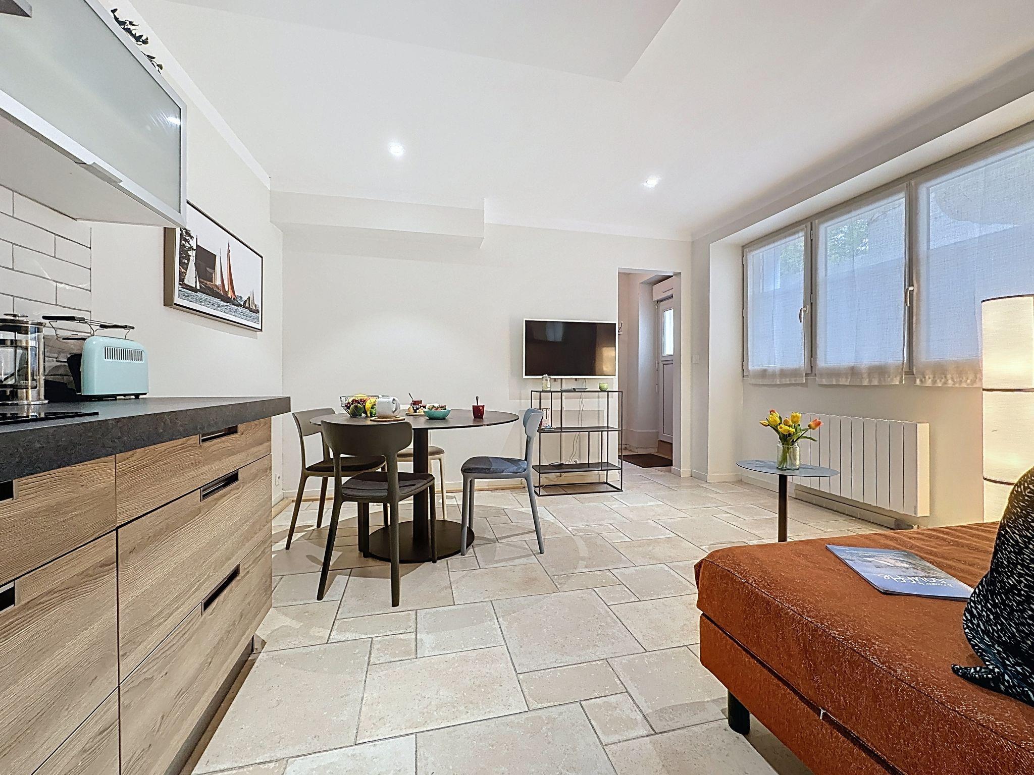 Terraced house "La Potée". In the district of Halles, excellent location: right in the centre but still quiet, 300 m from the sea, 300 m from the beach, in a pedestrian area. In the house: storage room for bicycles, washing machine. Public parking 120 m. Grocery 150 m, supermarket 1.2 km, restaurant, bakery 100 m, bus stop "Verdun" 120 m, railway station "Pornic" 700 m, sandy beach "Plage du Château" 300 m, thermal baths "Alliance Pornic Thalasso & Spa" 1.6 km. Sports harbour 250 m, golf course (18 hole) 1.5 km, minigolf 1.5 km. Nearby attractions: Marché des Halles 75 m, Faïencerie de Pornic 400 m, La Bernerie en Retz 8 km, La Baule 42 km, Nantes 48 km.