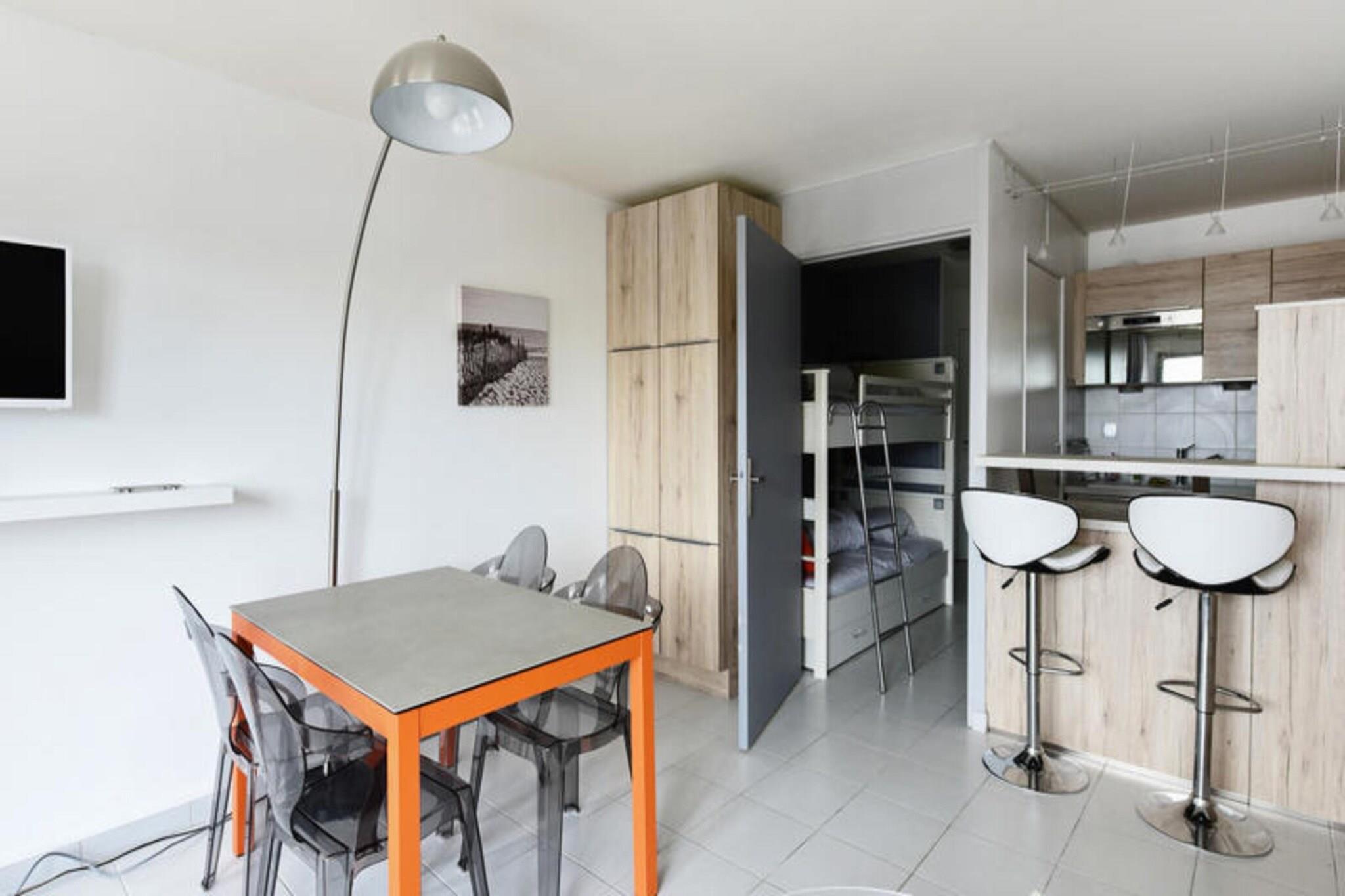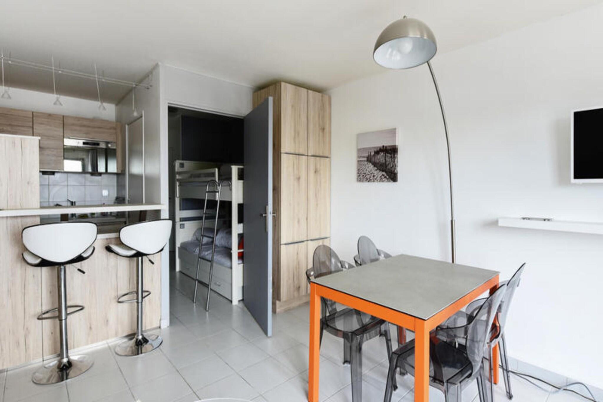 Denne sjarmerende studioleiligheten, som ligger i Pornichet, tilbyr en perfekt ferie for opptil fire personer. Den har en koselig stue med dobbel sovesofa, et hytteomr?de med k?yesenger og et moderne bad med badekar-dusj og separat toalett. Eiendommen er kj?ledyrvennlig, og tillater dine lodne f?lgesvenner mot en ekstra avgift. Gjestene vil nyte bekvemmeligheten av en balkong med havutsikt, hvor du kan slappe av og nyte de vakre omgivelsene. Studioet har essensielle fasiliteter som TV, Wi-Fi (tilgjengelig mot et pristillegg) og senget?y og h?ndkl?r (tilgjengelig mot et pristillegg). Leiligheten har en ideell beliggenhet n?r tre sandstrender, perfekt for bading og soling, samt forfriskende turer langs kyststien. Utforsk den pulserende lokale arven, handle p? markedet, eller nyt en dag p? veddel?psbanen eller kasinoet. For de som s?ker avslapning, er det to thalassoterapisentre i n?rheten som tilbyr foryngende behandlinger. I tillegg gir utend?rsaktiviteter som nautisk sport og familievennlige utflukter mange muligheter for underholdning. Innvendig er leiligheten utstyrt med et fullt funksjonelt kj?kken, slik at gjestene kan tilberede sine egne m?ltider. Kj?kkenet har n?dvendig utstyr for et praktisk opphold. Et spisebord med fire stoler er tilgjengelig for komfortable m?ltider. Leiligheten har ogs? en privat balkong med sitteplasser, ideell for ? nyte det solfylte v?ret og havutsikten.