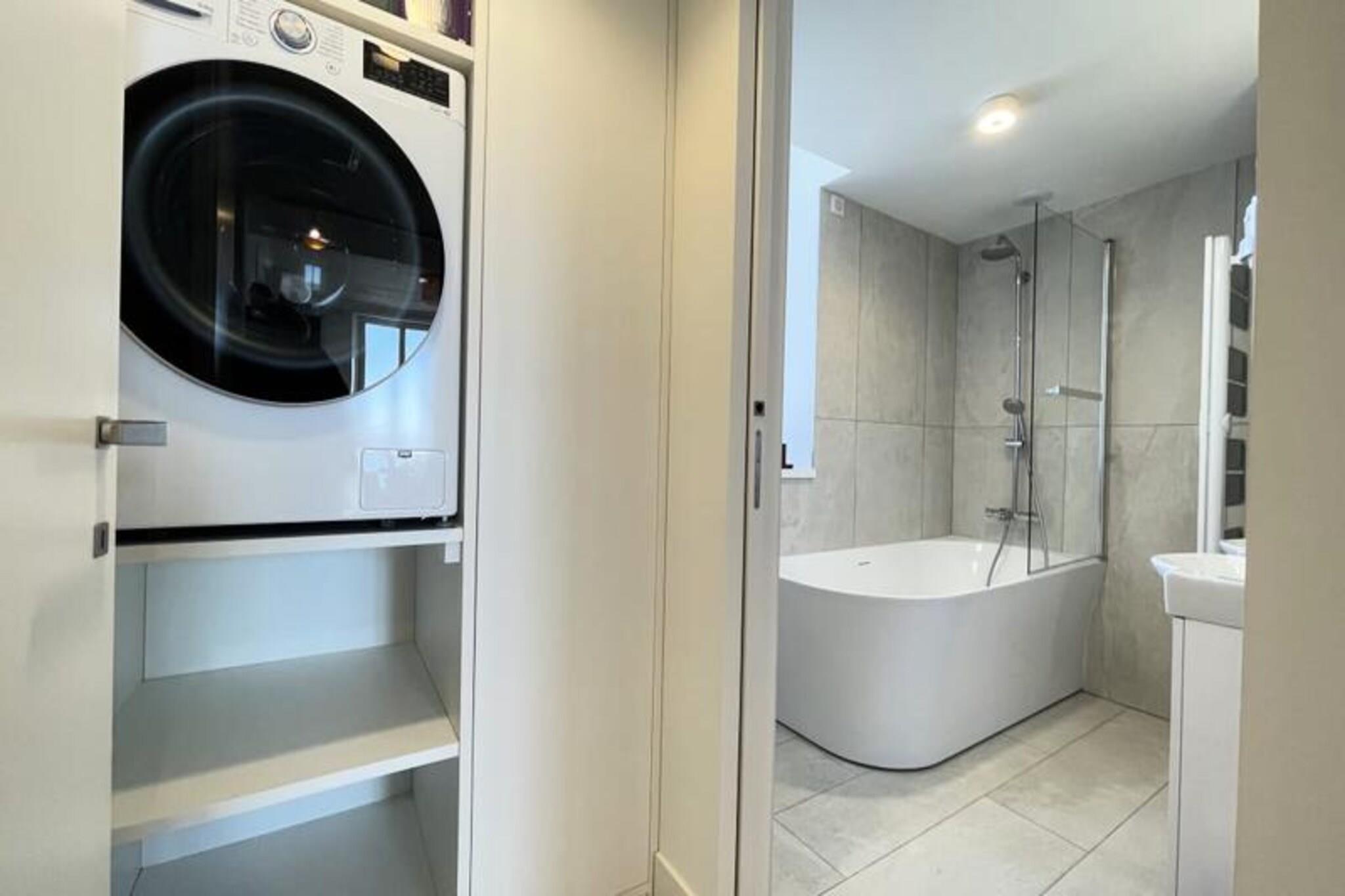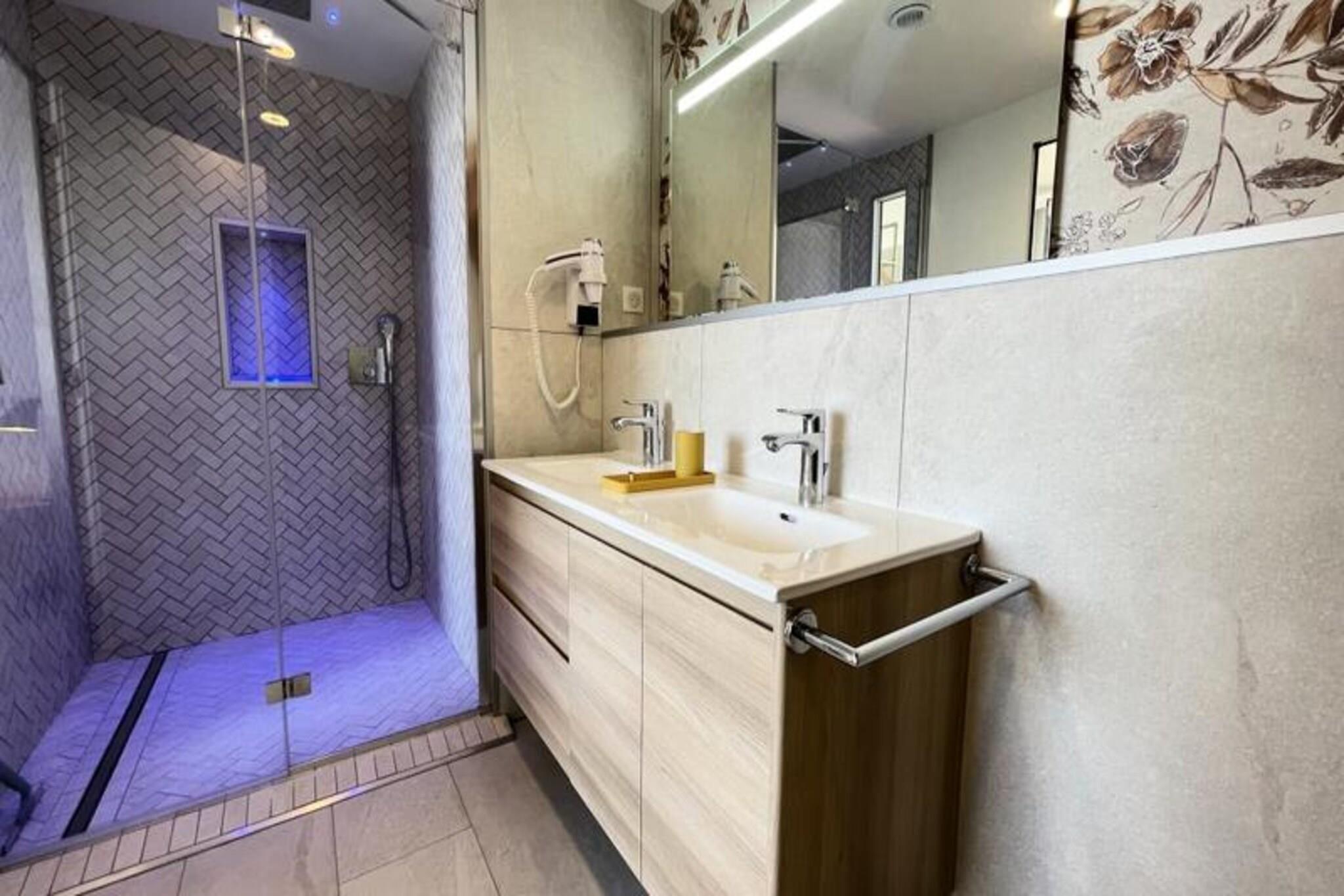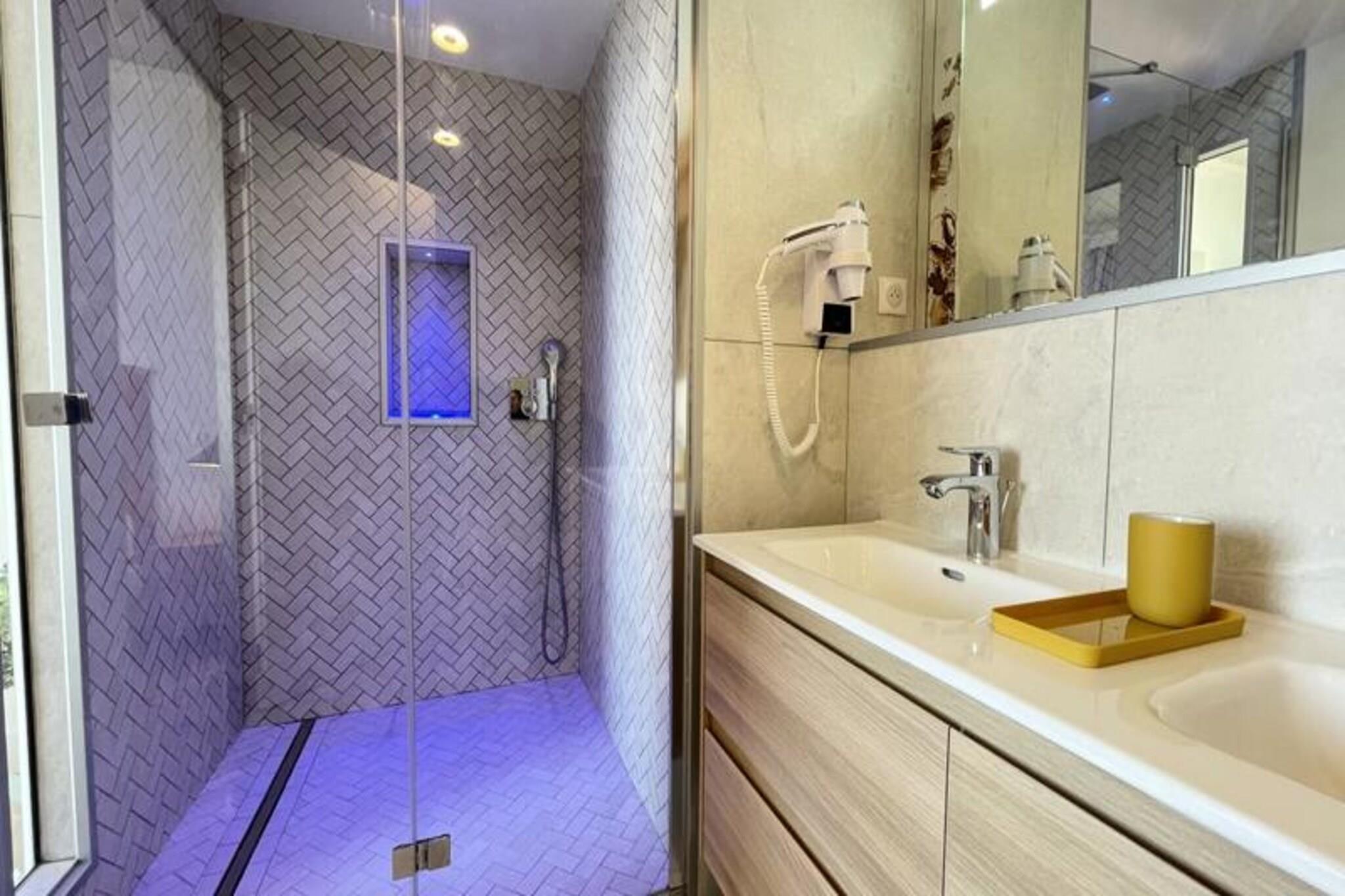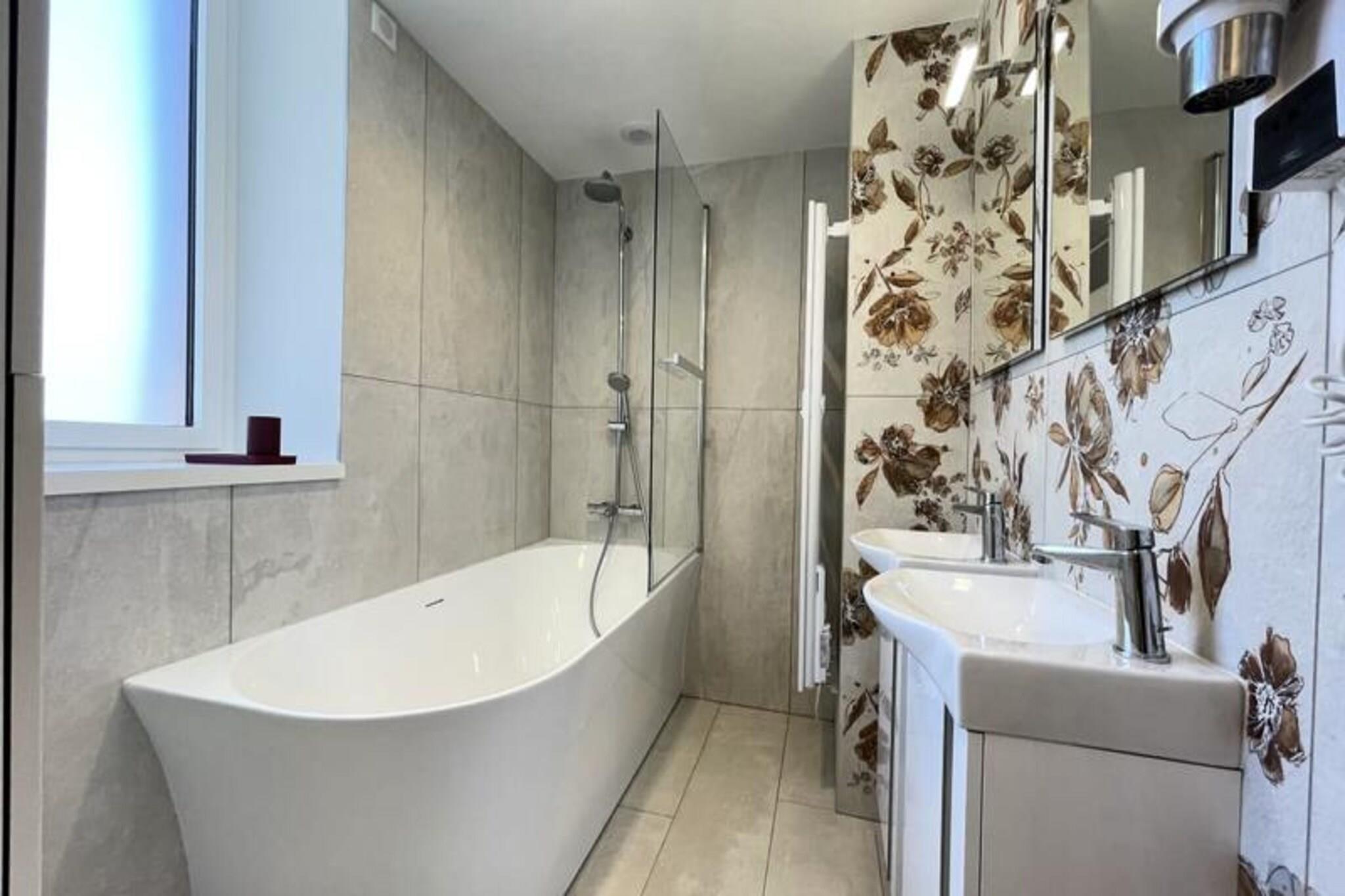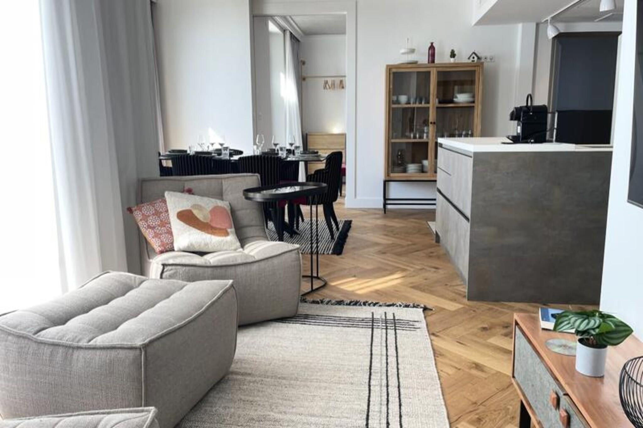 Denne T4-leiligheten tilbyr hotelllignende komfort med et romslig interi?r med klimaanlegg og vakker havutsikt. Ligger i andre etasje i en hundre ?r gammel bygning, og har tre soverom, to med sj?vendte balkonger, og en mastersuite med eget bad. Leiligheten har plass til opptil seks personer med komfortabelt senget?y og kvalitetssenget?y. Vaskemaskin, t?rketrommel og Wi-Fi tilbys, og kj?ledyr er velkomne. Personlig service er tilgjengelig for ? sikre et hyggelig opphold. Denne leiligheten ligger i Pornichet, en livlig familievennlig badeby, n?r attraksjoner som stranden, marinaen og kasinoet. Omr?det byr ogs? p? lokale kafeer, butikker og livlige nabolag. Utforsk n?rliggende steder som saltmyrene i Gu?rande, Bri?re Regional Park og skipsbyggingsbyen Saint-Nazaire. Morbihan-bukten og Le Croisic er ogs? lett tilgjengelig for dagsturer. Leiligheten har et fullt utstyrt kj?kken med mikrob?lgeovn, stekeovn, oppvaskmaskin, kj?leskap og fryser. Et moderne bad, balkonger med havutsikt og tilleggstjenester som spa-hammam, massasjetjeneste og parkering (mot en ekstra avgift) s?rger for et avslappende opphold. Nyt den perfekte blandingen av gammeldags sjarm og moderne bekvemmelighet.