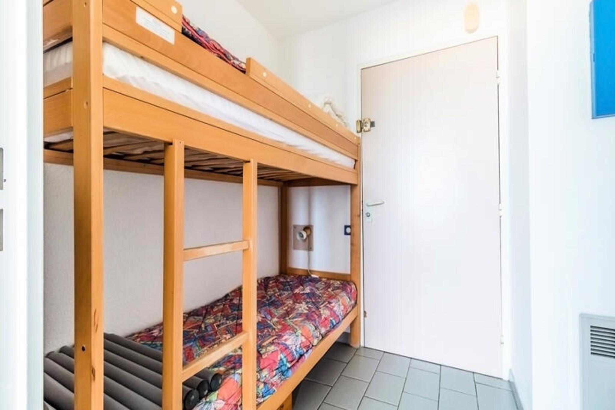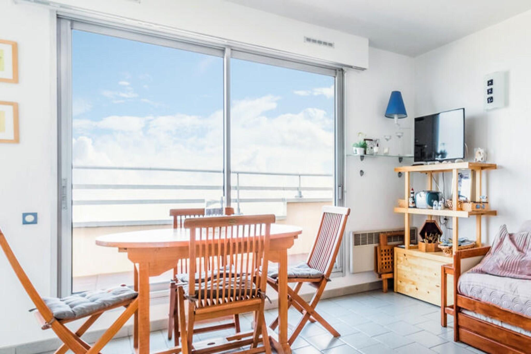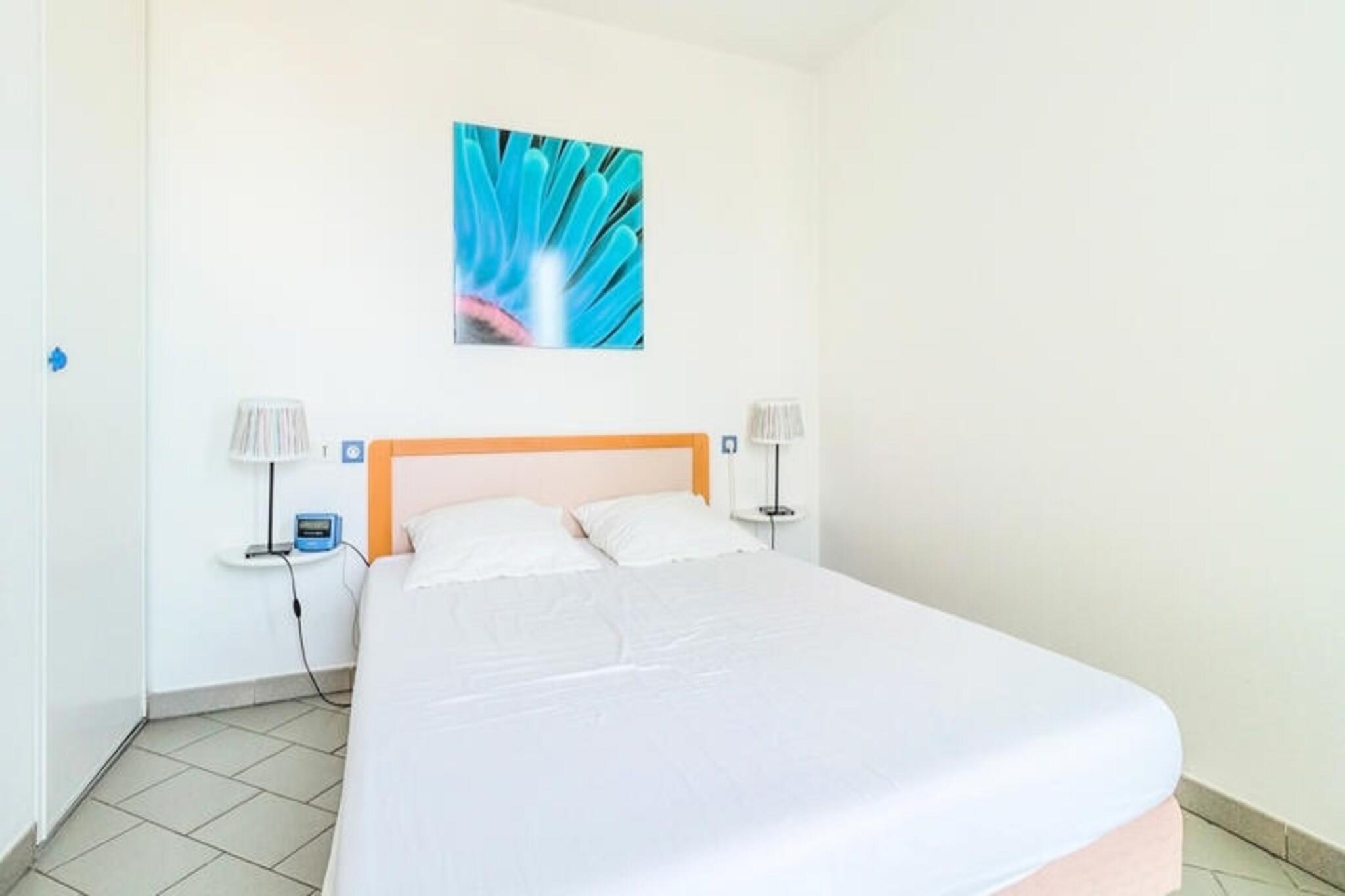 Denne koselige 44 m² store leiligheten ved sjøen tilbyr et komfortabelt og praktisk opphold for familier eller grupper. Den har ett soverom med dobbeltseng, stue med sovesofa og uttrekkbar seng, og hytteområde med to køyesenger. Leiligheten er kjæledyrvennlig, og tillater små kjæledyr på forespørsel. En møblert balkong med bord og stoler er et perfekt sted å nyte havutsikten, mens eiendommen inkluderer en lukket boks i den underjordiske parkeringen for din bekvemmelighet. Leiligheten ligger kun 20 meter fra stranden, og gir enkel tilgang til havet, og nærliggende aktiviteter som vannsport, golf og tennis er perfekt for friluftsentusiaster. Thalassoterapisenteret og butikkene ligger kun 600 meter unna, og tilbyr velværebehandlinger og ulike fasiliteter. Det berømte kasinoet og flere restauranter og kafeer ligger også innen gangavstand, noe som sikrer at gjestene har mye å utforske. Leiligheten har et fullt utstyrt kjøkkenområde atskilt fra stuen, perfekt for å tilberede måltider under oppholdet. Badet har badekar, og det er et separat toalett for ekstra bekvemmelighet. Et babysett er tilgjengelig etter avtale, med forbehold om tilgjengelighet, og leiligheten inkluderer også viktige fasiliteter som hårføner. Gjestene kan nyte ekstra velværetjenester på det nærliggende spaet og badstuen, kun ett minutts gange unna.