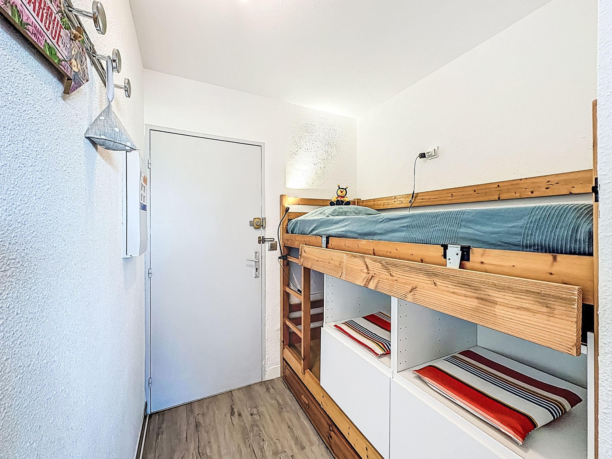 1-room studio 22 m2 on 2nd floor. Living/dining room with 1 double sofabed (1 x 140 cm, length 190 cm), TV (flat screen). Entrance hall with 1 bed (80 cm, length 180 cm). Kitchenette (oven, 2 ceramic glass hob hotplates, microwave, electric coffee machine). Shower/WC. Air-conditioning. Terrace 5 m2, east facing position. Facilities: washing machine. Internet (WiFi, extra). Parking space n 136. Please note: smoke alarm. Offer by a commercial proprietor according to Art. 155, IV, CGI