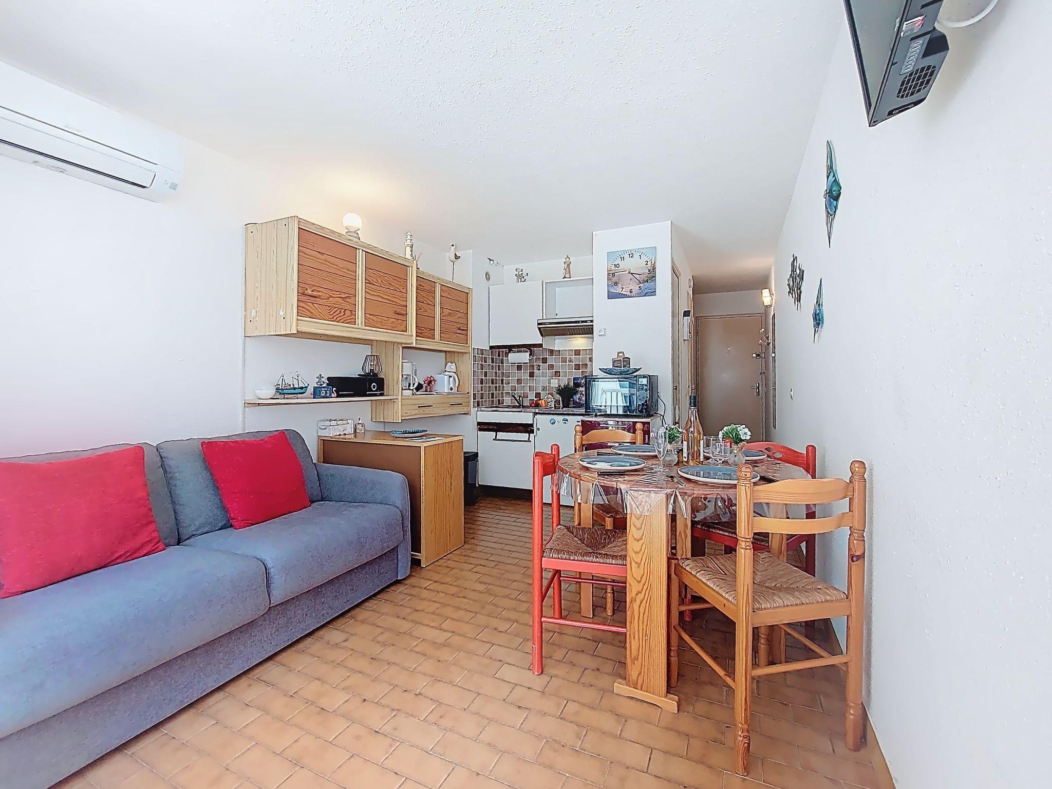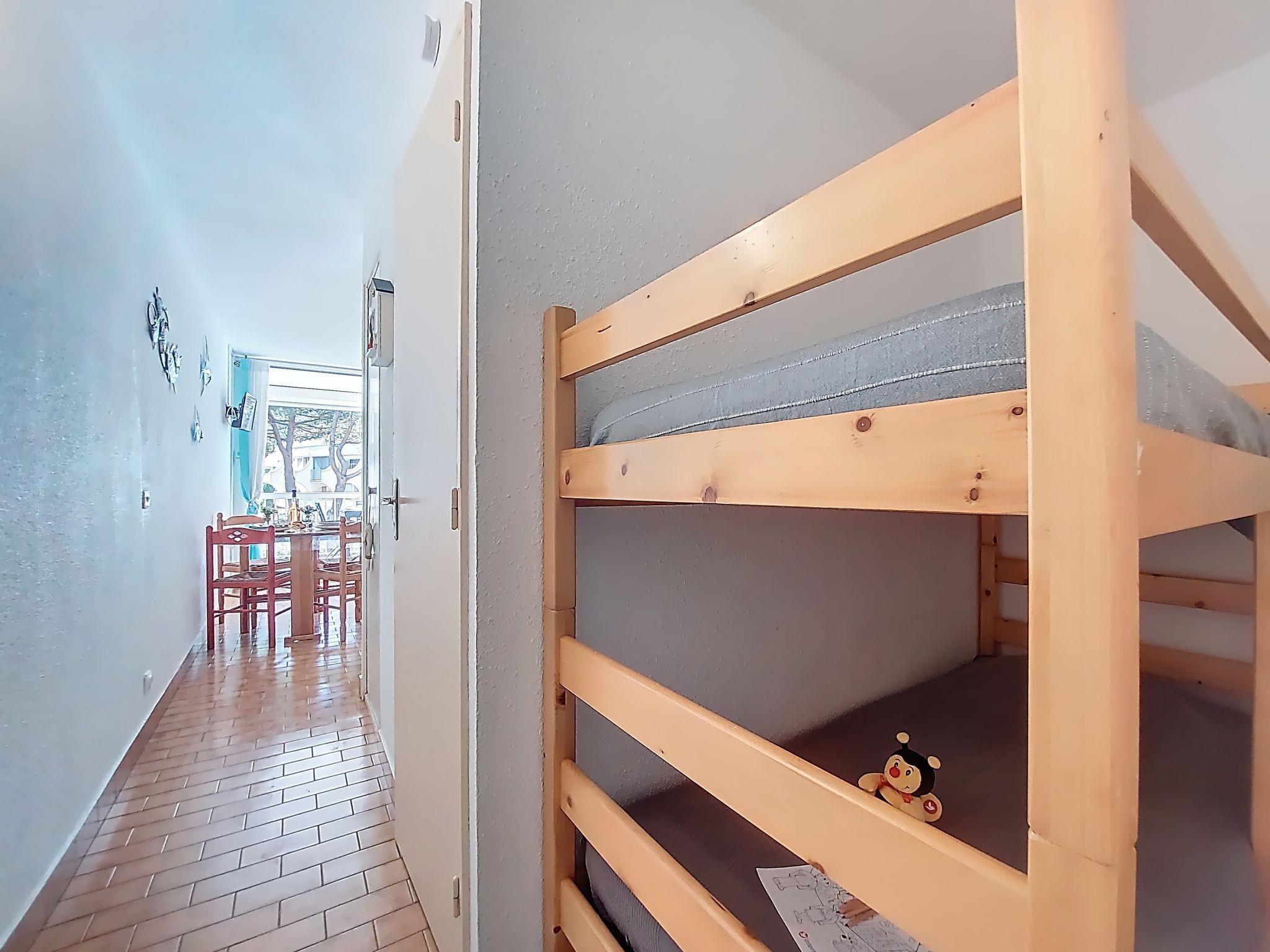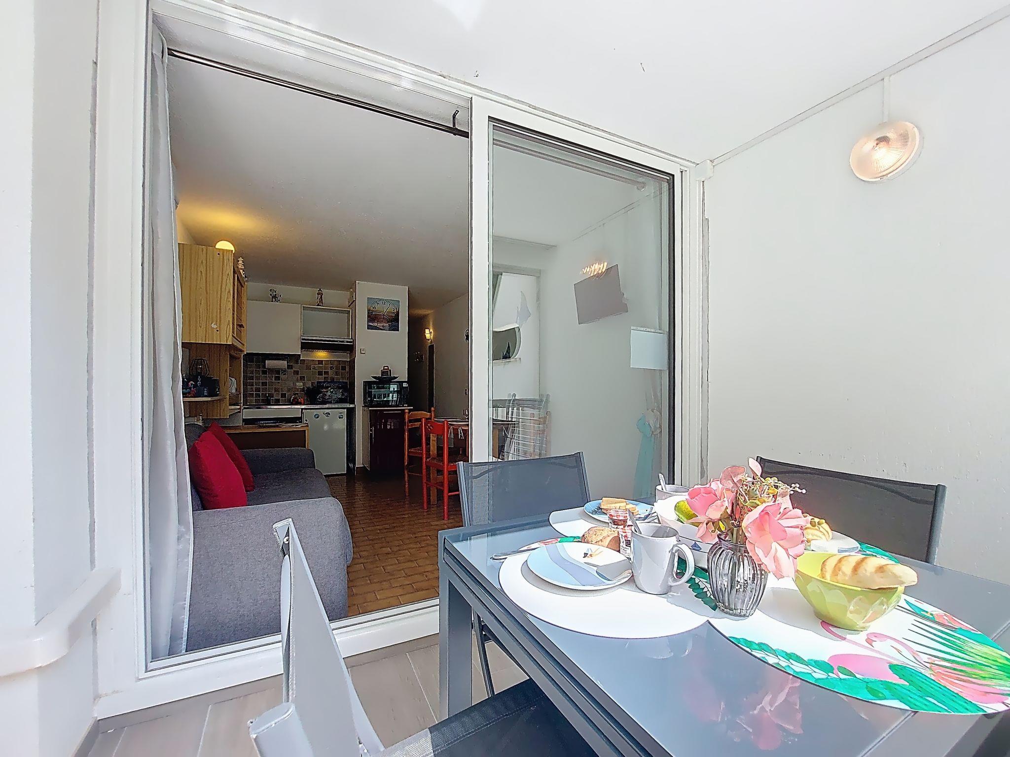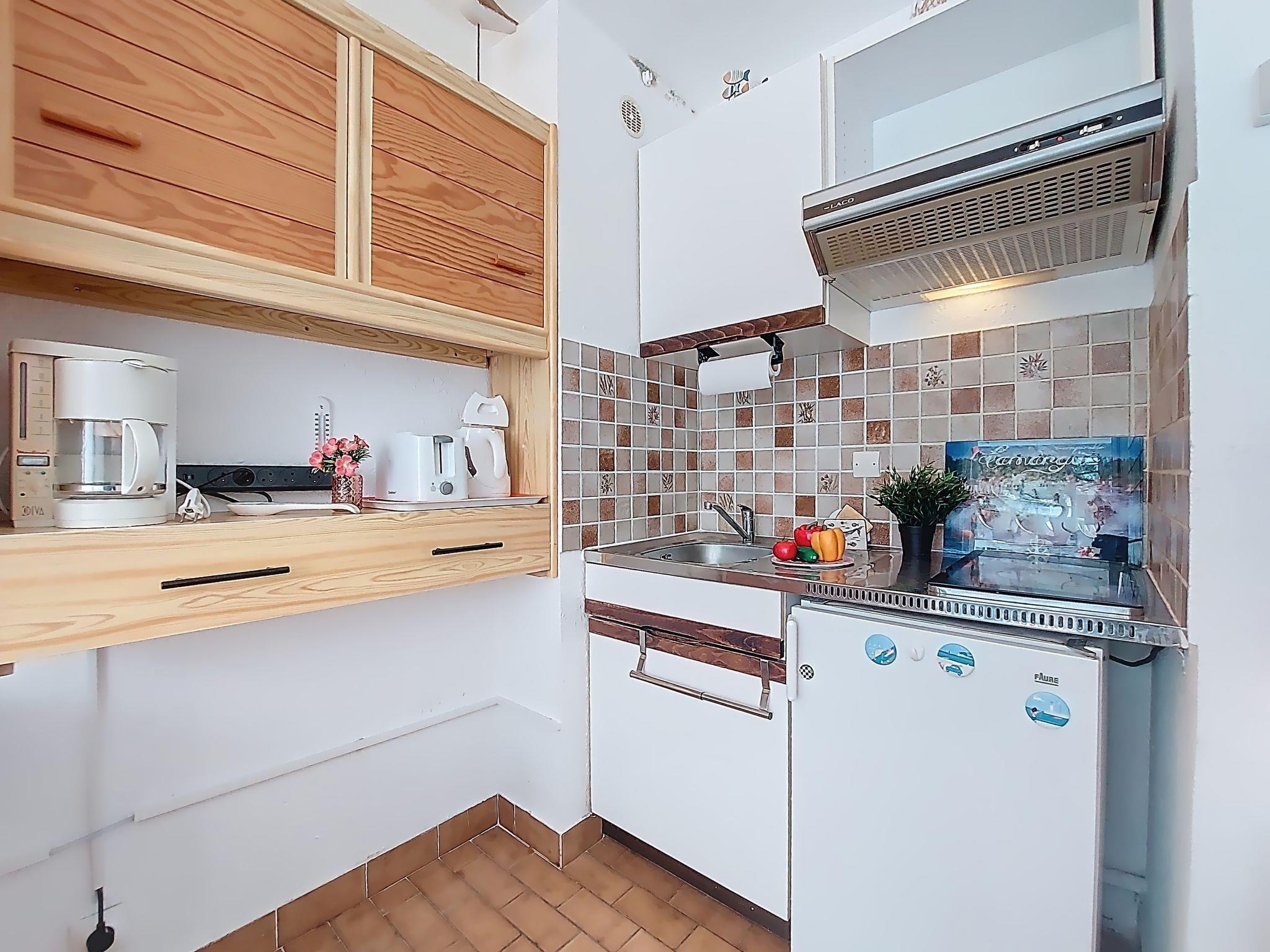 1-room studio 20 m2 on 1st floor. Object suitable for 2 adults + 2 children. Living/dining room with 1 double sofabed (140 cm, length 190 cm), TV and air conditioning. Sleeping alcove with 1 x 2 bunk beds (80 cm, length 185 cm). Kitchenette (mini-oven, 2 ceramic glass hob hotplates, microwave). Bath/WC. Terrace 6 m2, north-west facing position. Terrace furniture. Facilities: Internet (WiFi, extra). Parking. Please note: non-smokers only. Maximum 1 pet/ dog allowed. Smoke alarm. Instead of an enclosed bedroom, some sleeping areas are located in an open-plan area (gallery, alcove, etc.). Offer by a private individual according to Art. 155, IV of CGI.