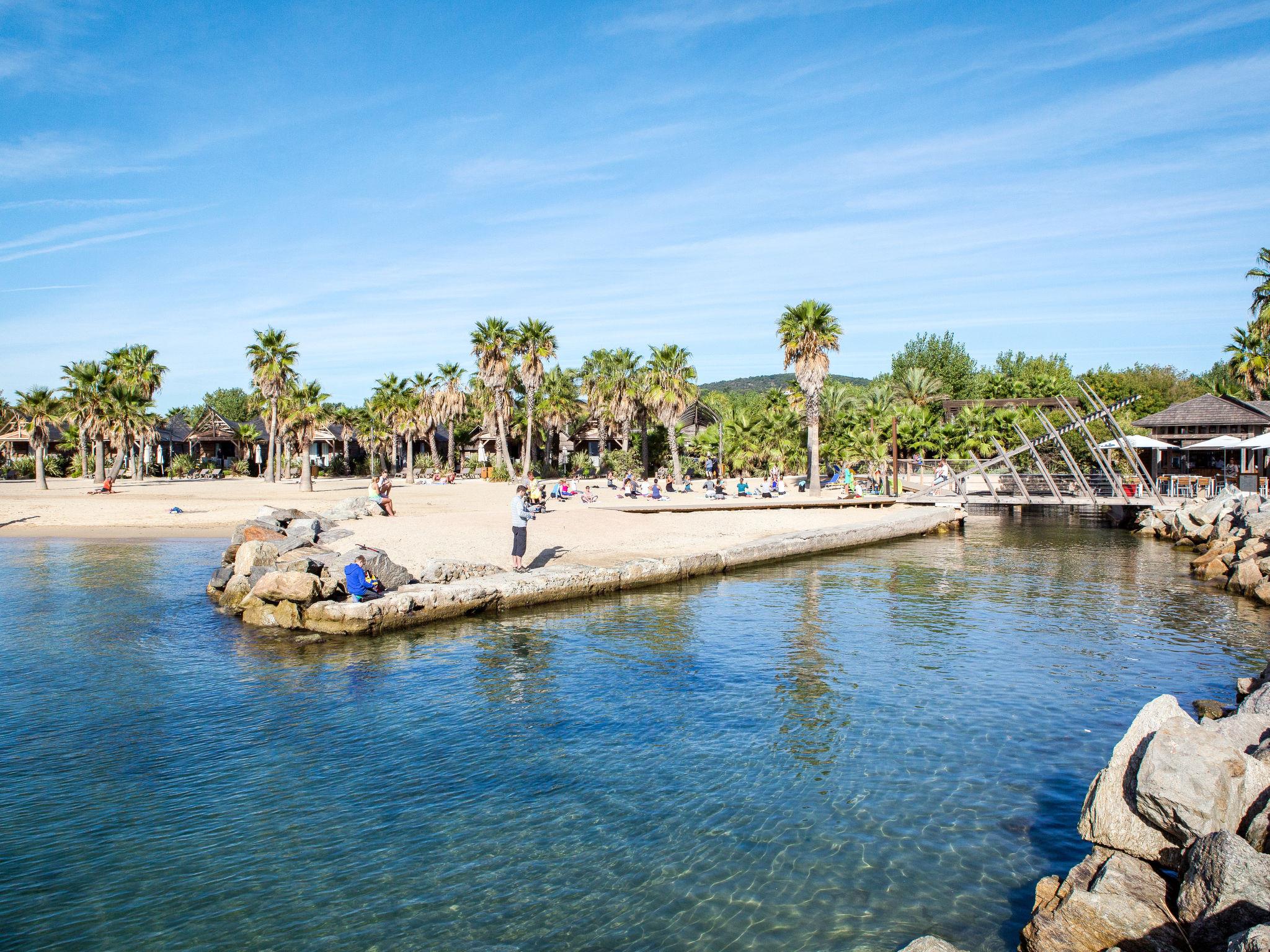 Beautiful aparthotel "Sowell Les Perles de Saint Tropez", 2 storeys, built in 2015. 6 houses in the residence. 45 apartments in the residence. 1.7 km from the centre of Port Grimaud, 8.5 km from the centre of Saint Tropez, 7 km from the centre of Grimaud, in the district Les Parcs de Grimaud, in the residential district, 300 m from the sea. For shared use: property 40'000 m2 (fenced), park with lawn and plants, swimming pool fenced (20 x 10 m, seasonal availability: 01.Apr. - 31.Oct.). Unconventional pool shape. Outdoor shower, tennis (2 x hard court) (extra). In the complex: reception, restaurant. Breakfast and half board on request (extra). Storeroom available. Parking (limited number of spaces). Shop 1.7 km, bus stop 200 m, sandy beach 300 m. Golf course (18 hole) 3 km. Please note: baby equipment on request (included). Residence with electric gates. Main road 50 m from the property. The photograph shows a typical example. The holiday properties may differ in living space, floorplan, equipment and furnishing.