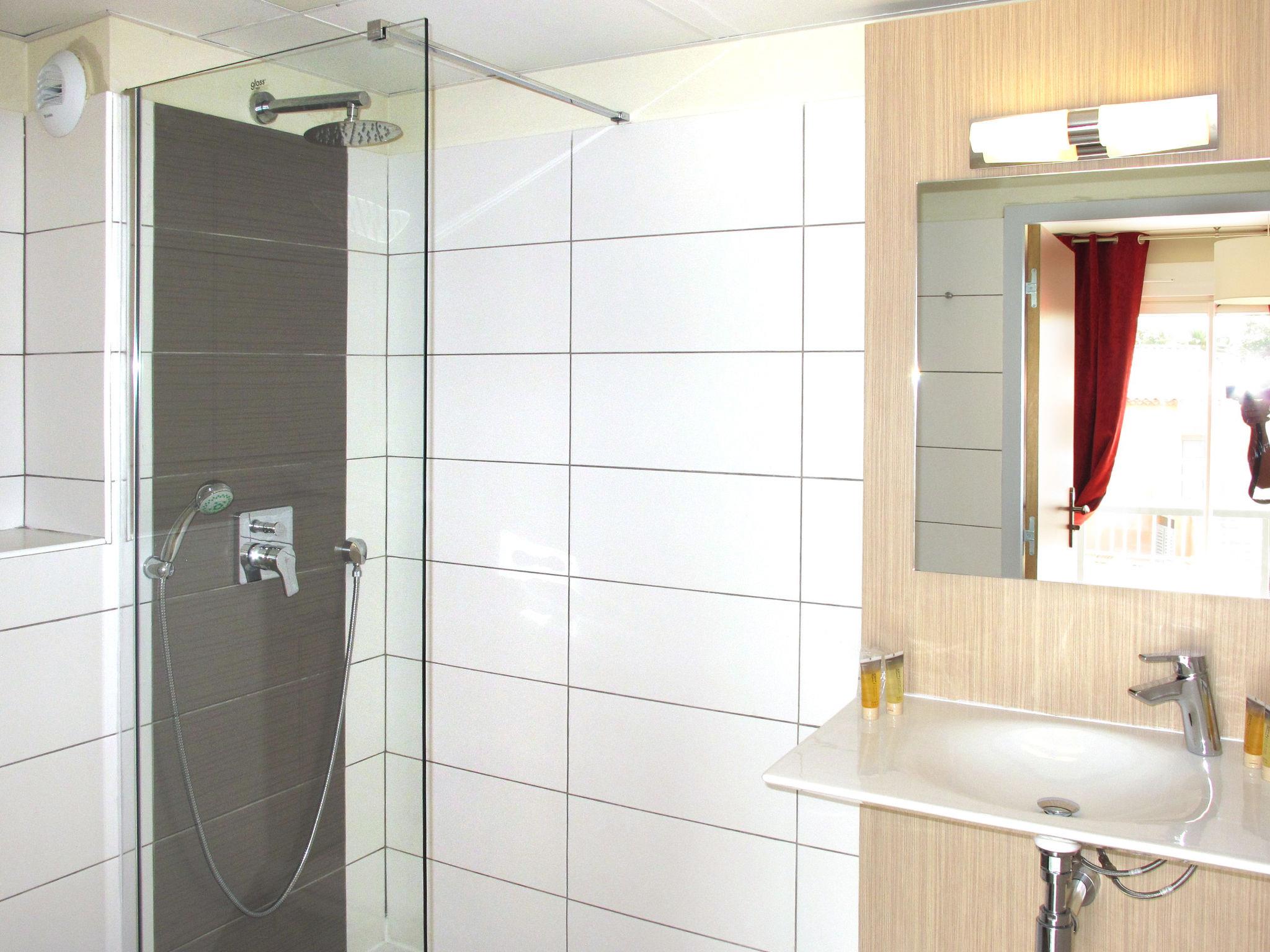 "Les Perles de Saint Tropez", 3-room apartment 45 m2. Modern furnishings: living/sleeping room with 1 double sofabed (160 cm), dining table and satellite TV. 1 room with 2 beds and shower. 1 room with 2 beds. Kitchenette (dishwasher, 4 ceramic glass hob hotplates, freezer, electric coffee machine, combination microwave). Shower, sep. WC. Heating, air-conditioning. Balcony or terrace. Balcony furniture. Facilities: safe. Internet (WiFi, free). Maximum 1 pet/ dog allowed. Offer by a private individual according to Art. 155, IV of CGI. R83051811001