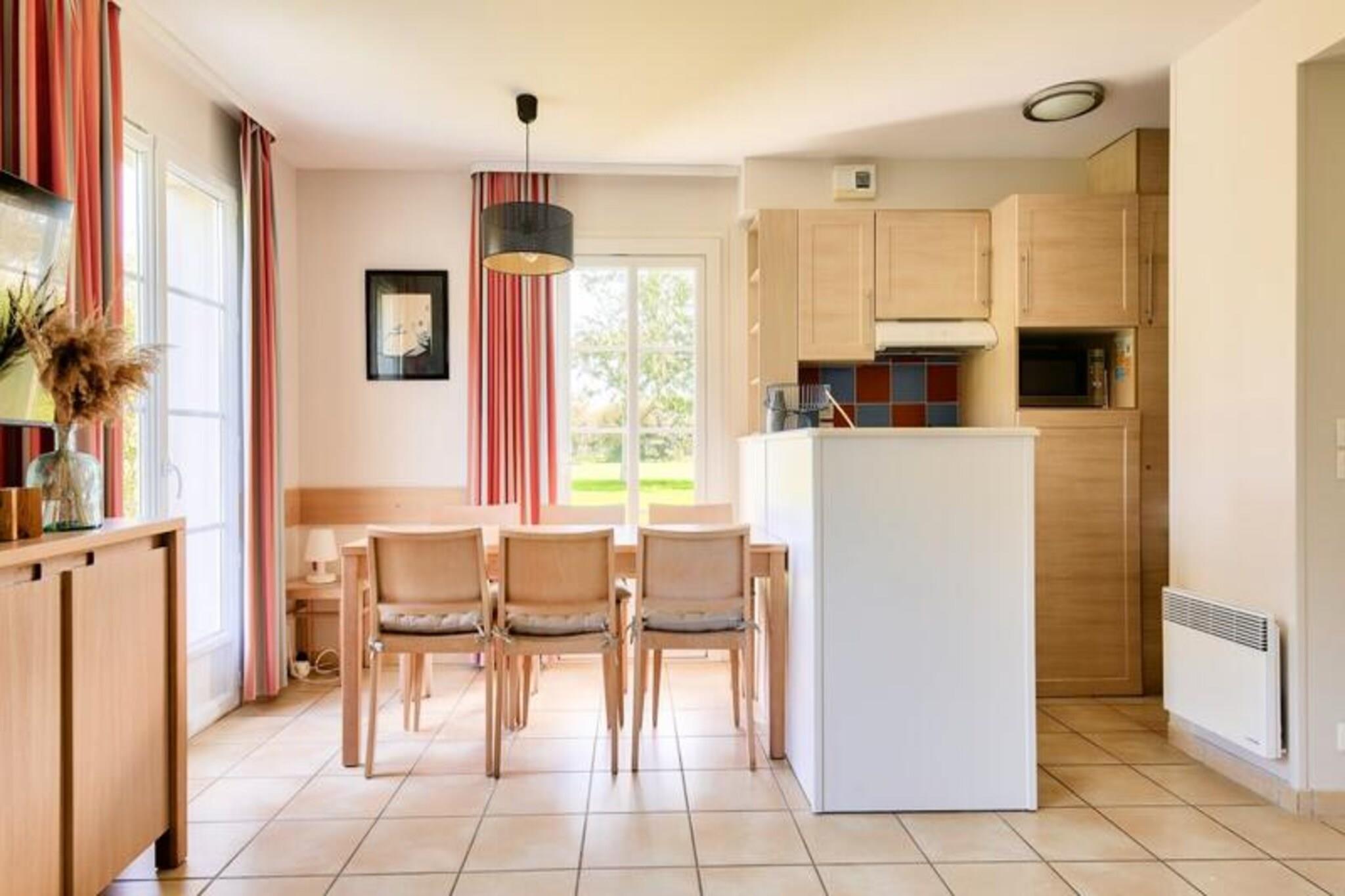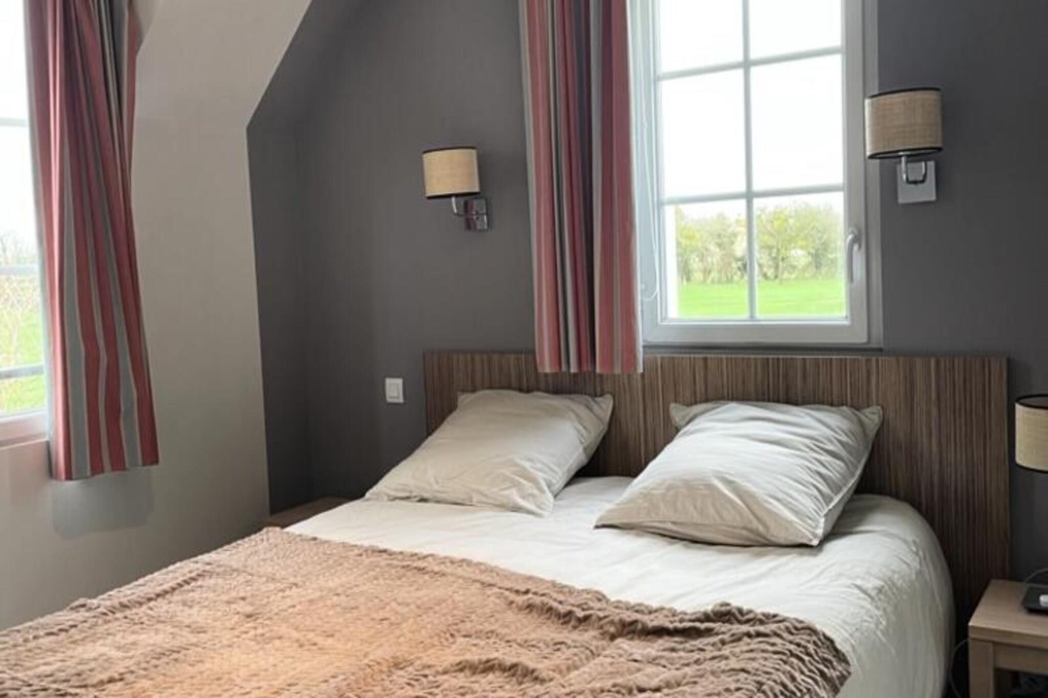 Dette romslige feriehuset tilbyr et komfortabelt opphold for opptil seks gjester, noe som gj?r det ideelt for familier eller grupper. Den har en koselig stue med standard sofa, peis og spiseplass. Eiendommen inneholder tre velutstyrte soverom og to bad, samt separat WC. En privat terrasse og hage, begge vendt mot s?rvest, gir en vakker utsikt over den omkringliggende golfbanen. Kj?ledyr er tillatt, noe som gj?r det til et perfekt valg for kj?ledyreiere som s?ker en fredelig ferie. Dette feriehuset ligger kun 4 kilometer fra sentrum av Port-en-Bessin, og har en ideell beliggenhet for ? utforske Normandies historiske landemerker. De ber?mte D-Day-strendene er bare en kort kj?retur unna, og tilbyr en unik mulighet til ? l?re om regionens rike krigshistorie. I n?rheten kan du nyte sjarmen til lokale kafeer, restauranter og markeder, alt innen 500 meter, og gir en sjanse til ? oppleve det beste av Normandies mat og kultur. Boligen er fullt utstyrt med kj?kken for ? tilberede m?ltider, et godt vedlikeholdt bad og moderne bekvemmeligheter overalt. Gjestene vil sette pris p? det oppvarmede innend?rsbassenget, barnebassenget, badstuen og utend?rs lekeomr?der. Ytterligere fasiliteter inkluderer volleyball- og petanquebaner, som sikrer underholdning for alle aldre. Med en privat parkeringsplass tilbyr dette feriehuset en perfekt blanding av komfort og bekvemmelighet for et avslappende opphold.