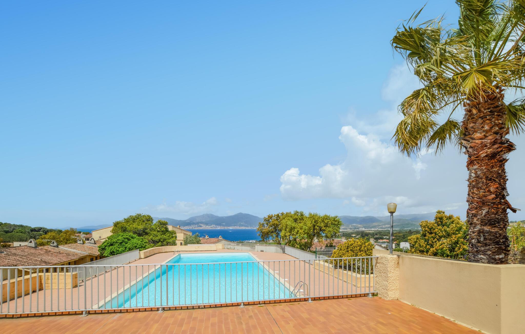 Gå ut fra stuen og ut på terrassen, som innbyr til å nyte solen, kanskje med en kopp kaffe eller noe kaldt å drikke, men i hvert fall med en fantastisk utsikt. Svøm noen runder i bassenget, som du deler med andre gjester.