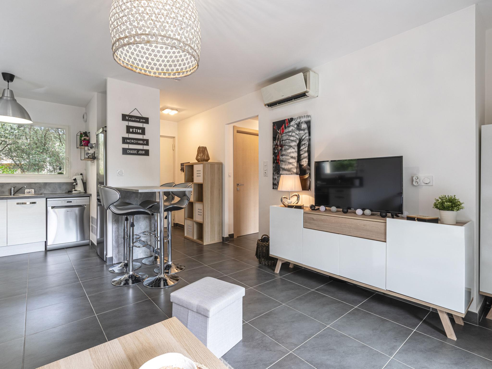 "Clos Vignola", 2-room apartment 49 m2, on the ground floor. Living/dining room with panoramic window with 1 double sofabed, dining table and TV (flat screen). Exit to the terrace. 1 room with 1 french bed (160 cm, length 200 cm). Kitchenette (oven, dishwasher, 4 ceramic glass hob hotplates, toaster, kettle, microwave, freezer, electric coffee machine, Capsules for coffee machine (Senseo) extra). Shower/WC. Electric heating, air-conditioning. Balcony 12 m2, terrace 15 m2, roofed, patio. Terrace furniture, balcony furniture, barbecue. Facilities: washing machine, dryer, iron. Internet (WiFi, extra). Parking. Please note: non-smokers only. Smoke alarm. Offer by a private individual according to Art. 155, IV of CGI. 2A24700078355