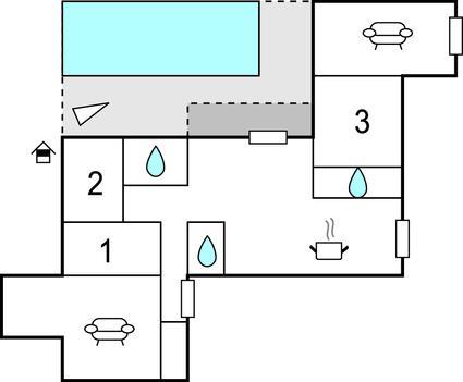 Det romslige feriehuset ønsker sine gjester velkommen i en idyllisk beliggenhet på en romslig tomt. Med 3 soverom og 2 bad har det plass til 6 personer. To av soverommene inneholder komfortable dobbeltsenger, ett soverom er utstyrt med køyeseng. Møblene er stilige og av høy kvalitet. På kjøligere dager kan dere kose dere sammen ved vedovnen.