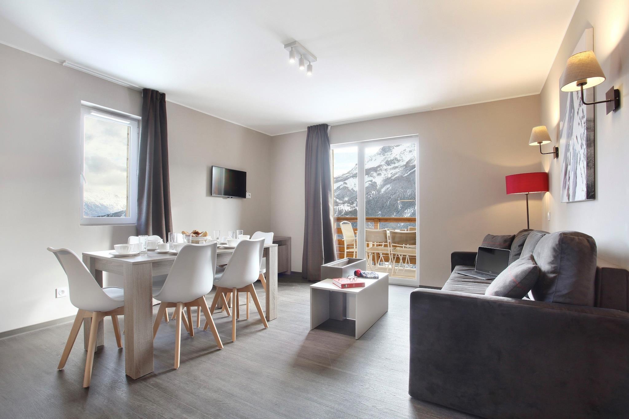 Inngjemt i de fantastiske sørlige Alpene, ønsker Village de Praroustan deg velkommen til en samling av moderne leiligheter som ligger i sjarmerende trehytter. Hver enhet er gjennomtenkt designet med elegante møbler, varme aksenter og moderne bekvemmeligheter. Fra komforten av din lyse, stilige leilighet kan du nyte morgenen på din private balkong eller terrasse, mens du ser ut på de majestetiske fjellene. Enten du bestiller et romantisk studio for to eller en romslig familieleilighet, vil du finne komfort og stil på alle måter. Dette tilfluktsstedet ligger i Pra Loup 1500, og plasserer deg noen skritt fra turstier, skibakker og naturflukter. Og den beste delen? Dine kjæledyr er også velkomne! Utforsk naturskjønne turer langs elven Ubaye, eller ta Molanès-gondolen med hunden din for å nyte en piknik i høyden. Lokale bedrifter arrangerer ofte hundevennlige arrangementer, og mange kafeer i området tar imot lodne gjester med vannskåler og smil – så din firbente venn føler seg like hjemme som deg. Etter en dag med alpine eventyr kan du slappe av på en av de nærliggende fjellrestaurantene som Le Clos de l'Adoux eller L'Artichaud, som tilbyr trøstende mat fra Savoie og koselige atmosfærer. Mange steder har kjæledyrvennlige terrasser, perfekt for å slappe av med valpen. Enten du er her for utendørs spenning eller rolige fjellmorgener, tilbyr Village de Praroustan den perfekte alpine flukt for par, familier og deres kjæledyr.