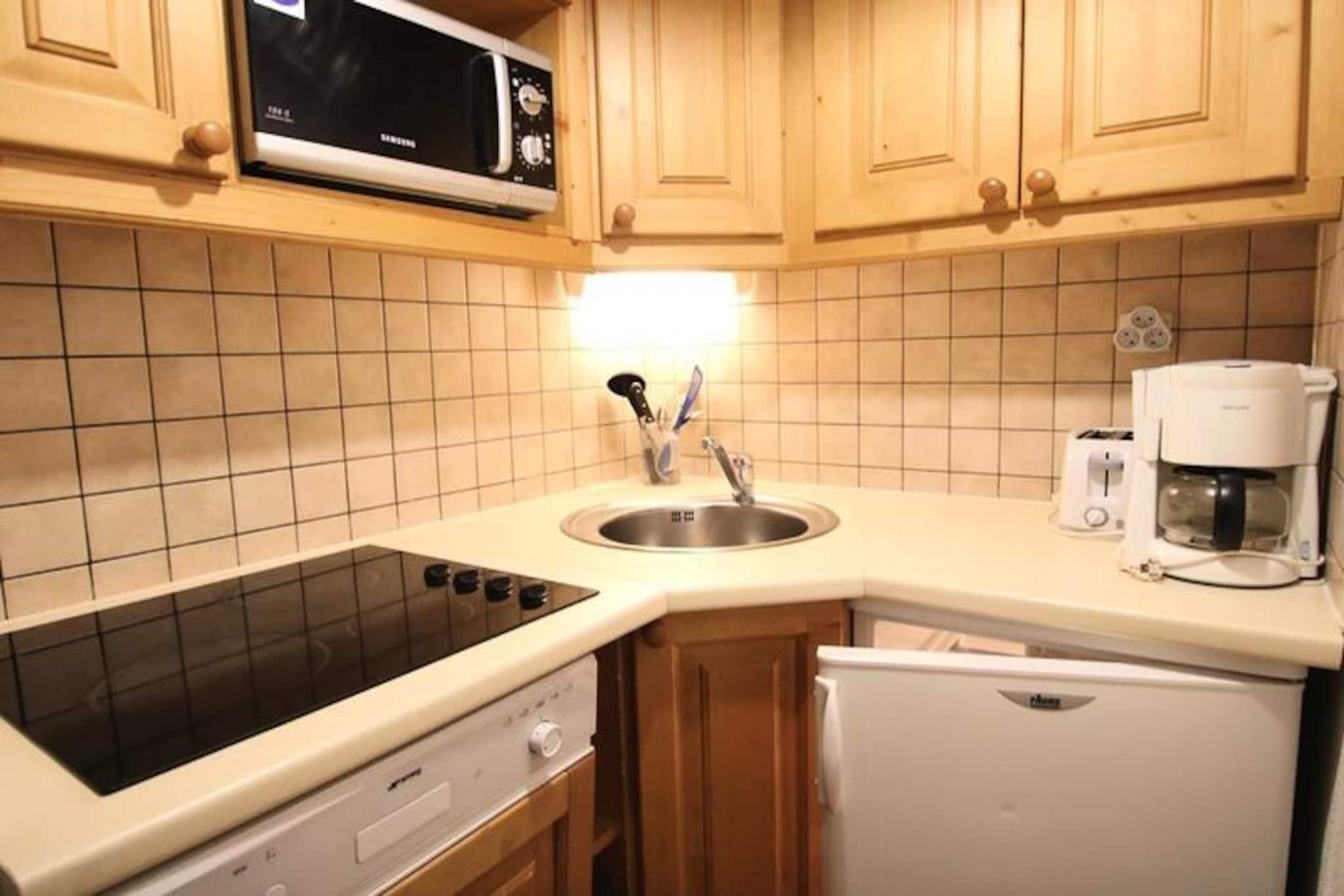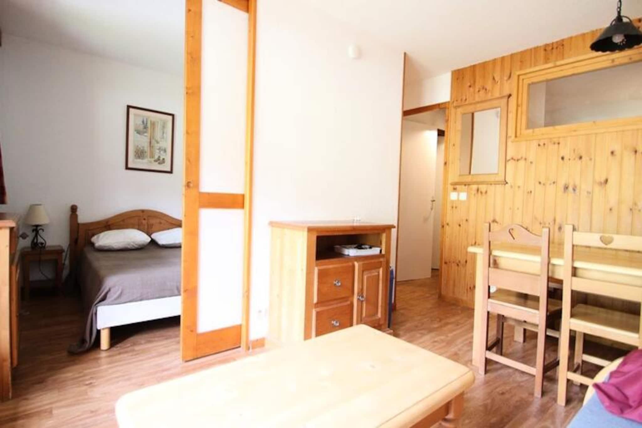 Høyt over den fredelige dalen Puy Saint Vincent inviterer denne sjarmerende alpine leiligheten deg til å oppleve det perfekte fjelltilfluktsstedet. Med sin koselige atmosfære og fantastiske utsikt er det et ideelt fristed for familier eller små grupper som søker både eventyr og avslapning i hjertet av de franske Alpene. Se for deg å starte dagen med en kopp kaffe på balkongen, mens den friske fjelluften forfrisker sansene dine mens solen står opp over de snødekte toppene. \n\nInnvendig er leiligheten gjennomtenkt designet for å romme 4–6 gjester. Stuen har en uttrekkbar sovesofa, spiseplass og flatskjerm-TV, noe som skaper et innbydende sted å slappe av etter en dag i bakken. Det velutstyrte kjøkkenet inkluderer moderne apparater som mikrobølgeovn, oppvaskmaskin og kaffetrakter, noe som sikrer alle hjemmets bekvemmeligheter. Soveplassene inkluderer et koselig dobbeltrom og et hytterom med to enkeltsenger, perfekt for barn eller venner. Et separat bad og toalett bidrar til bekvemmeligheten, mens balkongen tilbyr et rolig sted å nyte de fantastiske omgivelsene. \n\nResidensen La Dame Blanche ligger i den øvre delen av Puy Saint Vincent 1800, og tilbyr direkte ski-in/ski-out-tilgang, noe som gjør det til en drøm for vintersportsentusiaster. Fasiliteter på stedet inkluderer et oppvarmet utendørsbasseng (åpent om sommeren), en badstue og nødvendige butikker som et bakeri, restaurant og skiutleie. Enten du er på ski eller utforsker de pittoreske stiene om sommeren, er alt du trenger bare noen skritt unna. \n\nMed sin uslåelige beliggenhet, moderne komfort og tilgang til alpine aktiviteter året rundt, er denne leiligheten mer enn bare et sted å bo – det er en inngangsport til uforglemmelige fjelleventyr. La sjarmen til Puy Saint Vincent fengsle deg og skape minner som vil vare livet ut.