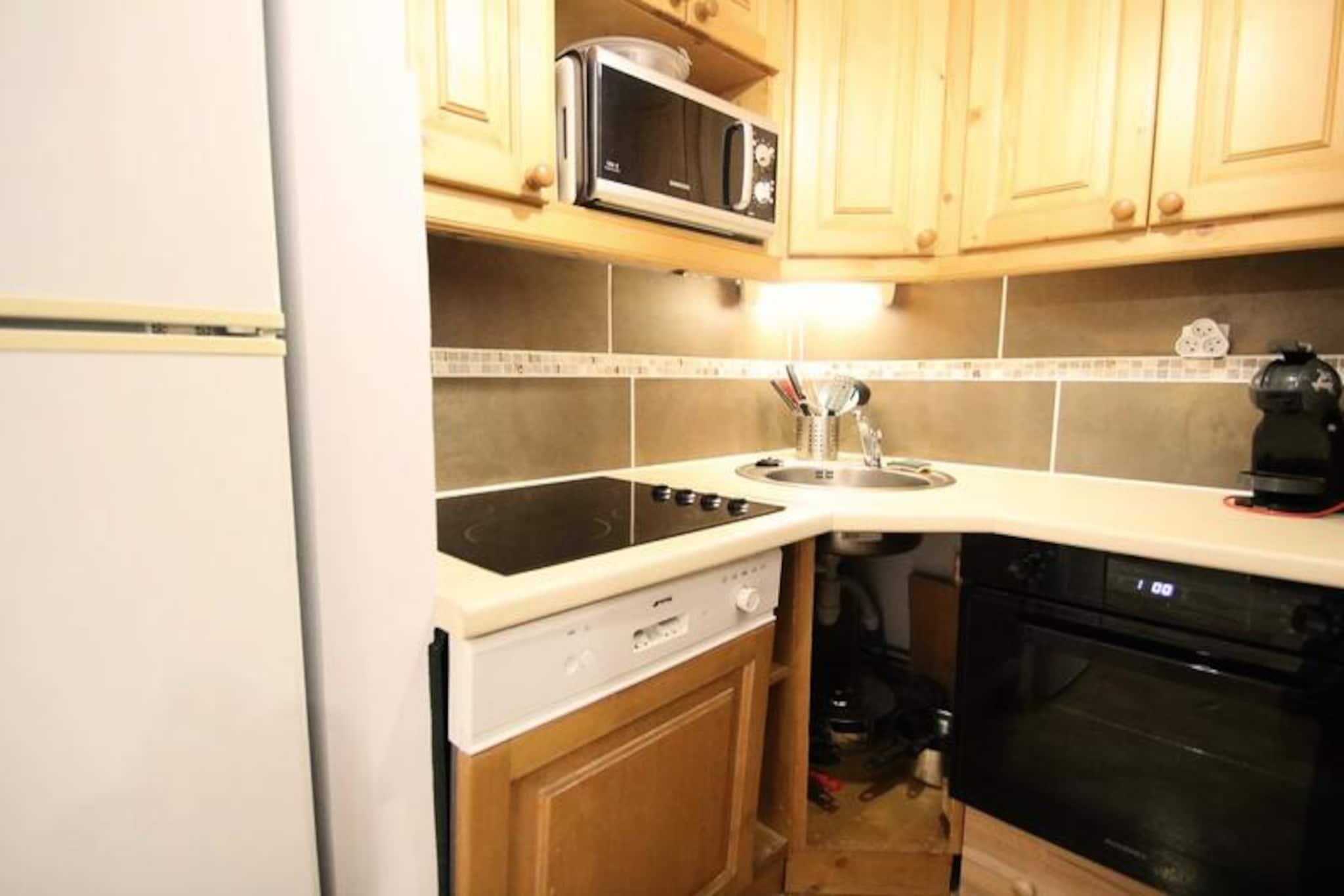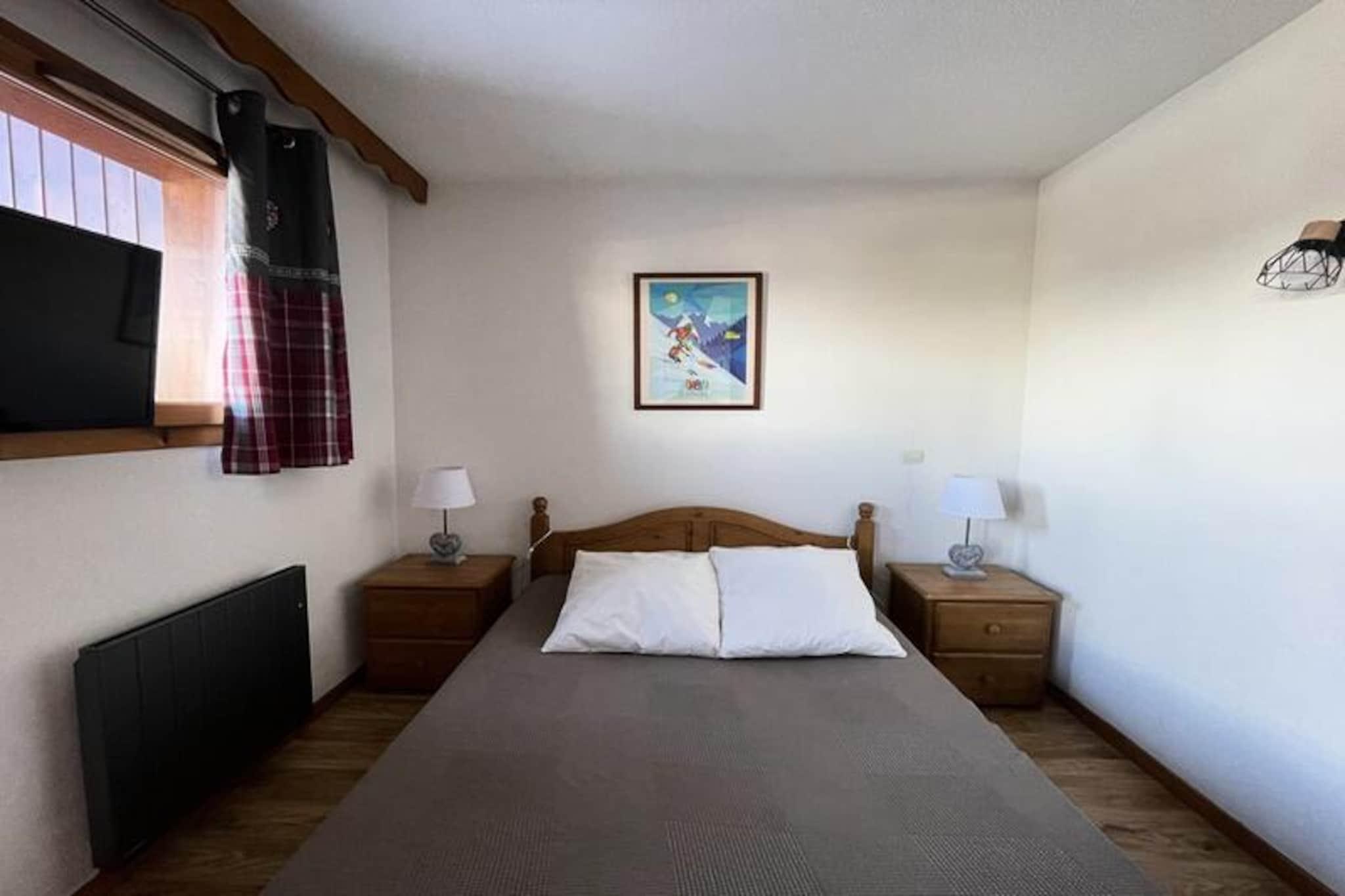 Høyt over de pittoreske bakkene i Puy Saint Vincent 1800, tilbyr denne sjarmerende leiligheten i La Dame Blanche-residensen et koselig tilfluktssted med fantastisk fjellutsikt. Se for deg å nippe til morgenkaffen din på den private balkongen mens solen står opp over de snødekte toppene, eller slappe av i det oppvarmede utendørsbassenget i de varmere månedene. Med direkte tilgang til skibakkene er denne eiendommen et fristed for vintersportsentusiaster og en fredelig flukt for både sommereventyrere. \n\nInnvendig er leiligheten gjennomtenkt designet for komfort og bekvemmelighet. Stuen har en uttrekkbar sovesofa, flatskjerm-TV og et spisebord for felles måltider. Det utstyrte kjøkkenet inkluderer moderne apparater som mikrobølgeovn, keramisk koketopp, oppvaskmaskin og kaffetrakter, slik at du har alt du trenger for å tilberede solide måltider etter en dag utendørs. Soveplassene passer for familier og grupper, med et dobbelt soverom og et koselig hytterom med to enkeltsenger, alle møblert med rene dyner og puter. Et separat bad og toalett bidrar til plassens praktiske egenskaper. \n\nSelve residensen kan skilte med utmerkede fasiliteter, inkludert en restaurant, snackbar, bakeri og skiutleie rett utenfor døren. Om sommeren kan gjestene nyte det oppvarmede utendørsbassenget, mens badstuen tilbyr et avslappende tilfluktssted året rundt. Tilleggstjenester som utleie av sengetøy og håndklær, et myntvaskeri og overbygd parkering sikrer et stressfritt opphold. \n\nEnten du er her for å skjære deg gjennom uberørte bakker om vinteren eller utforske alpine stier om sommeren, er denne leiligheten den perfekte basen for dine eventyr. La skjønnheten i de franske Alpene og den innbydende atmosfæren til La Dame Blanche skape minner for livet.
