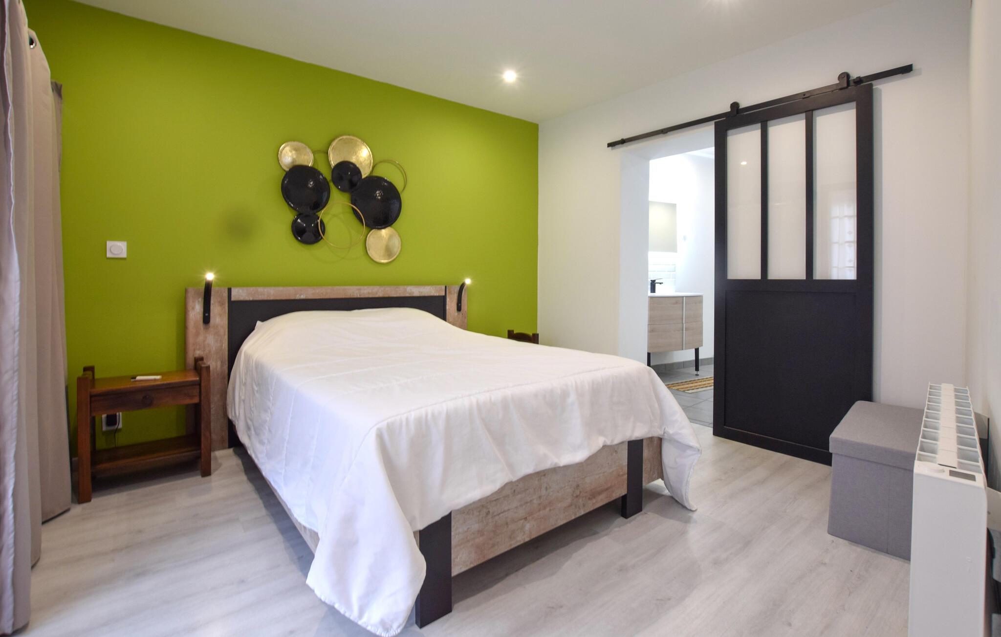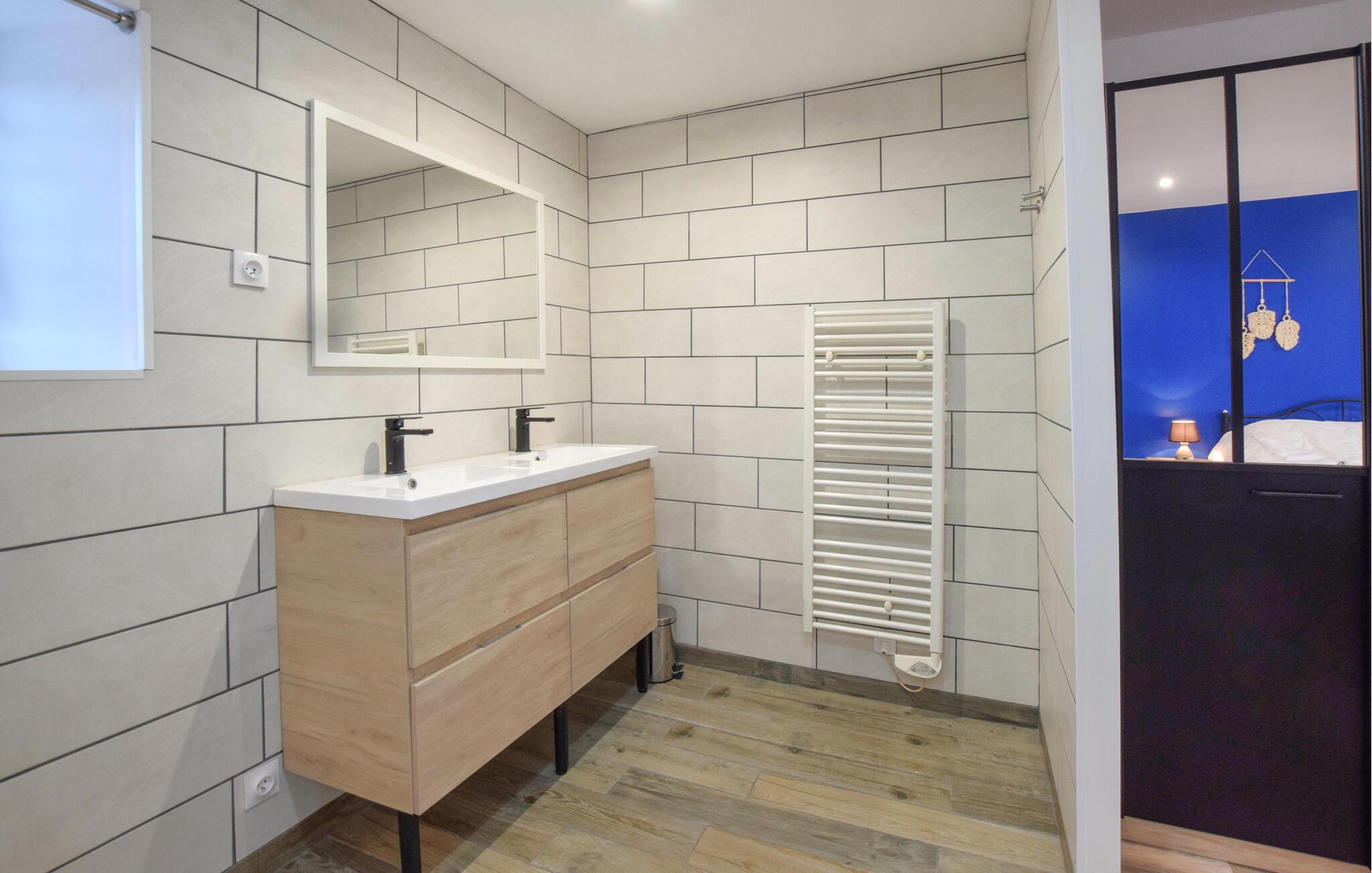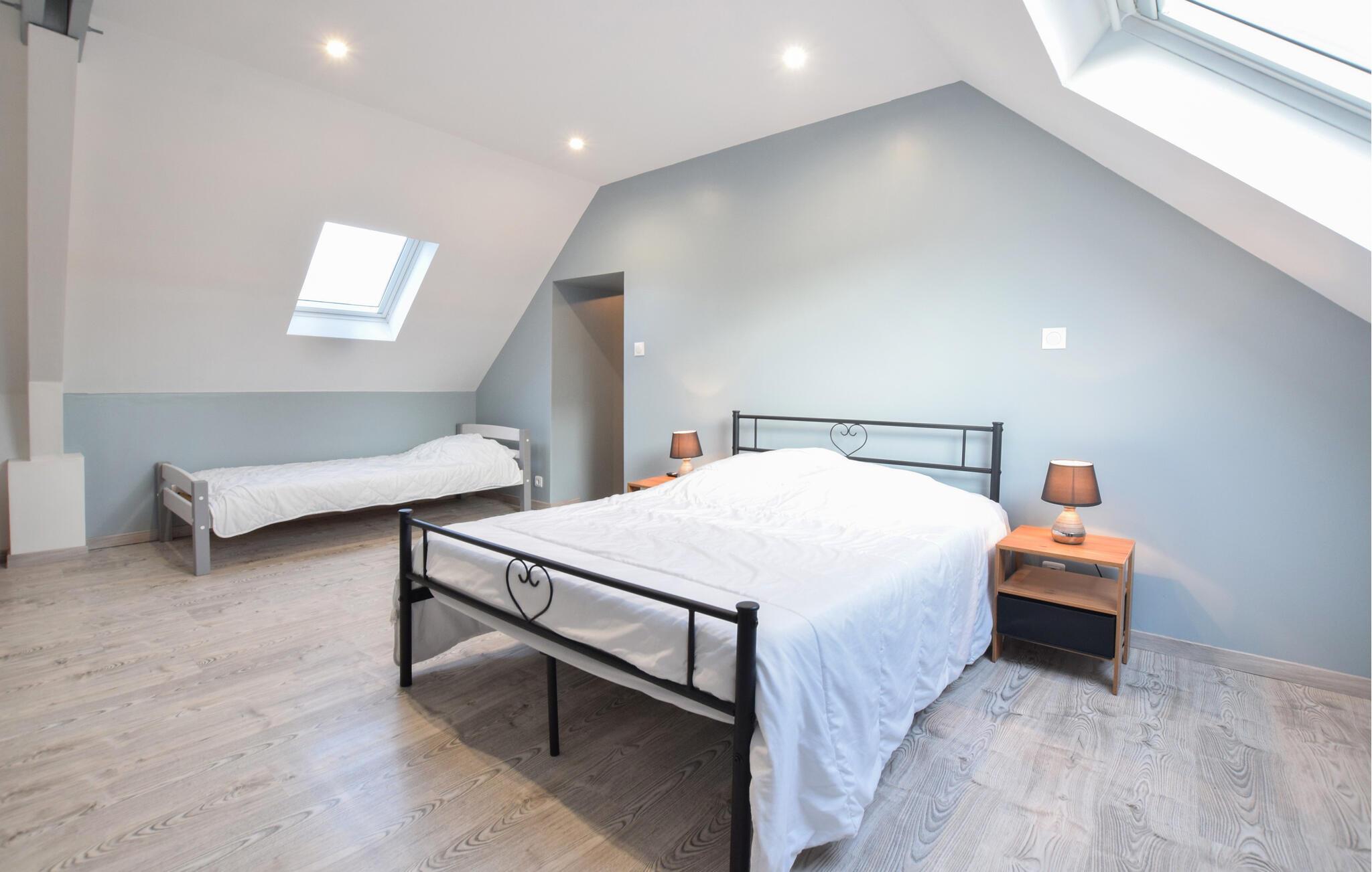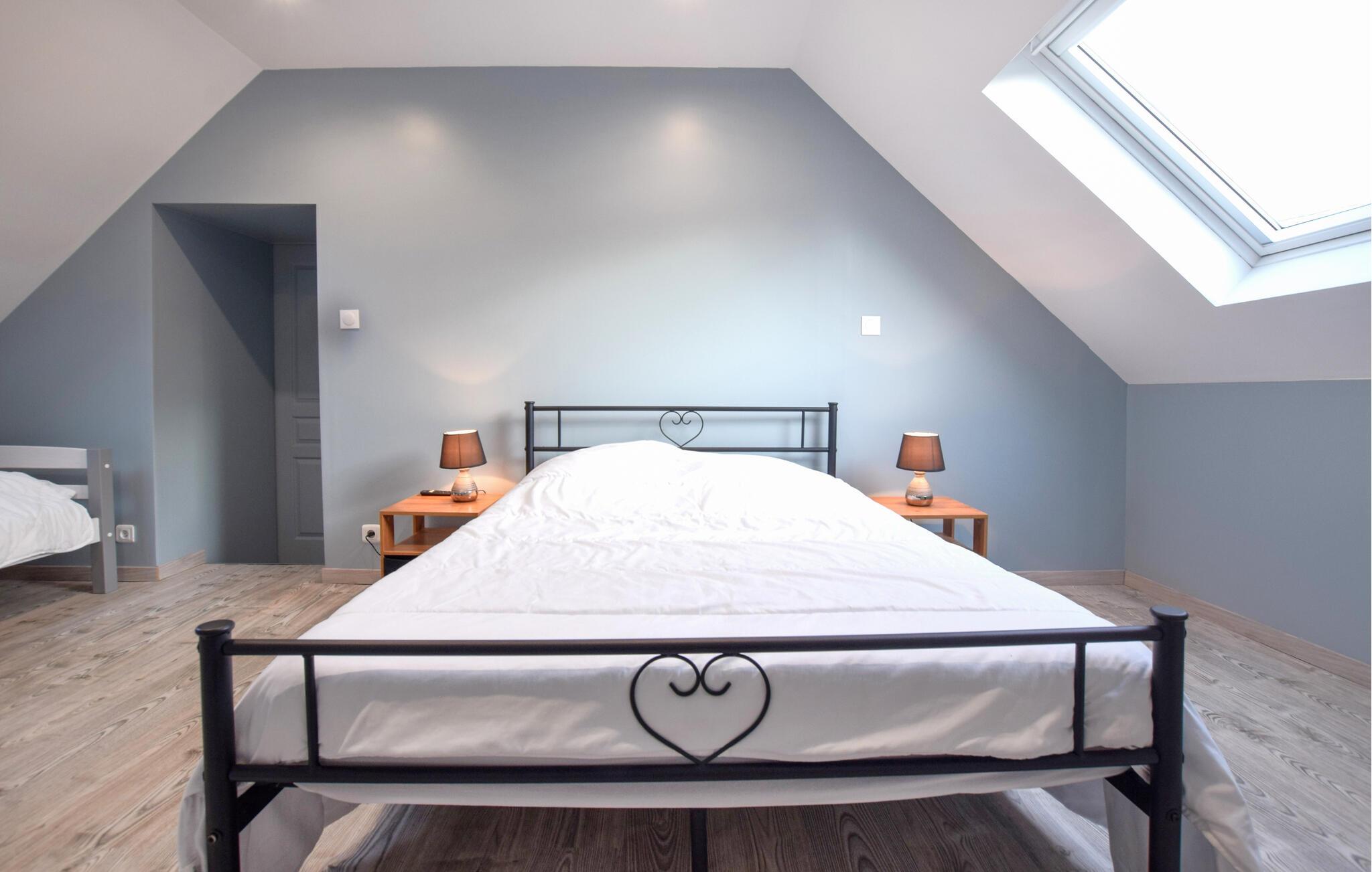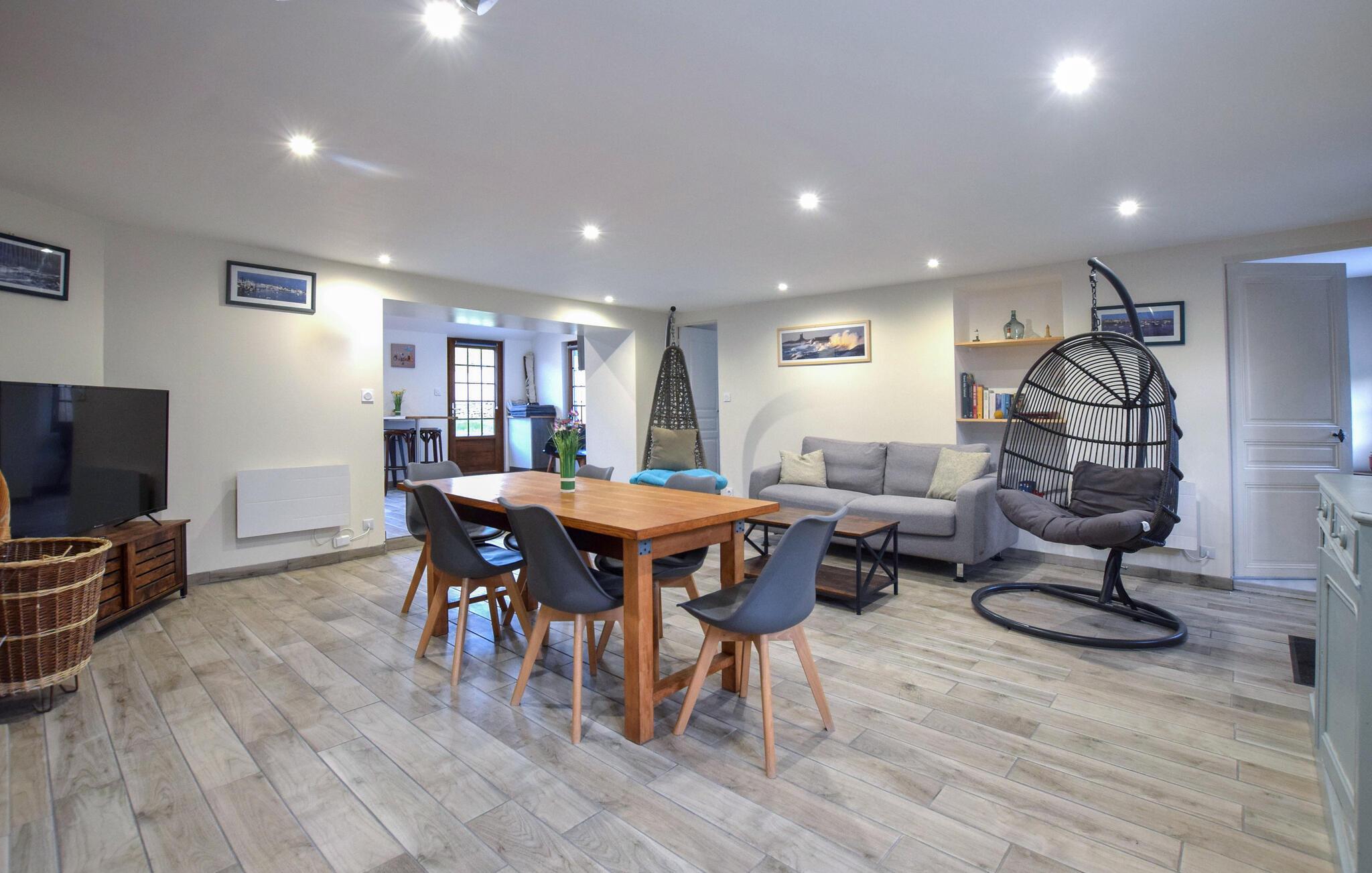 Her kan du slappe av med familien i hyggelige omgivelser. Det vakre steinhuset, som er typisk for Cotentin, ligger i gangavstand fra stranden. Den smakfulle innredningen, de vakre fargene og de gode lysforholdene gjør huset til det ideelle stedet for en herlig ferie i Normandie. Etter en uforglemmelig dag kan du sette deg til rette i den koselige sittegruppen, tenne opp i peisen og nyte tiden sammen.