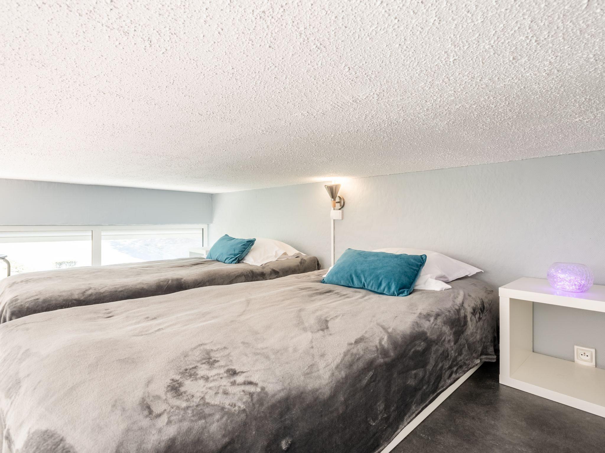 2-room apartment 47 m2, on the ground floor. Comfortable furnishings: living/dining room with panoramic window with 2 beds (90 cm, length 190 cm), TV (flat screen). 1 room with 1 french bed (1 x 140 cm, length 190 cm). Open kitchen (oven, dishwasher, 4 induction hot plates, kettle, microwave, electric coffee machine). Shower/WC. Electric heating. Small patio 12 m2. Facilities: washing machine. Internet (WiFi, free). Parking space n 40. Please note: smoke alarm. 56186 000506 EF