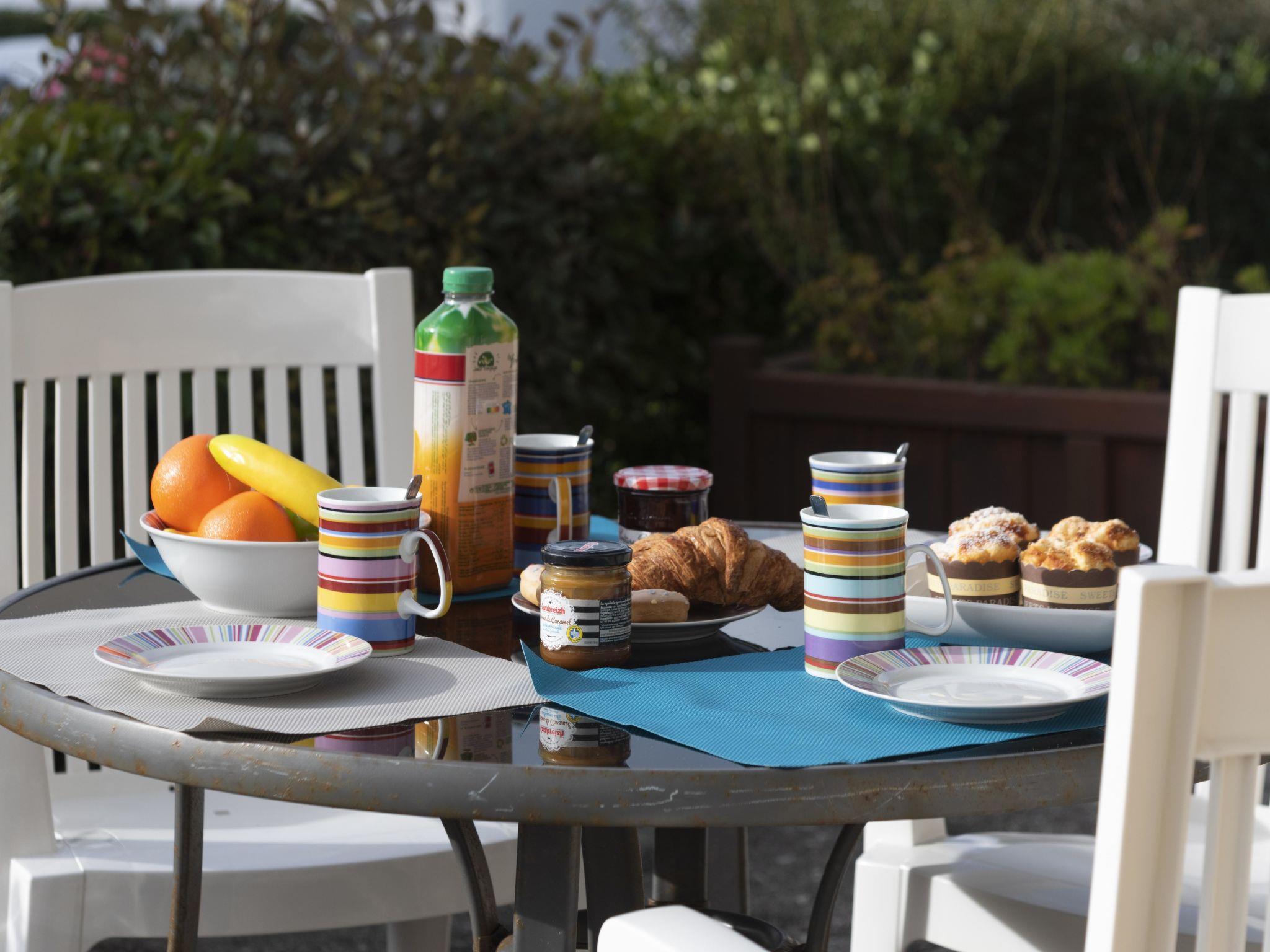 2-room apartment 44 m2, on the ground floor. Comfortable furnishings: living/dining room with 1 double sofabed (1 x 140 cm, length 190 cm), TV (flat screen). Exit to the terrace. 1 room with 1 french bed (1 x 140 cm, length 190 cm). Kitchen (4 hot plates, oven, electric coffee machine, combination microwave). Bathroom, sep. WC. Electric heating. Large terrace 26 m2. Terrace furniture. Facilities: washing machine. Internet (WiFi, free). Garage. Please note: 1 small pet/ dog allowed. Smoke alarm. 56186 000048 8V
