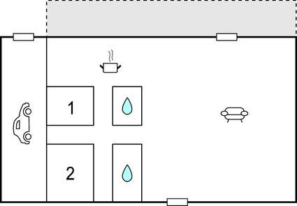 Herfra kan du gå ut i den vakre hagen, nyte den første kaffen ute om morgenen eller organisere en herlig grillmiddag på terrassen.