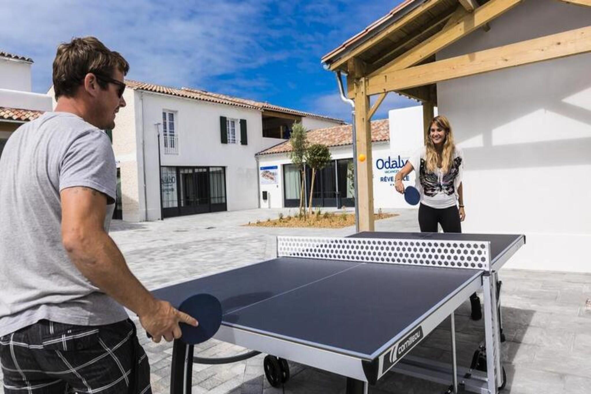 Résidence Prestige Odalys Rêve d'Île ligger i Rivedoux Plage, og ønsker deg velkommen til en solrik og avslappende ferie i hjertet av Île de Ré. Denne nylige residensen tilbyr sjarmerende, fullt utstyrte leiligheter med hage eller terrasse. The Residence gir deg et vakkert utendørsbasseng som er åpent fra midten av april til midten av september, en badstue (mot betaling) og et treningsrom. Dra nytte av oppholdet ditt for å oppdage regionen! Du finner strendene bare 2 km fra campingplassen, hvor du kan utøve en rekke vannsporter, men også nyt mer enn 90 km med sykkelstier! Uten å glemme de mange interessante stedene å oppdage: typiske landsbyer og havner, økomuseum for saltmyr, naturlig fuglereservat ved Portes en Ré, Fort Boyard, Palmyre zoo og mer... 2 rom 4 personer. Balkong. Stue med sovesofa for 2 personer. Utstyrt kjøkken. Soverom med dobbeltseng. Bad og WC. Wifi-tilgang - inkludert i overnatting Husdyr tillatt - (spesifiseres ved bestilling): EURO70/dyr/opphold (7 netter og mer) - EURO15/natt (mindre enn 7 netter) Innskudd (i tillegg) - 500 Sluttrengjøringspakke - inkludert (unntatt kjøkken og oppvask) Babysett - på forespørsel og med forbehold om tilgjengelighet Sengetøy - inkludert - 1 sengetøy, 1 flatt laken og 1 euro putevar; pute Badetøy - inkludert - 1 ansiktshåndkle, 1 kroppshåndkle og 1 badematte Svømmebasseng - utendørs (fra midten av april til midten av september) Badstue - 9€/person/økt - 40€ (5 tilgangspakke) Frokostservice - 12€/dag/person (over 8 år) - 8€ (4 til 8 år inkludert) Turistskatt (ekstra kostnad) - priser og regler på stedet TV - inkludert i leilighetene