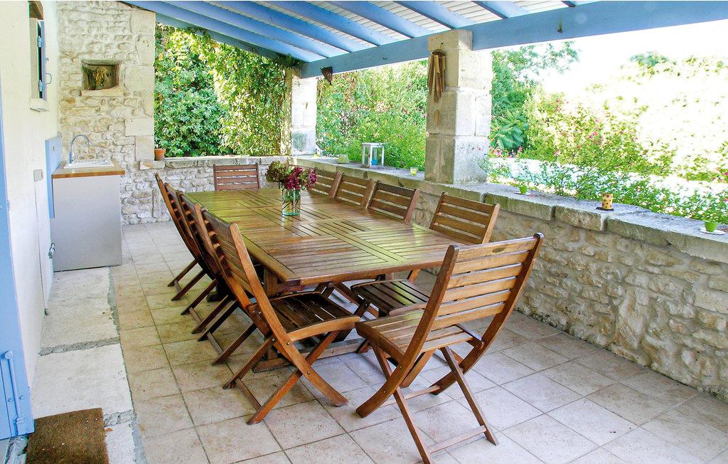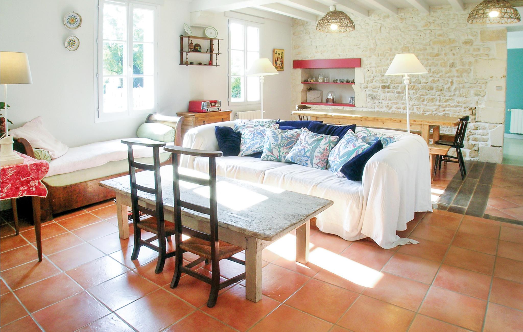 Feriehuset er smakfullt innredet med originale detaljer og steinvegger. La Rochelle og Saintes har klassiske musikkfestivaler, og landsbyen Cognac kan by på destillerier og båtturer på Charente. Du kan spille golf i La Rochelle, Saintes og Cognac, eller besøke det store Aqualand i St Jean dAngely. Du kan tilbringe en dag på stranden ved Fouras, og det går ferge til øya Aix, Napoleons siste residens. La Rochelle er kjent for sin gamle havn, sitt akvarium og sine mange kafeer og fiskerestauranter ved vannet.
