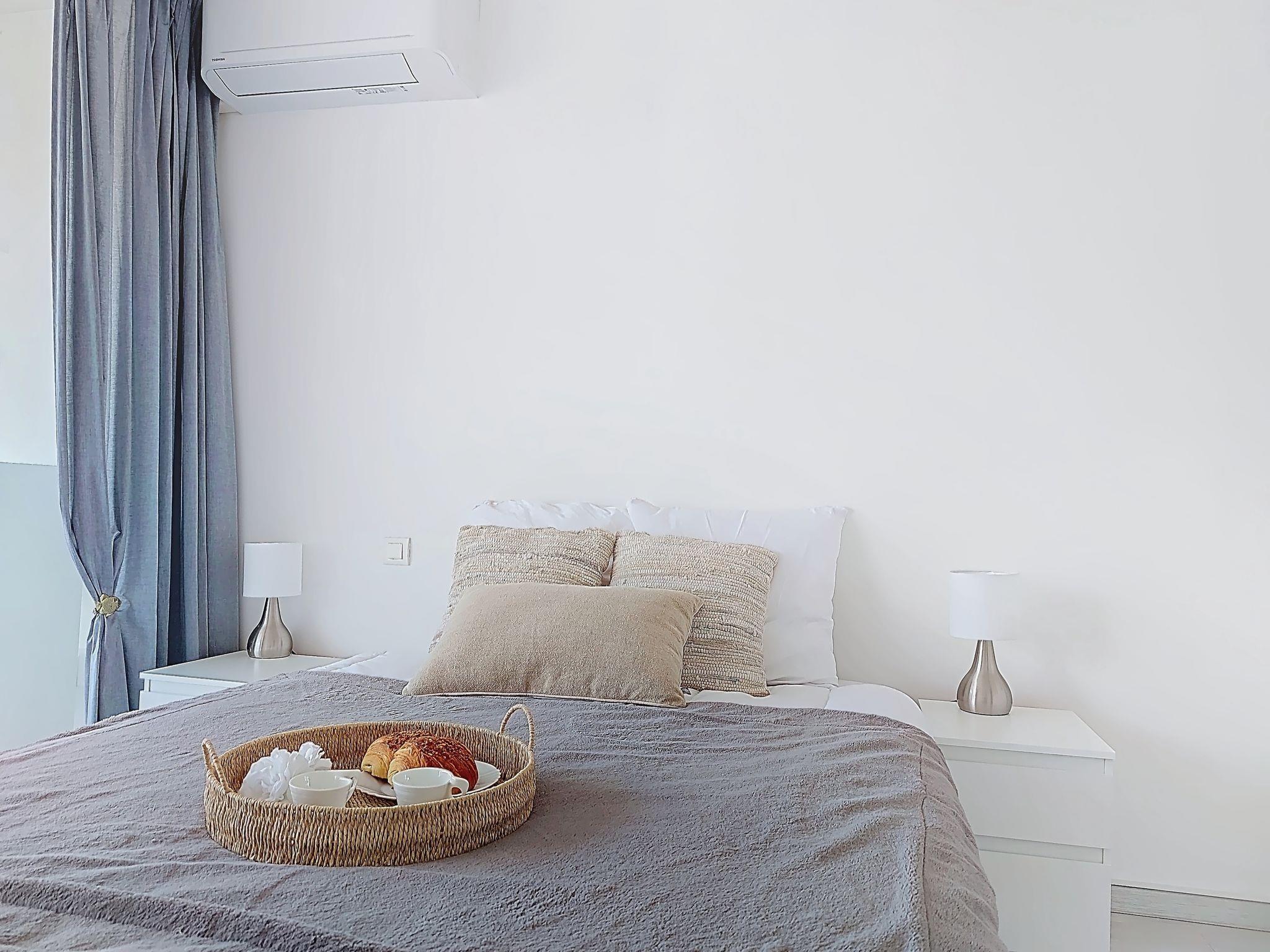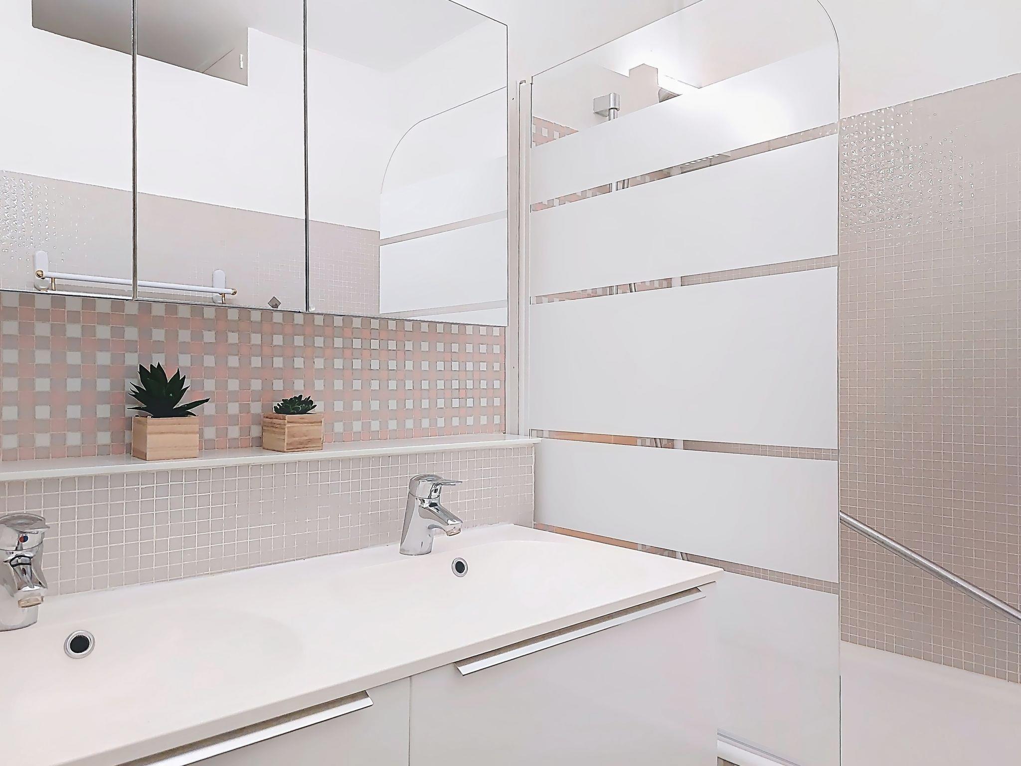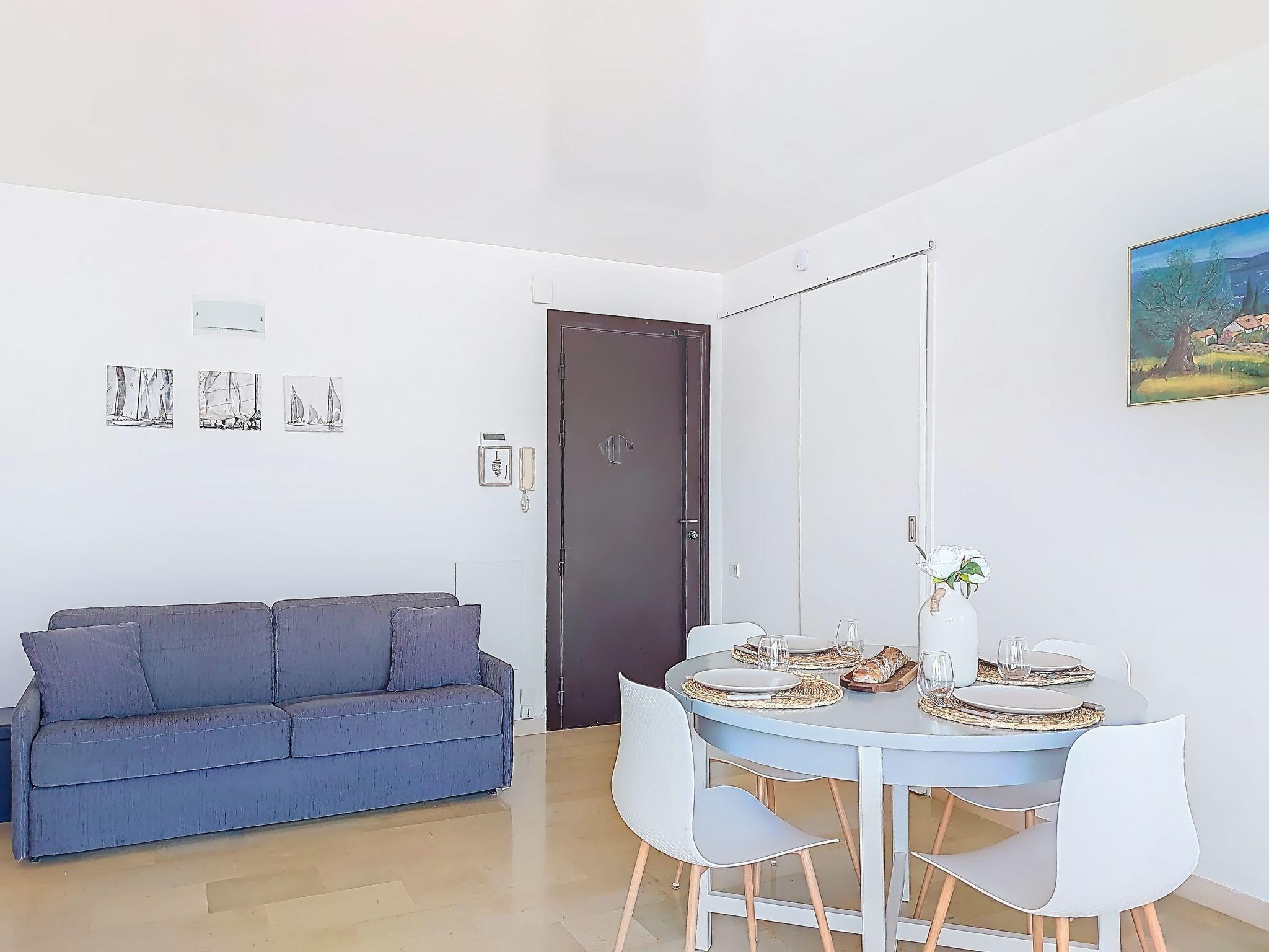 2-room apartment 47 m2 on 4th floor. Bright, comfortable furnishings: living/dining room with 1 double sofabed (140 cm, length 190 cm), flat screen and air conditioning. Exit to the terrace. 1 room with 1 double bed (140 cm, length 190 cm), air conditioning. Exit to the terrace. Kitchen (oven, dishwasher, 3 ceramic glass hob hotplates, toaster, kettle, microwave, electric coffee machine). Exit to the terrace. Bathroom, sep. WC. Large terrace 15 m2, east facing position. Terrace furniture, sitting area. View of the sea, the mountains and the resort. Facilities: washing machine. Internet (WiFi, extra). Parking. Please note: parking space for small car only. Maximum 1 small pet/ dog allowed. Smoke alarm. Offer by a private individual according to Art. 155, IV of CGI. 06104001557LR