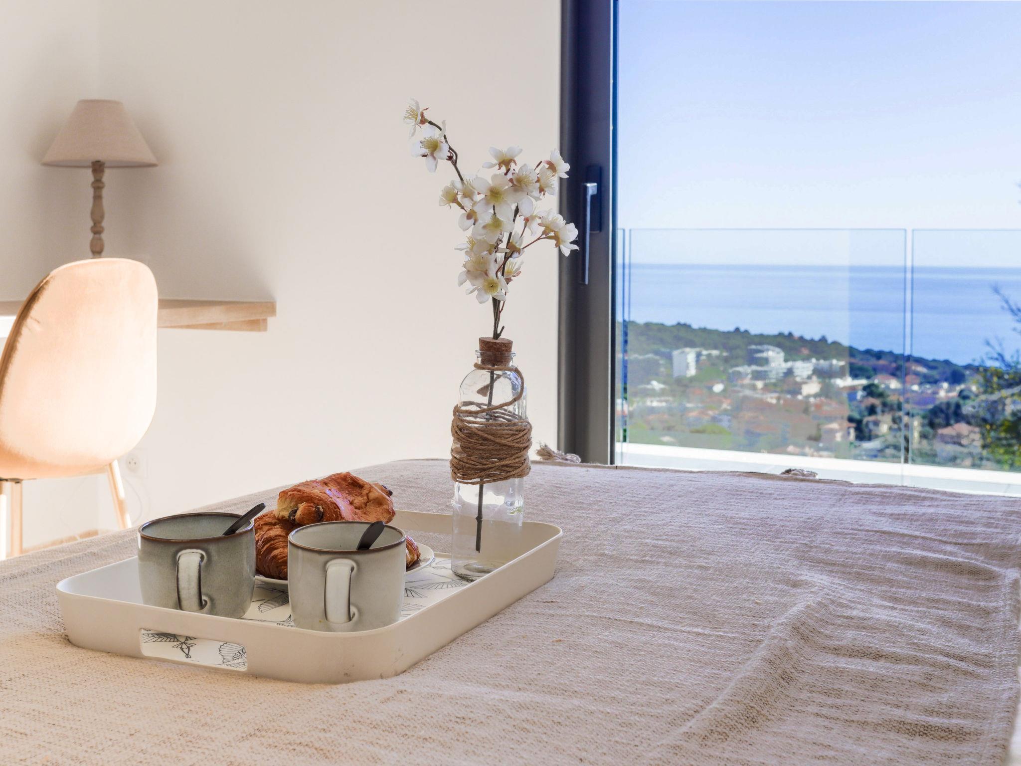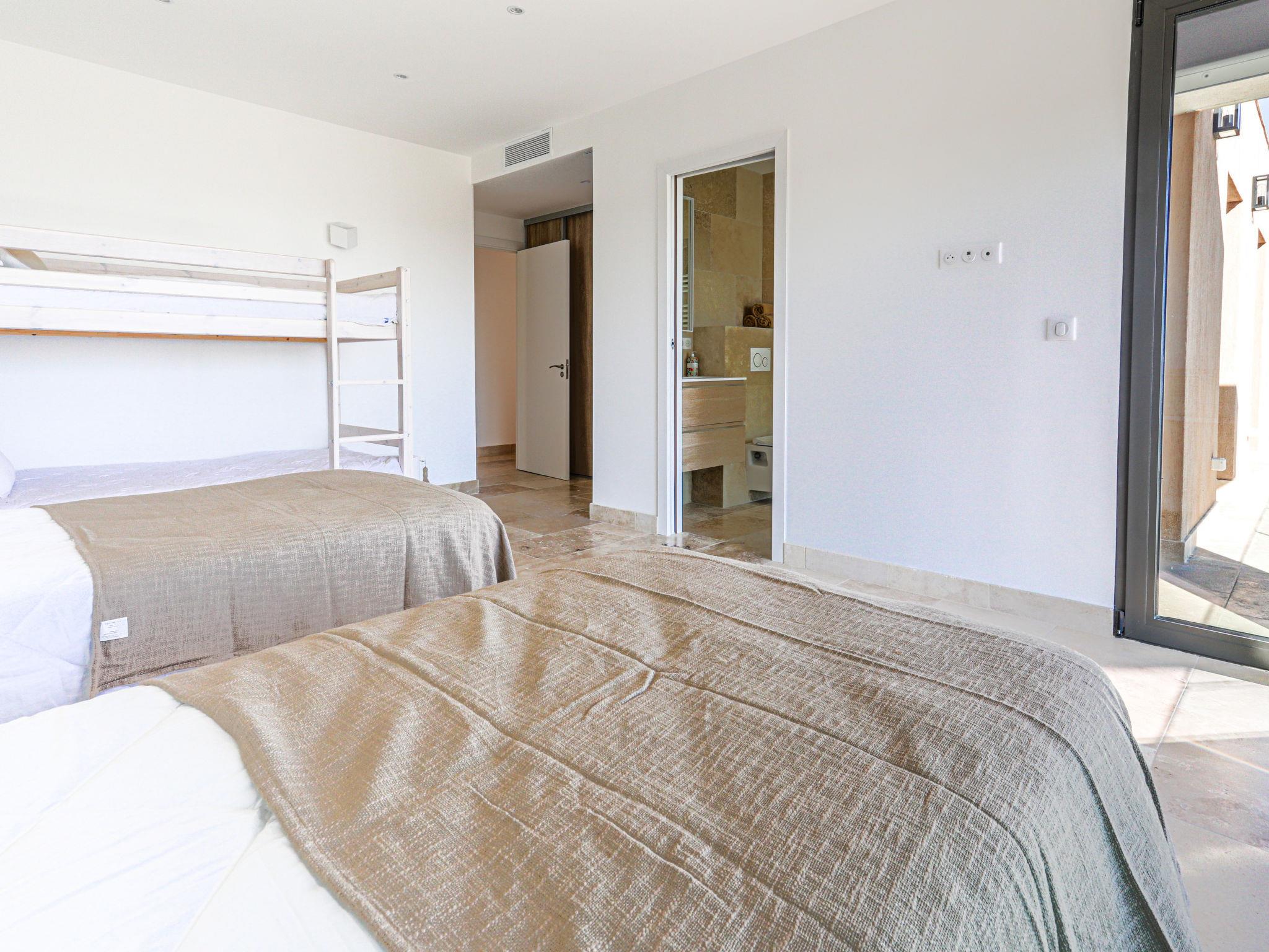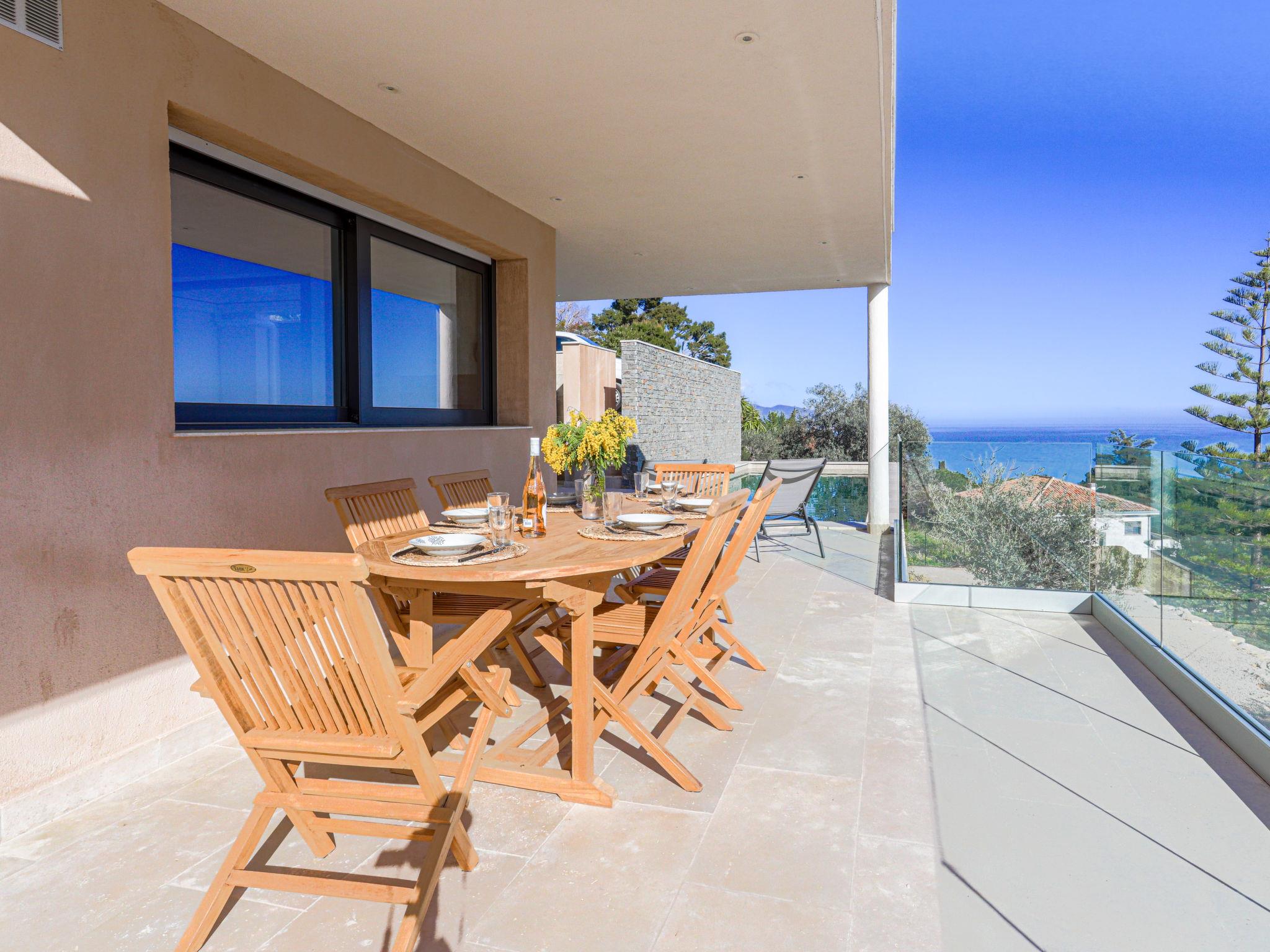 6-room villa 240 m2, south facing position. Comfortable and modern furnishings: large living/dining room with international TV channels, flat screen and wood-burning stove. Exit to the terrace. 1 room with 1 french bed (160 cm, length 200 cm). Exit to the terrace. Kitchen (oven, dishwasher, 3 induction hot plates, toaster, kettle, microwave, electric coffee machine). Exit to the terrace, to the swimming pool. Bathroom. Electric heating, air-conditioning. Upper floor: 1 room with 1 french bed (160 cm, length 200 cm). Exit to the balcony, south facing position. 1 large room with 4 beds (90 cm, length 200 cm), hand-basin and separate WC. Exit to the balcony, south facing position. 1 room with 1 double bed (160 cm, length 200 cm). Exit to the balcony, south facing position. Bathroom, shower/WC. Heating, electric heating, air-conditioning. Large terrace 50 m2, south facing position. Terrace furniture. Marvellous view of the sea, the mountains, the swimming pool and the garden. Facilities: washing machine, iron, hair dryer. Internet (WiFi, free). Please note: non-smoking house. Smoke alarm. Offer by a private individual according to Art. 155, IV of CGI. 061040012839Q