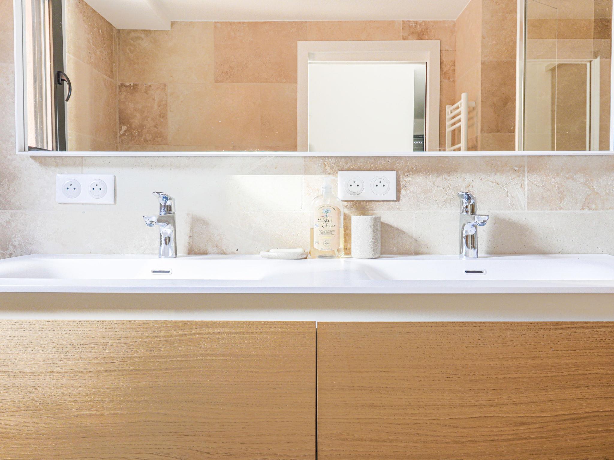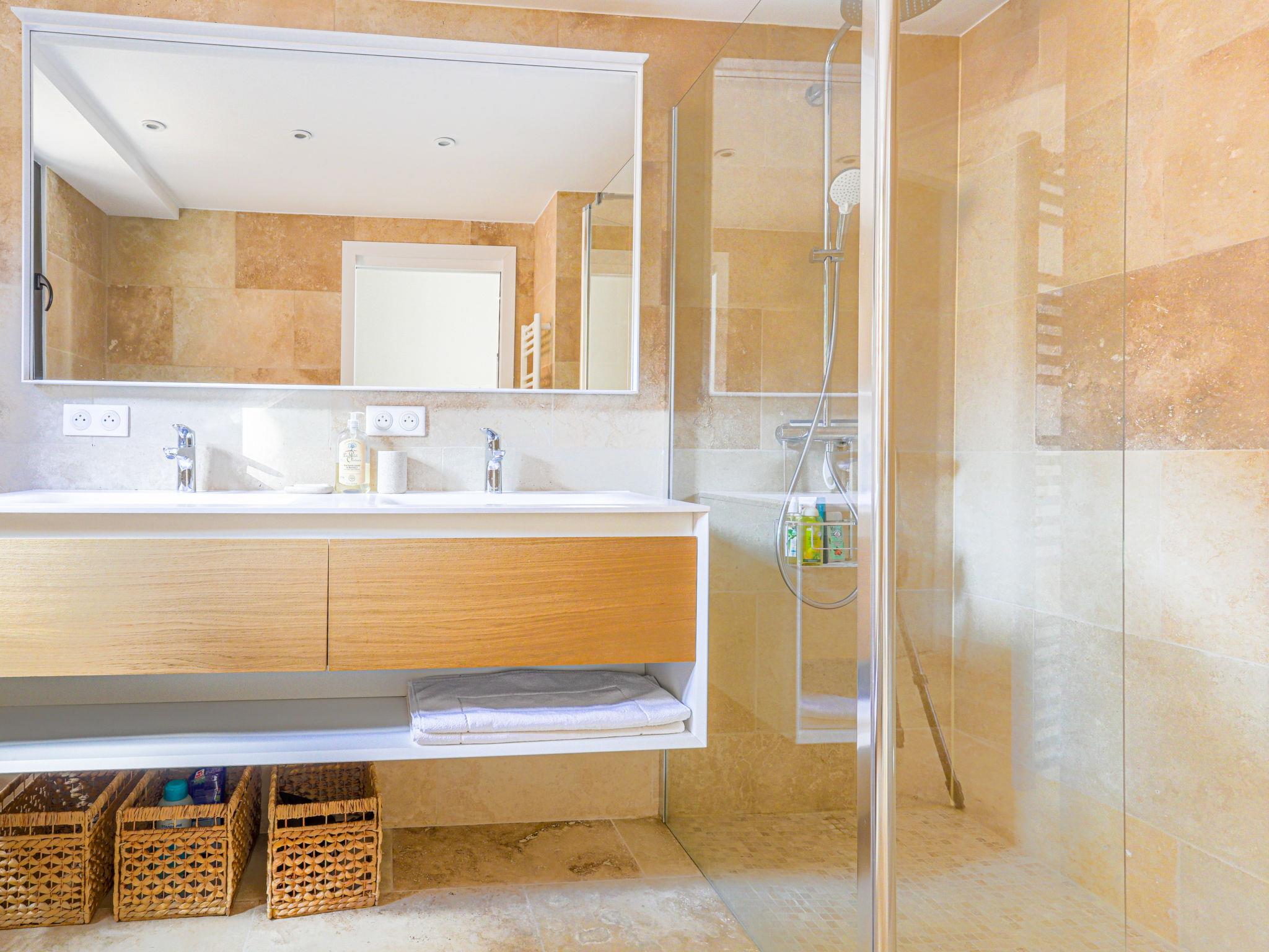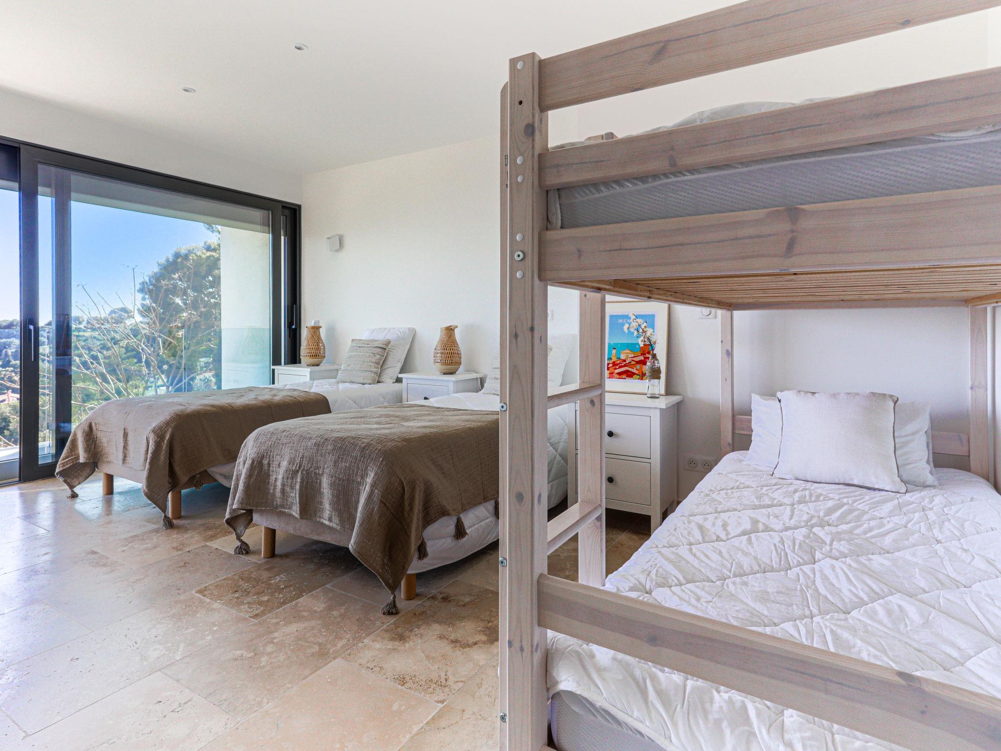 6-room villa 240 m2, south facing position. Comfortable and modern furnishings: large living/dining room with international TV channels, flat screen and wood-burning stove. Exit to the terrace. 1 room with 1 french bed (160 cm, length 200 cm). Exit to the terrace. Kitchen (oven, dishwasher, 3 induction hot plates, toaster, kettle, microwave, electric coffee machine). Exit to the terrace, to the swimming pool. Bathroom. Electric heating, air-conditioning. Upper floor: 1 room with 1 french bed (160 cm, length 200 cm). Exit to the balcony, south facing position. 1 large room with 4 beds (90 cm, length 200 cm), hand-basin and separate WC. Exit to the balcony, south facing position. 1 room with 1 double bed (160 cm, length 200 cm). Exit to the balcony, south facing position. Bathroom, shower/WC. Heating, electric heating, air-conditioning. Large terrace 50 m2, south facing position. Terrace furniture. Marvellous view of the sea, the mountains, the swimming pool and the garden. Facilities: washing machine, iron, hair dryer. Internet (WiFi, free). Please note: non-smoking house. Smoke alarm. Offer by a private individual according to Art. 155, IV of CGI. 061040012839Q