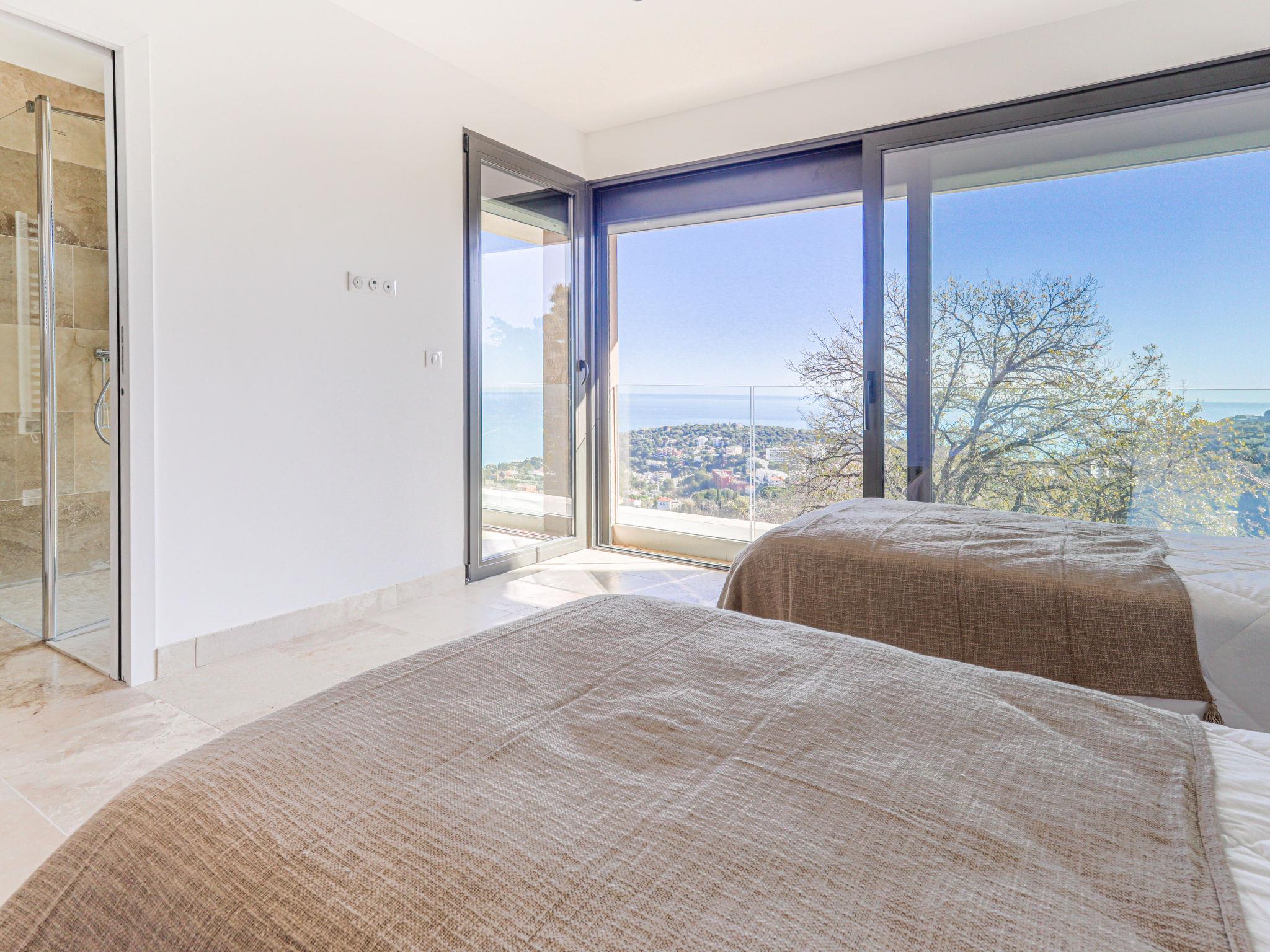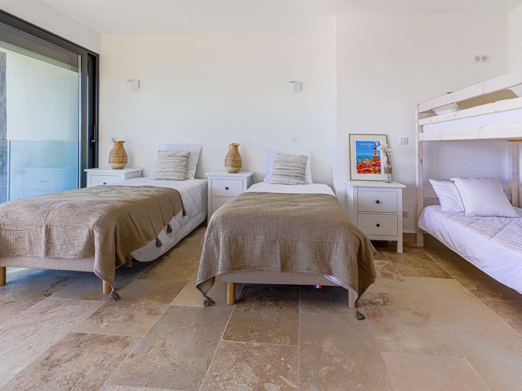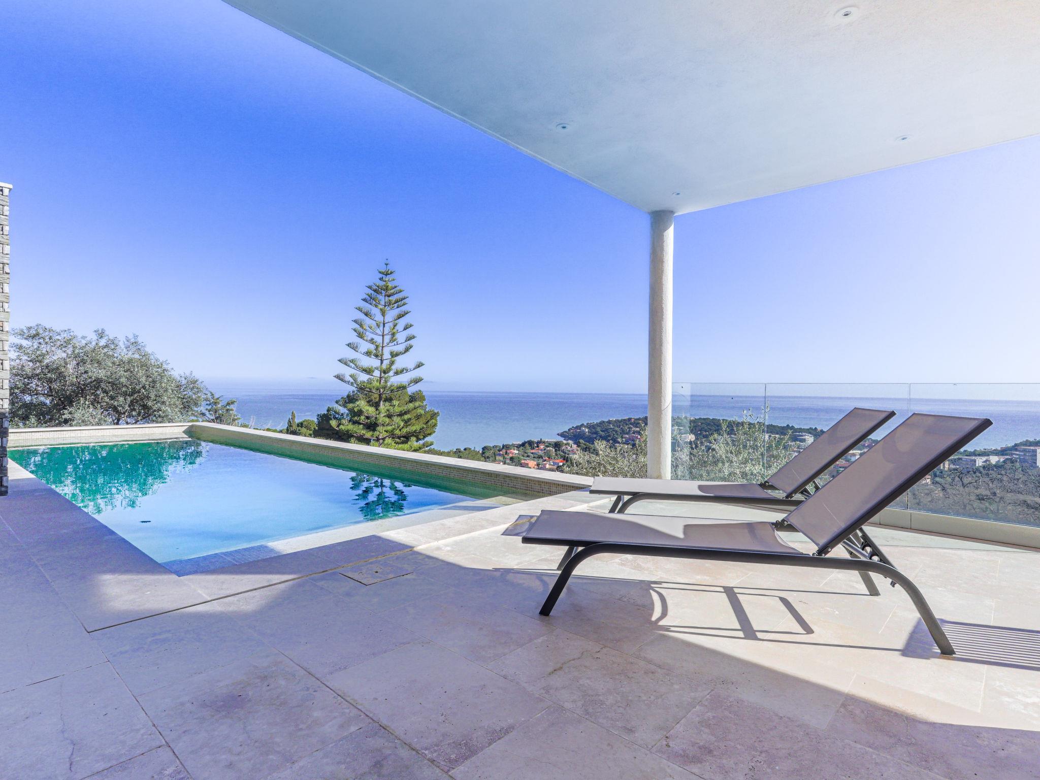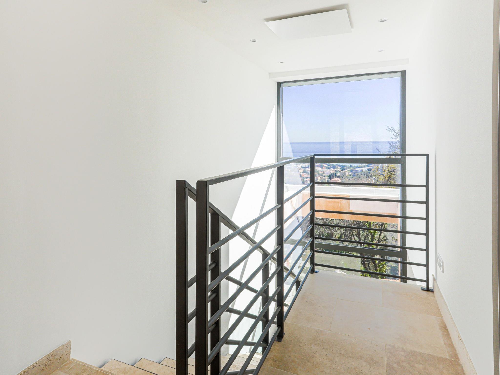 Modern, beautiful villa "La Concorde", 2 storeys, built in 2023. Above Roquebrune Cap Martin, 1.5 km from the centre, in a quiet, sunny position in the residential district, 2 km from the sea, 2.5 km from the beach. Private: terraced garden, 2'000 m2 (fenced) wildlife garden and trees, swimming pool (11 x 4 m, depth 155 - 155 cm, seasonal availability: 01.May. - 31.Oct.) with alarm system. Outdoor shower, boules, parking (for 3 cars). Shop 1.5 km, grocery 1.5 km, supermarket 1.5 km, restaurant 1.5 km, bar 1.5 km, bakery 1 km, café 1.5 km, bus stop "Zest 22" 1.5 km, railway station "Roquebrune Cap Martin" 2.2 km, pebble beach "Plage de la Buse" 2.6 km. Golf course (18 hole) 15 km, tennis 1 km. Nearby attractions: sentier du littoral 2.4 km, Menton 3 km, Monaco 7 km, Nice 27 km, Château Médiéval 2 km. Hiking paths: Parc National du Mercantour 29 km.