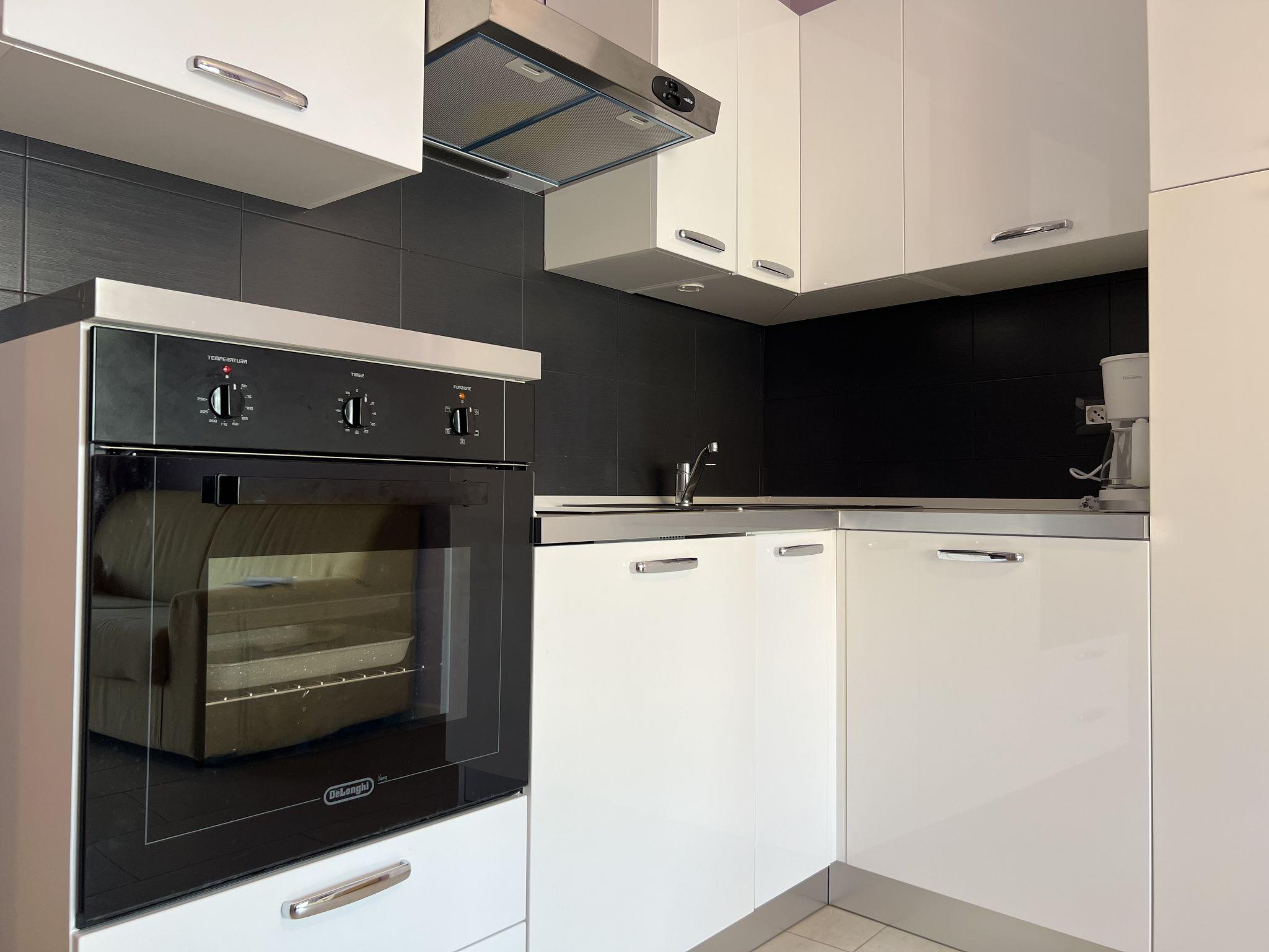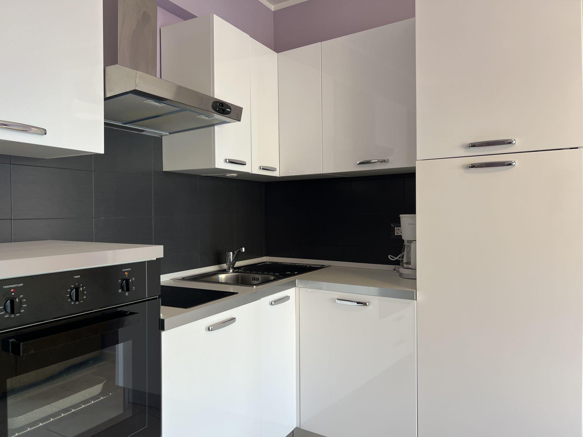 "JAD", 2-room apartment 34 m2 on 3rd floor, south-east facing position. Comfortable furnishings: living/dining room with 1 double sofabed (140 cm, length 180 cm), TV. Exit to the balcony. 1 room with 1 french bed (160 cm, length 190 cm), air conditioning. Exit to the balcony. Kitchenette (oven, 2 induction hot plates, toaster, kettle, freezer, electric coffee machine). Shower/WC. Air-conditioning. Balcony 10 m2, south-east facing position. Balcony furniture. Facilities: washing machine. Internet (WiFi, free). Parking space n 55 (1 car). Please note: non-smokers only. Smoke alarm. Offer by a private individual according to Art. 155, IV of CGI. 06104001723KF