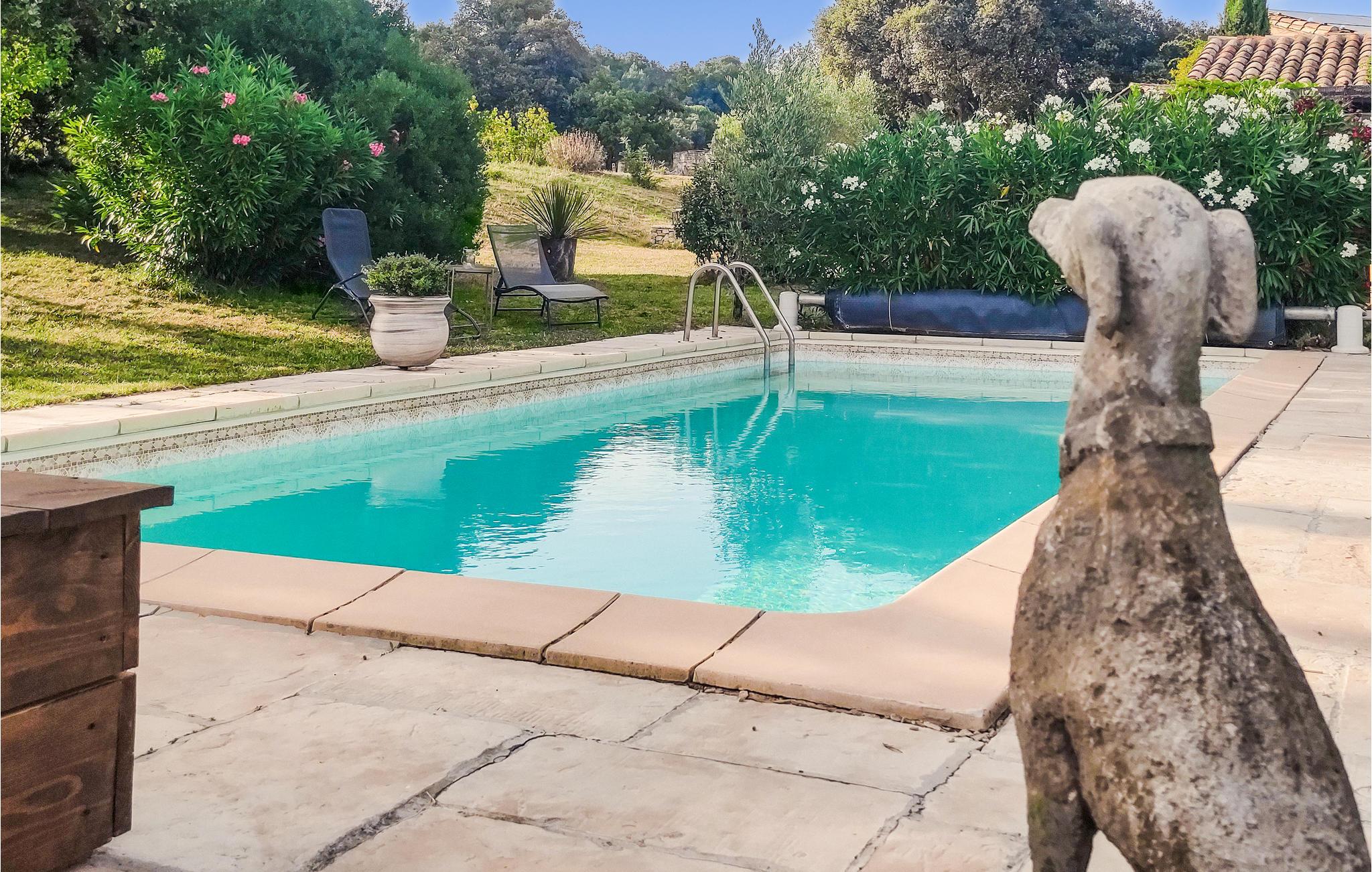 Oppdag den store hagen, som innbyr til lek og moro for hele familien i bassenget. Nyt den vakre eiendommen, og om kvelden kan dere samles på terrassen for å spise grillmat og nyte noe godt å drikke.