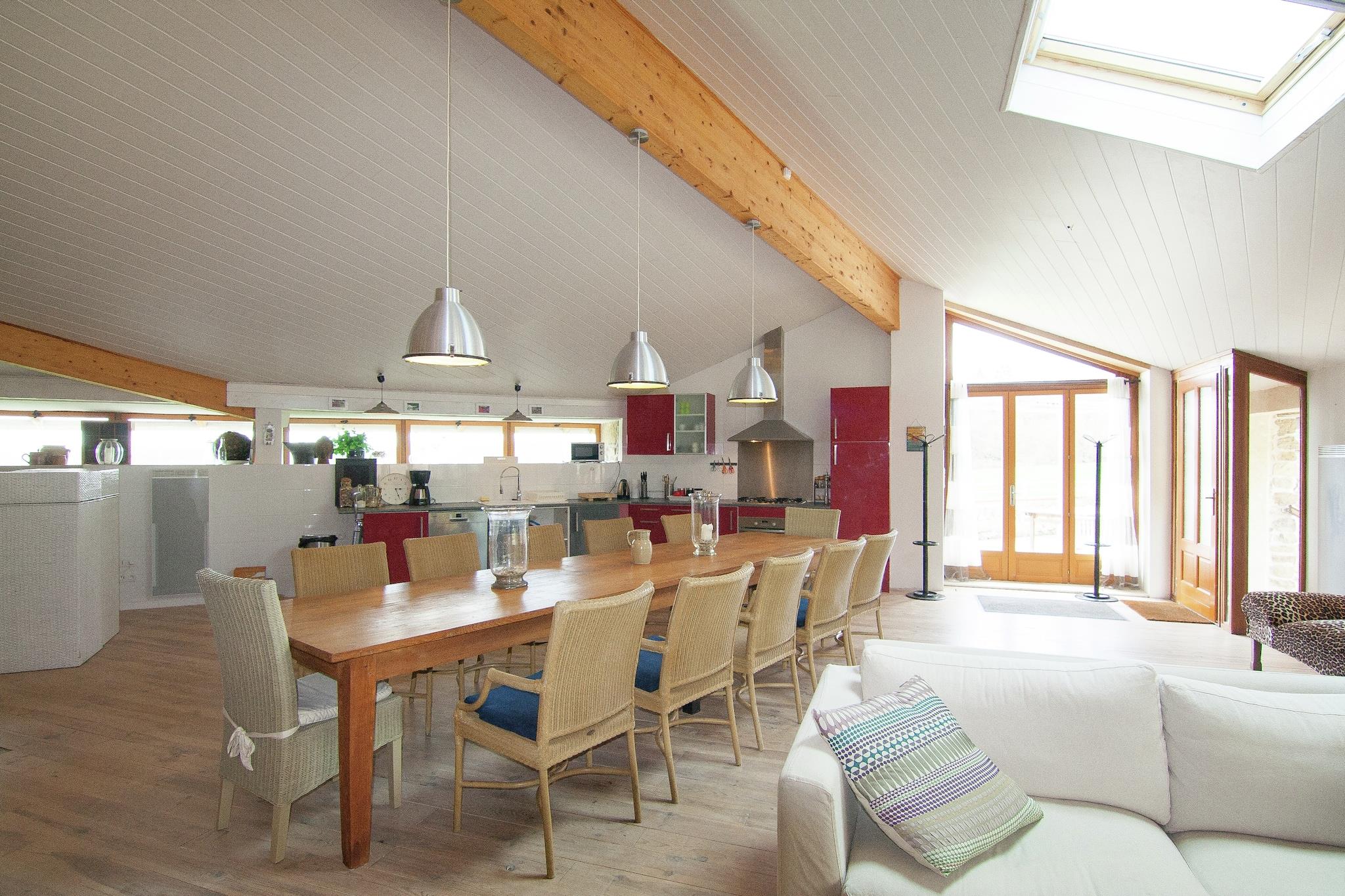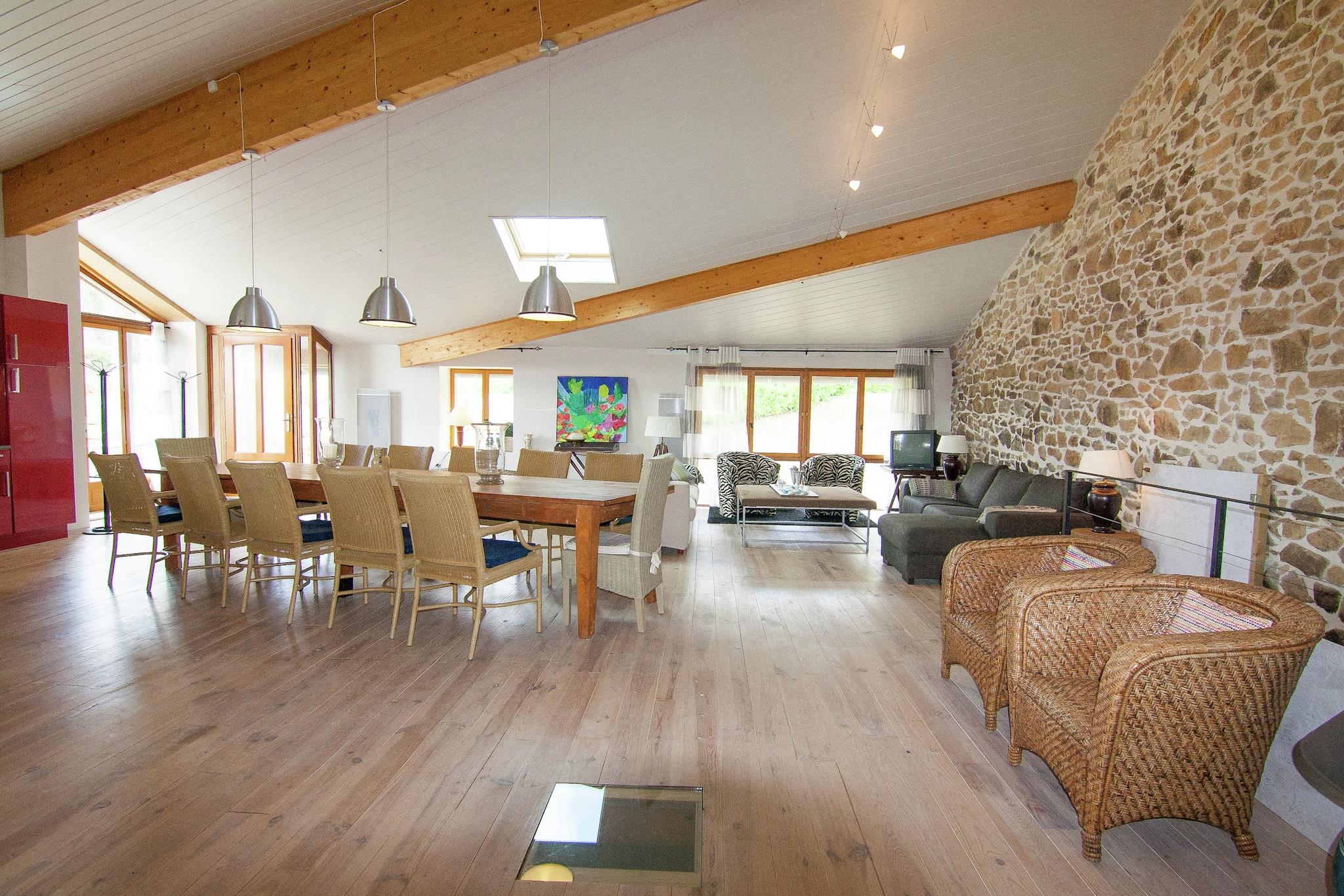 Dette huset med veldig stor stue og kjøkken og privat basseng og hage er perfekt for flere familier.