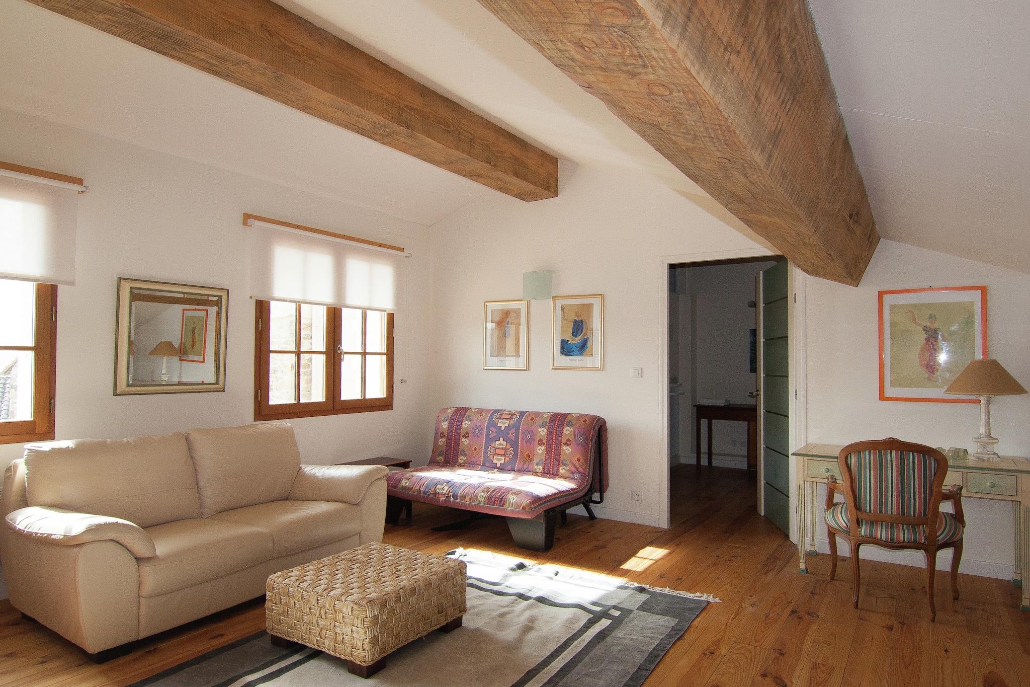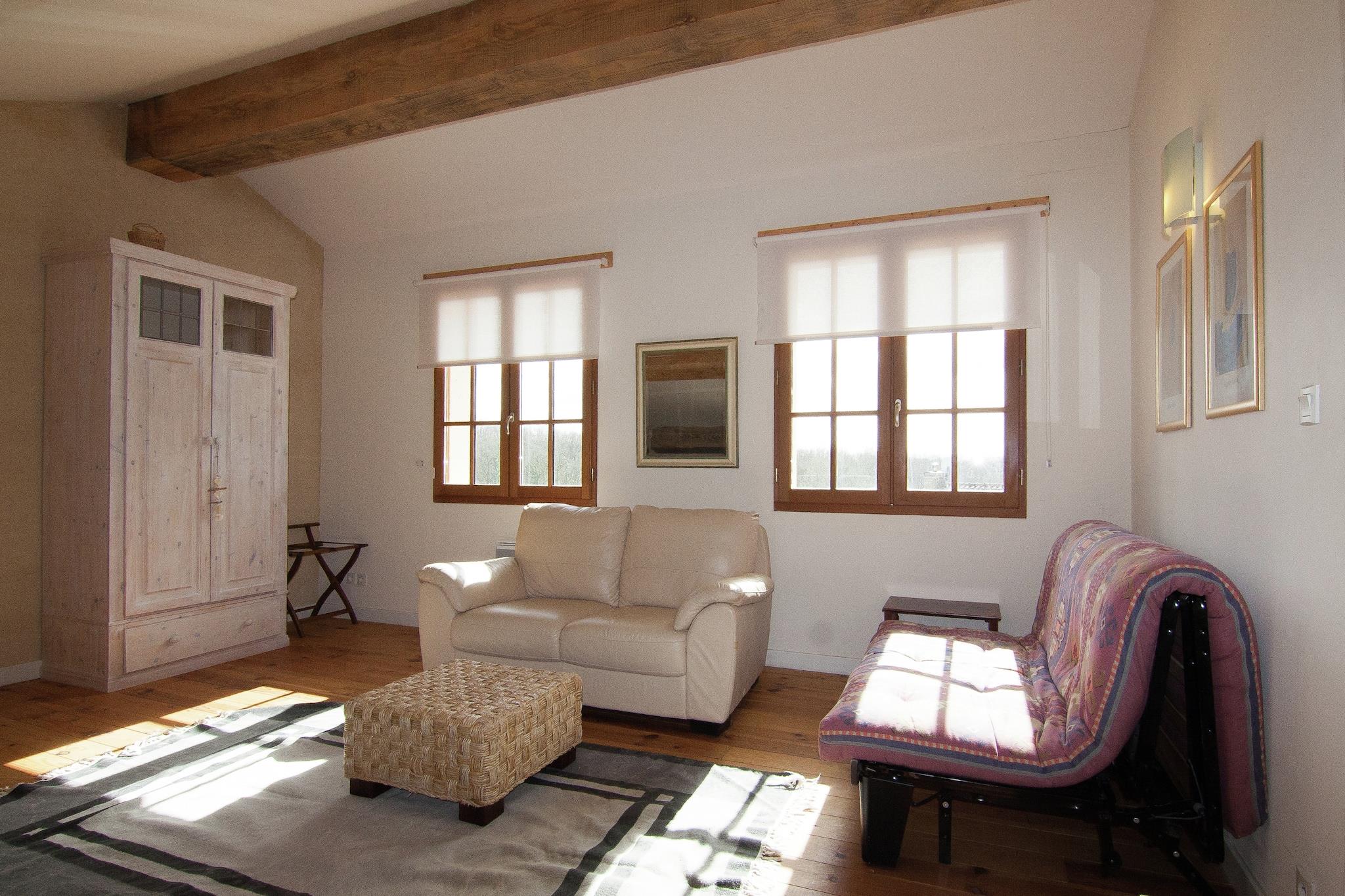 Hytte i Frankrike med overbygd terrasse