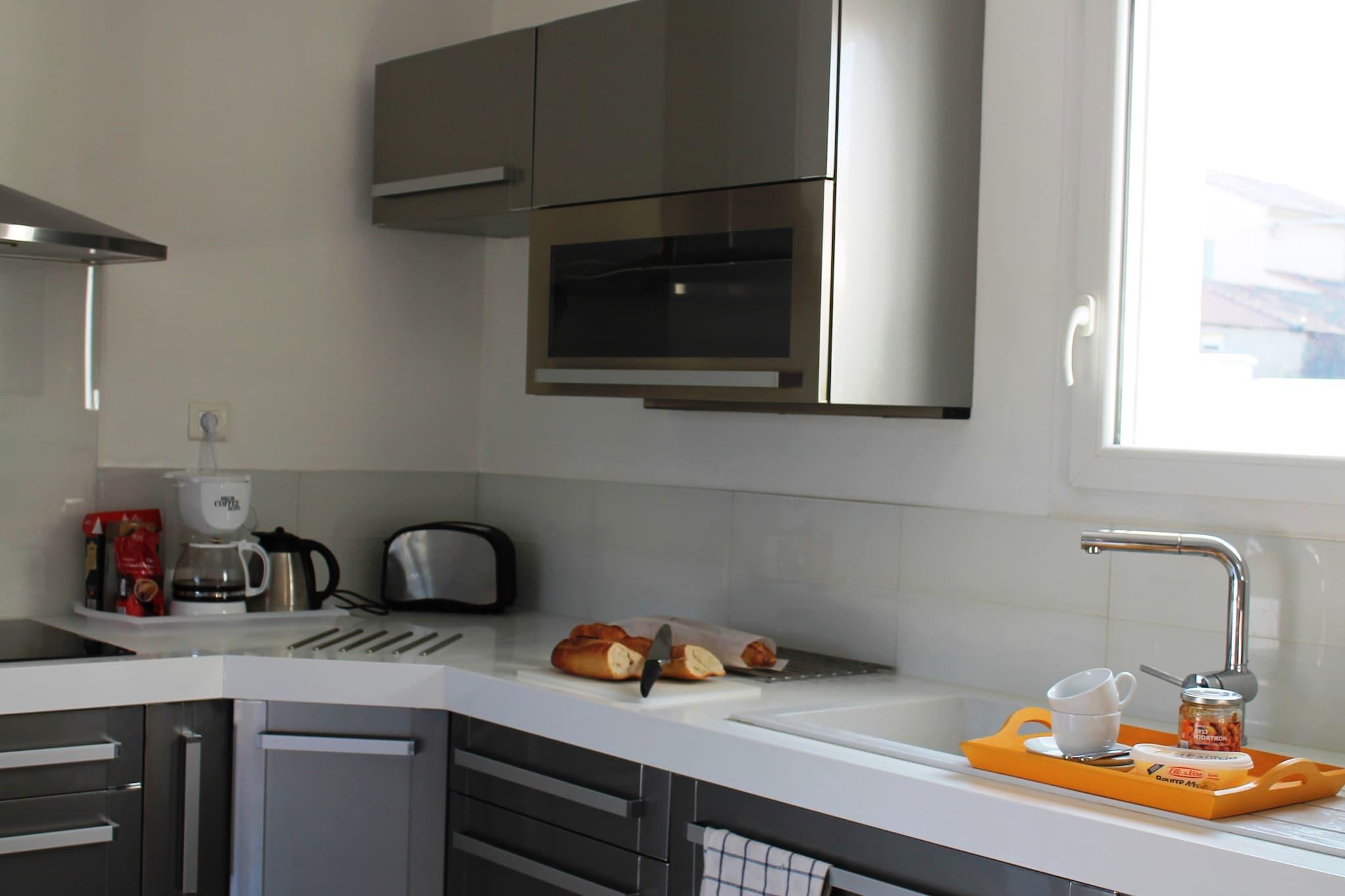 Denne villaen med 4 soverom i Languedoc-Roussillon er ideell for 9 gjester eller familier med barn. Eiendommen har privat svømmebasseng, terrasse og velstelt hage med teak-solsenger og tremøbler. Et separat barneområde med hagehus, sandkasse, huske og leker sørger for moro, mens en skyggefull sittegruppe under oliventrærne gjør at foreldrene kan slappe av i nærheten. Nærliggende landsbyer som Uzes, Anduze og Lussan er perfekte for utflukter, mens historiske byer som Nimes, Avignon og Montpellier kan besøkes på dagsturer. Le Grau du Roi-stranden og Ardèche (20 km) tilbyr svømming og vannsport. Supermarkeder og sentrum ligger bare 500 meter unna. Villaen er nylig renovert og stilfullt innredet, og har klimaanlegg, innendørs oppvarming, en koselig stue/spisestue med komfyr og et fullt utstyrt kjøkken. Barneseng og barnestol er tilgjengelig, og det er parkeringsplass. Innsjekking er kl. 16.00–18.00, utsjekking kl. 08.00–10.00.