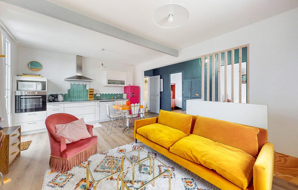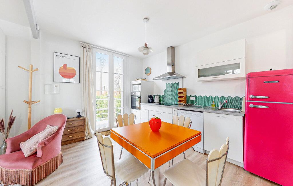Stilig og fargerikt feriehus for en vellykket familieferie ved sjøen.