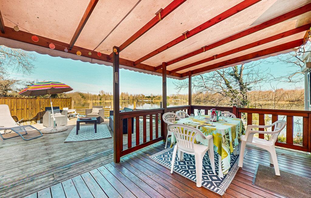 Start feriedagen med en god kopp kaffe og en deilig frokost på den overbygde terrassen. Derfra kan du nyte den fortryllende utsikten over den nærliggende innsjøen. Deretter kan du sette deg til rette i solsengene og hagestolene på den store, åpne terrassen eller ta en svømmetur. Innsjøen innbyr til bading og avslappende timer på stranden. Feriehuset byr også på mange sportslige aktiviteter. Her kan du spille fotball, basketball, bordtennis og petanque med hele familien. Her blir det aldri kjedelig.
