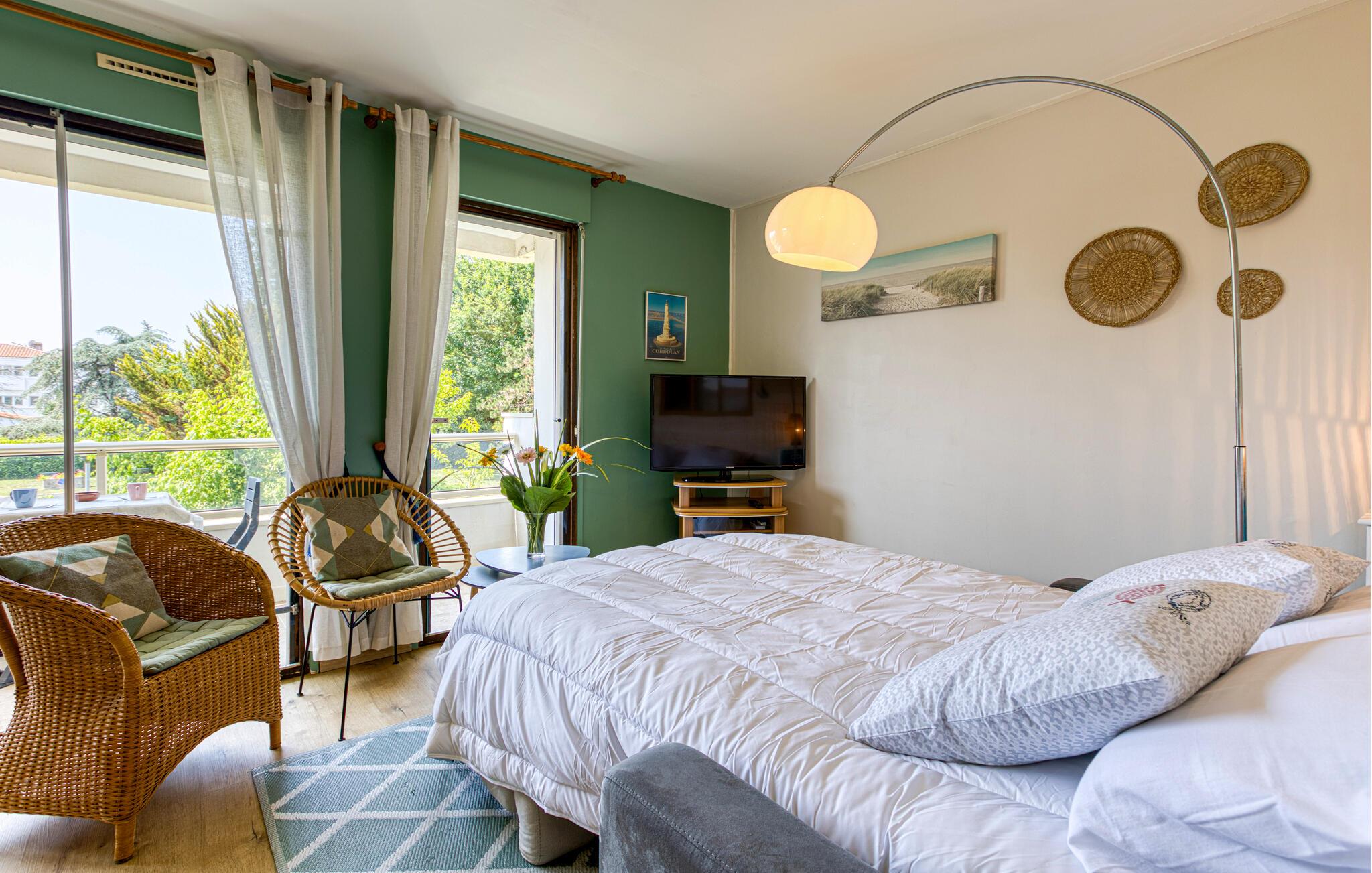 I hjertet av badebyen Royan og i gangavstand fra stranden, tilbyr denne koselige ferieleiligheten et godt utgangspunkt for en avslappende ferie sammen med dine nærmeste. Start en begivenhetsrik dag her med en solid frokost, planlegg utflukter sammen og sett deg godt til rette i sofaen om kvelden med et brettspill eller en bok.
