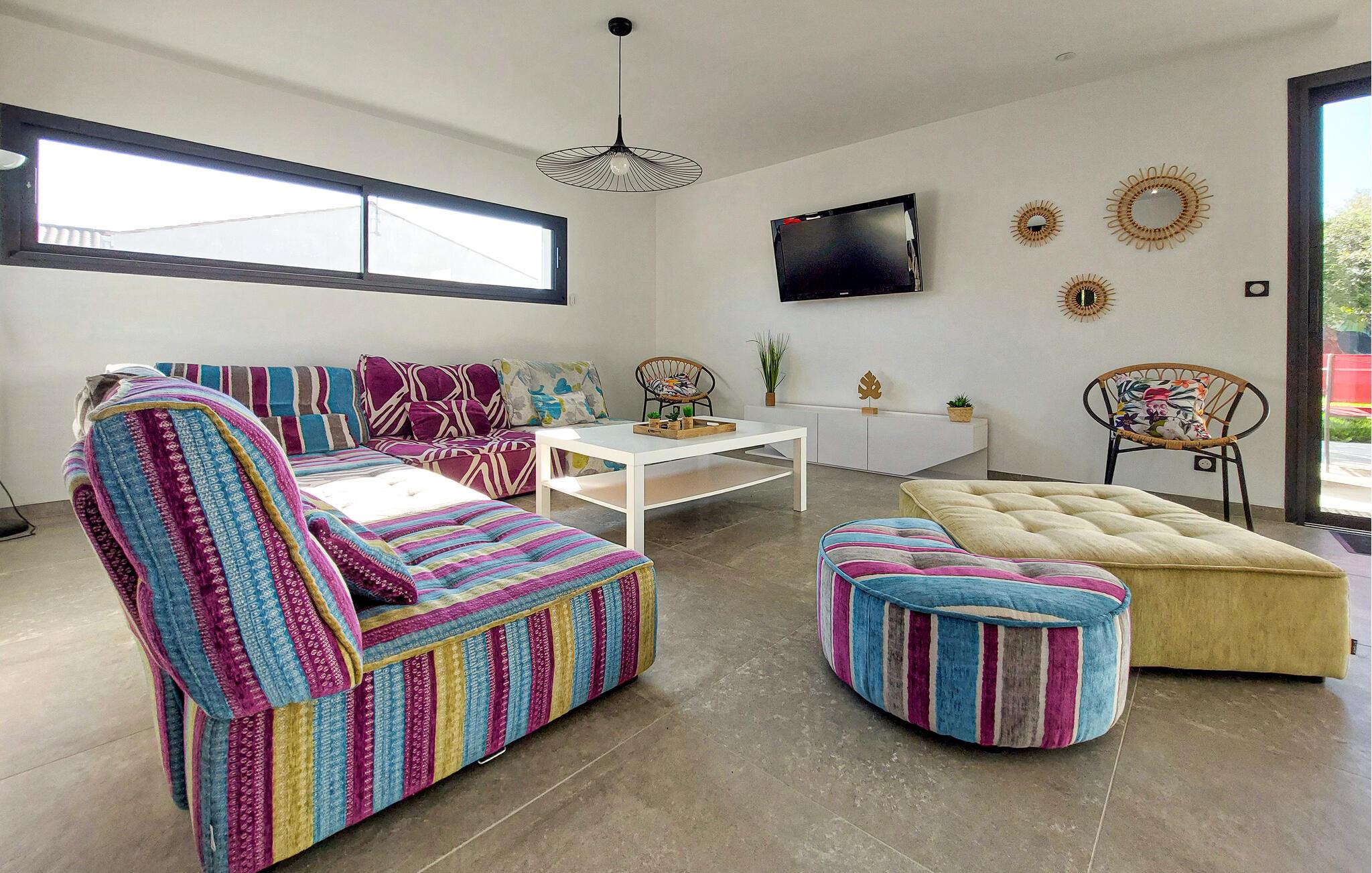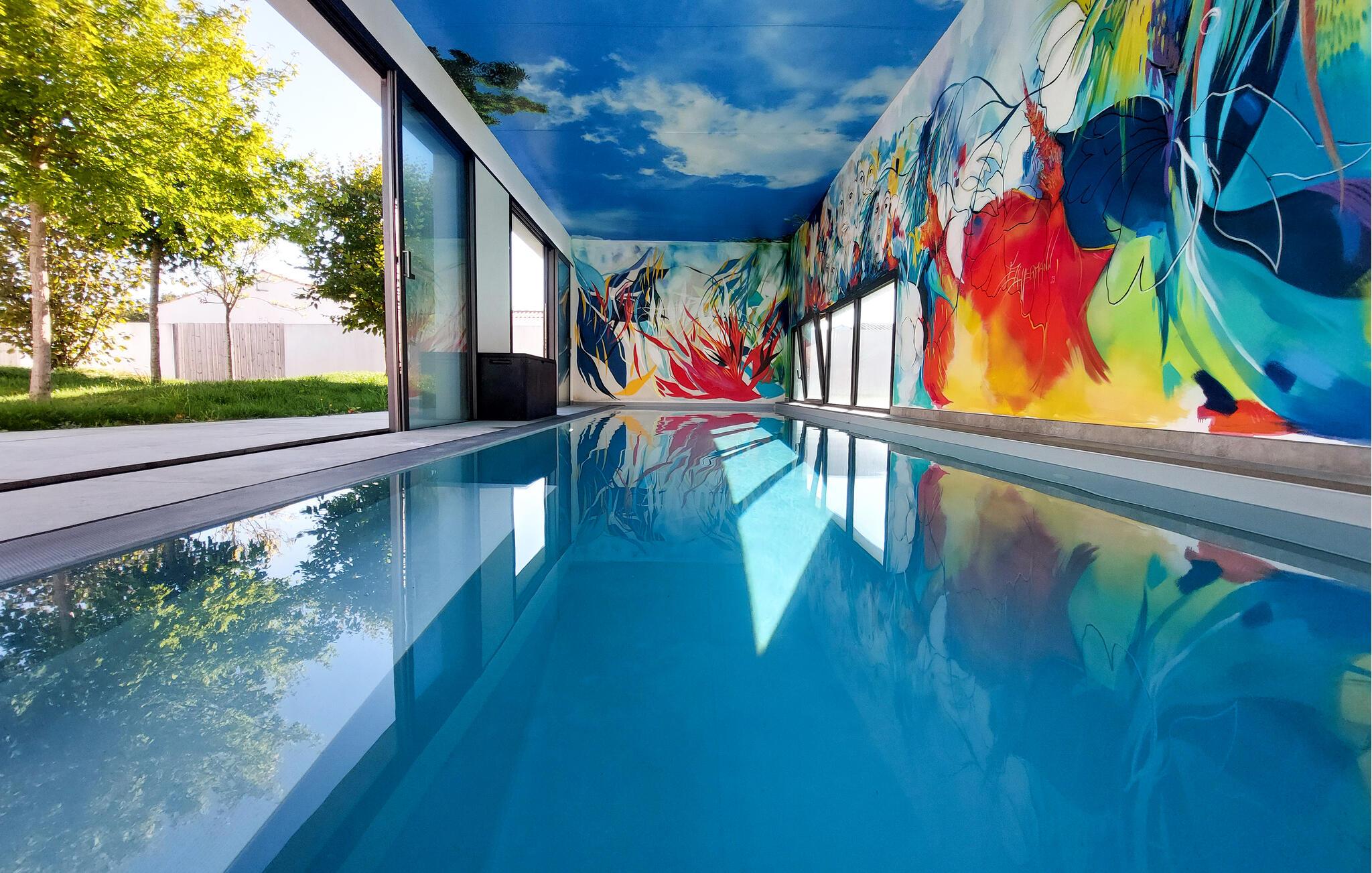 Nyt en sosial ferie i dette luksuriøse feriehuset med innendørsbasseng.