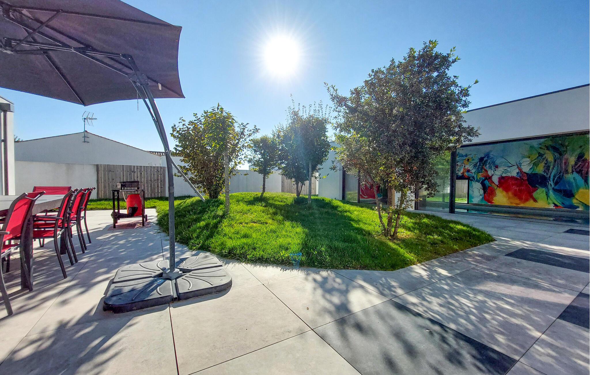 Dette moderne og romslige feriehuset ønsker deg velkommen med et lyst og høykvalitets møblert interiør, hvor du vil føle deg hjemme fra dag én, selv med en stor familie eller vennegjeng. Hold hyggelige matlagingsaftener, slå deg ned ved det lange spisebordet og møt opp til stimulerende samtaler eller en god film i den elegante stuen.