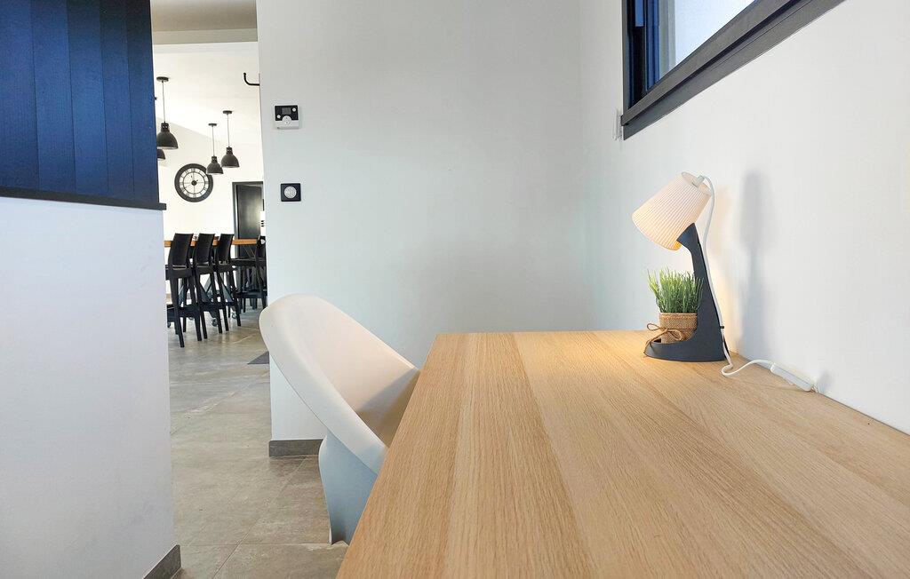Utenfor venter en stor terrasse hvor du kan nyte frokosten, prate over et glass vin i skyggen og feire stemningsfulle grillkvelder. Ta en rolig dukkert i innendørsbassenget, som byr på en herlig badeopplevelse selv om sommeren takket være en bred skyvedør, og konkurrer på bowlingbanen.