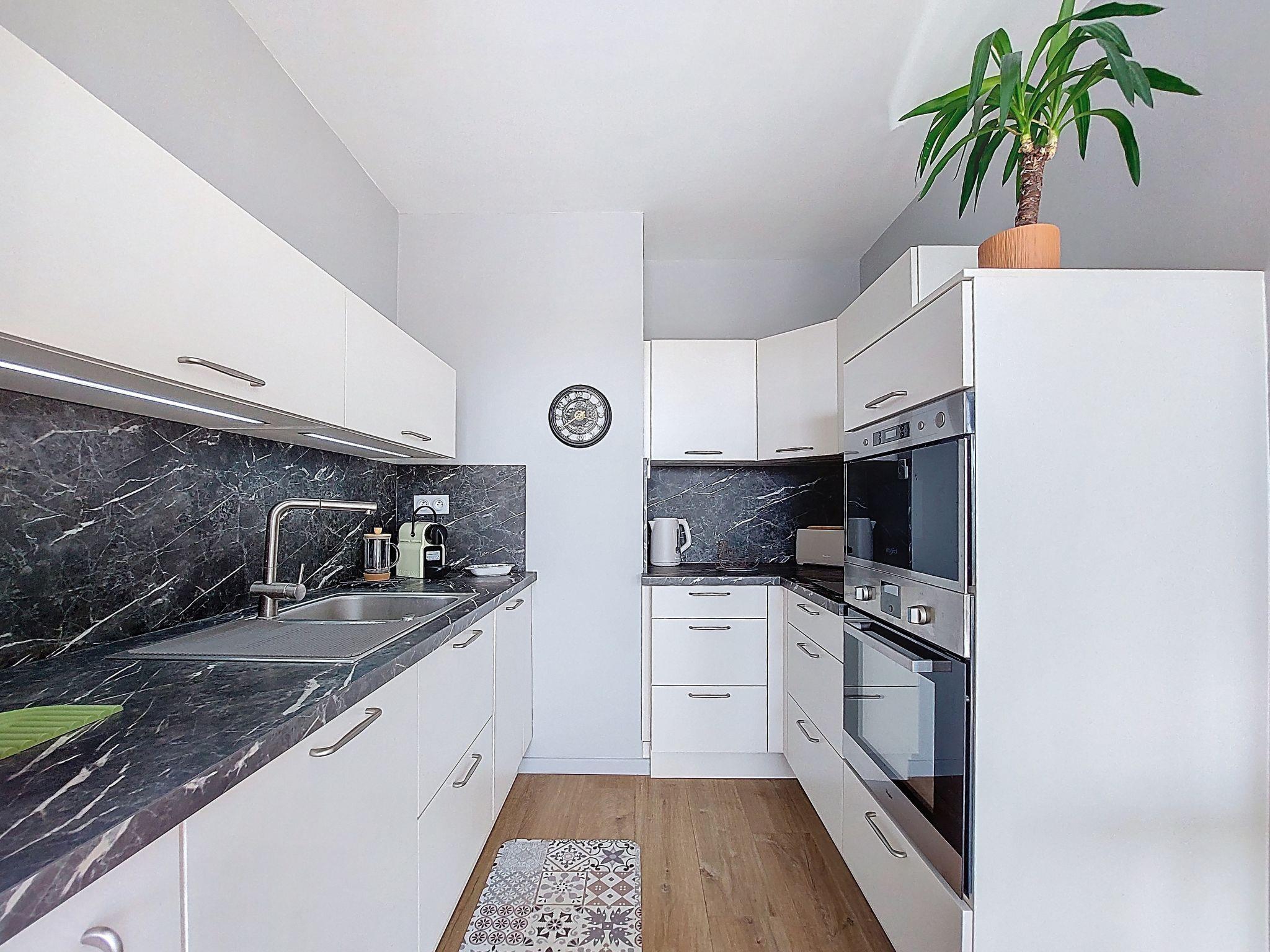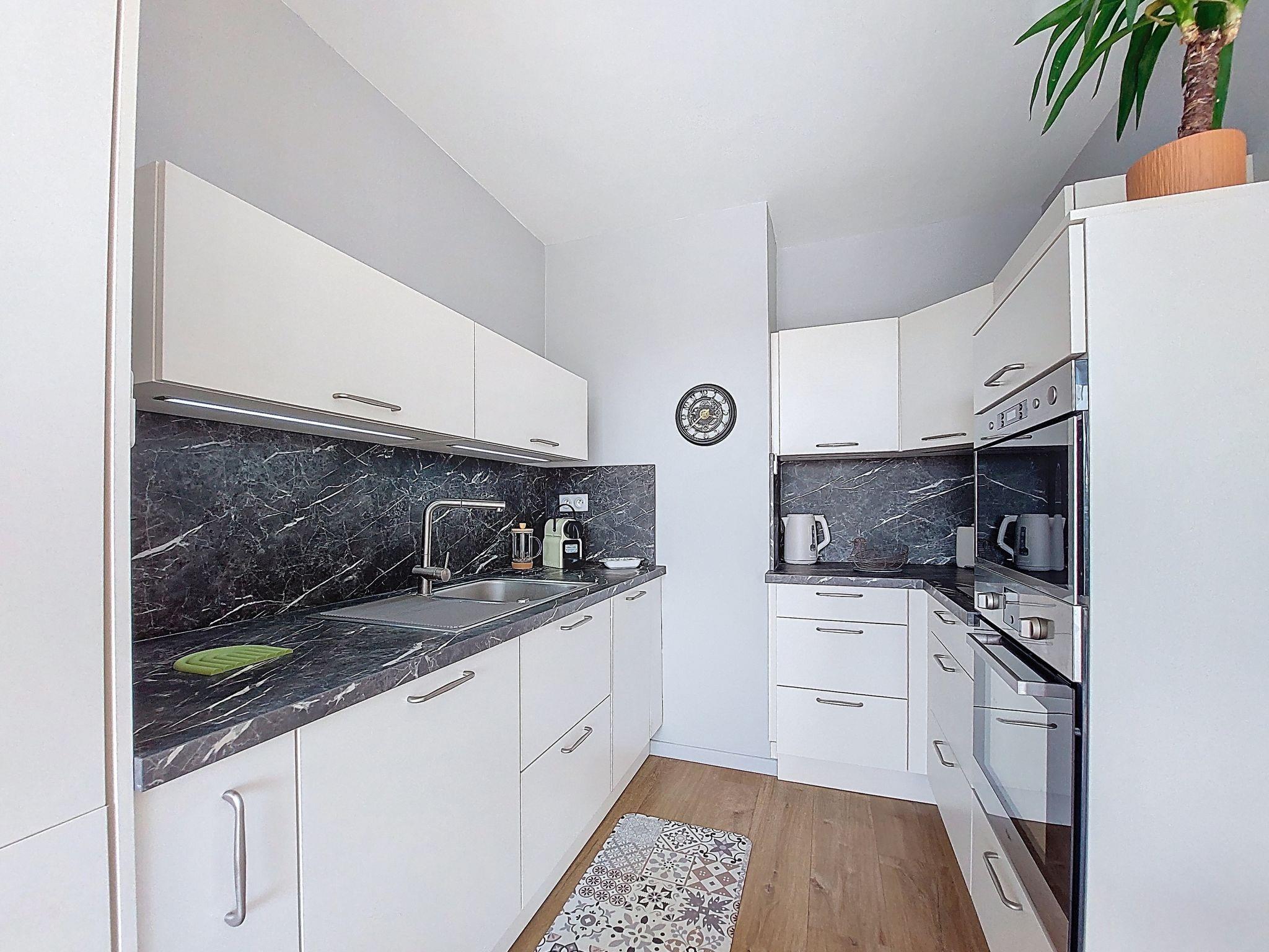 "Le Colibri", 2-room apartment 43 m2 on 2nd floor. Tasteful furnishings: living/dining room with panoramic window with TV (flat screen), electric heating. Exit to the balcony. 1 room with 1 french bed (1 x 160 cm, length 190 cm). Open kitchen (oven, dishwasher, 2 induction hot plates, toaster, kettle, microwave, freezer, electric coffee machine). Shower, sep. WC. Balcony 6 m2, south facing position. Balcony furniture. Facilities: washing machine, iron, hair dryer. Internet (WiFi, free). Please note: non-smokers only. Smoke alarm. A lockable cellar is available. Offer by a private individual according to Art. 155, IV of CGI. 170600113754
