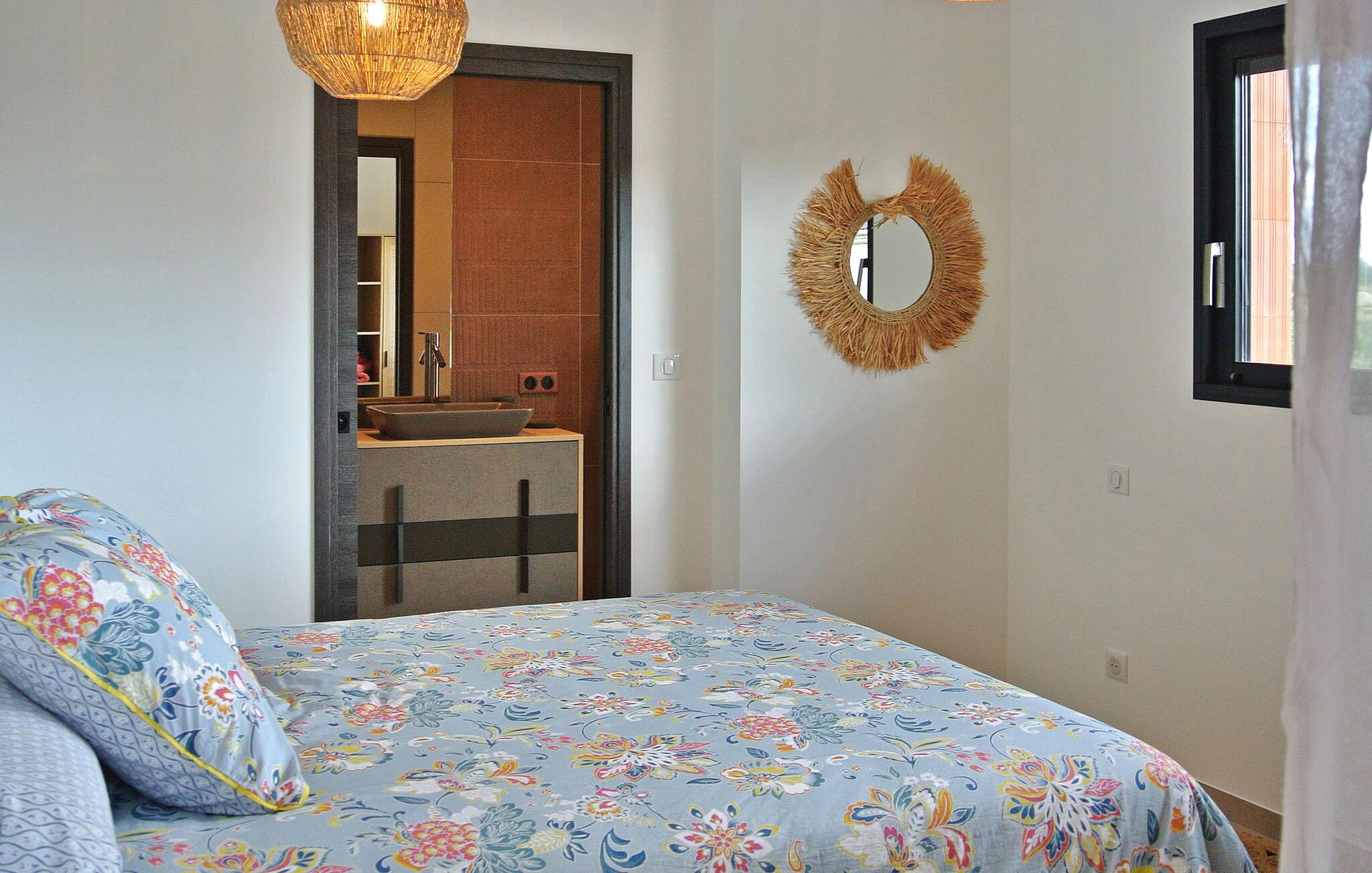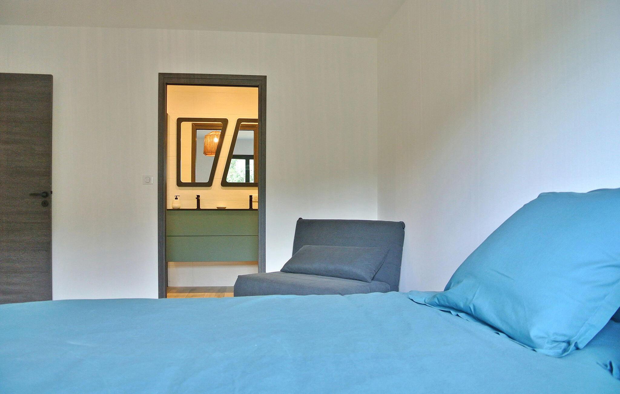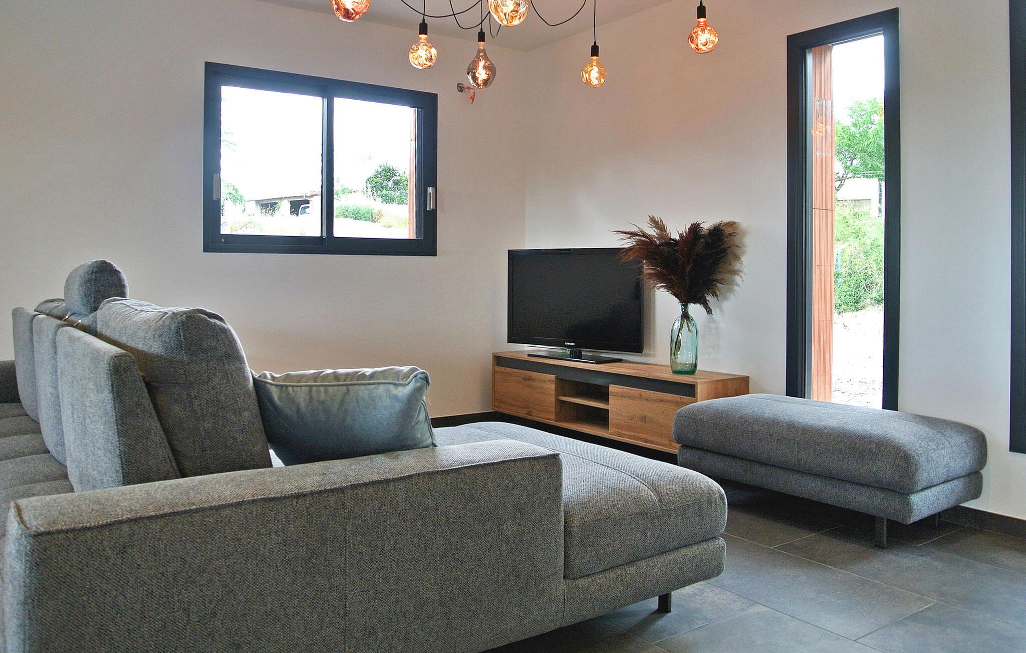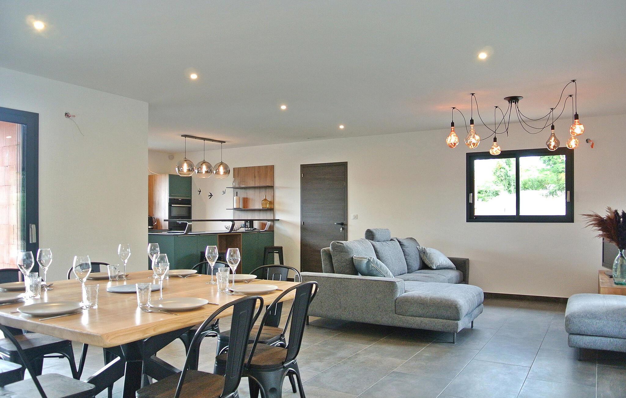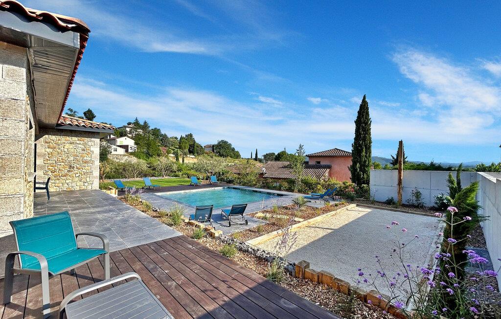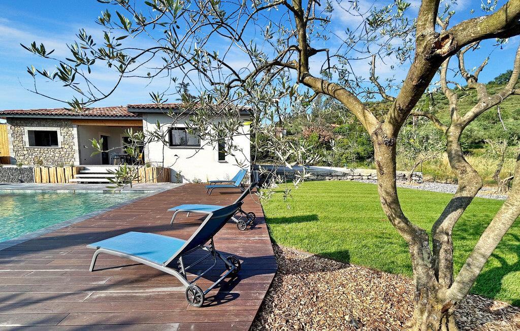 Opplev sjarmen i det sørlige Ardèche i denne moderne villaen med klimaanlegg, privat basseng og en fortryllende hage. Denne enetasjes villaen er stilfull og moderne og har alt du trenger for en avslappende ferie. Med nærhet til lokale fasiliteter og privat terrasse, svømmebasseng og petanquebane er det lite å savne. Det er også parkering for 3 biler og en gratis ladestasjon for elbiler. Villaen ligger i et boligområde i Ruoms, en 10-minutters spasertur fra sentrum av landsbyen og en 7-minutters spasertur fra Greenway, en ombygd jernbanelinje som går fra Grospierres til St Sernin og nå brukes som tur- og sykkelsti. Du finner også flere utfartssteder for kanoer i umiddelbar nærhet. Opplev livsstilen i det sørlige Ardèche i denne moderne villaen der avslapning møter eleganse.