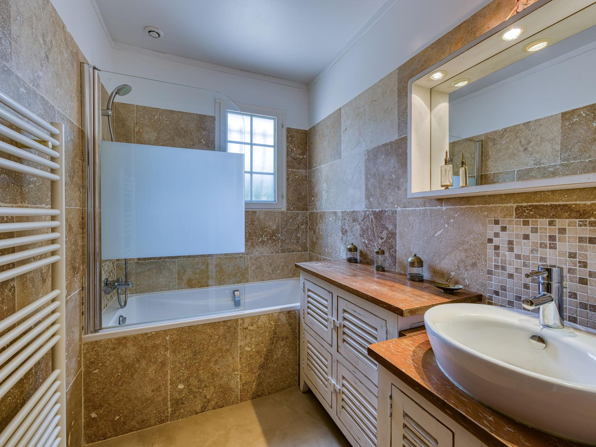 "Le Chêne", 4-room house 105 m2. Comfortable furnishings: large living/dining room with dining table, TV, DVD and air conditioning. Exit to the terrace. 1 room with 1 french bed (160 cm), bathroom and air conditioning. 1 room with 1 bed. 1 room with 1 french bed. Open kitchen (oven, dishwasher, 3 ceramic glass hob hotplates, toaster, kettle, microwave, freezer, electric coffee machine). Shower/WC. Electric heating. 2 terraces. Terrace furniture, barbecue (portable), deck chairs (4), box-room. Facilities: washing machine, iron, children's high chair, baby cot. Internet (WiFi, free). Please note: non-smoking house.