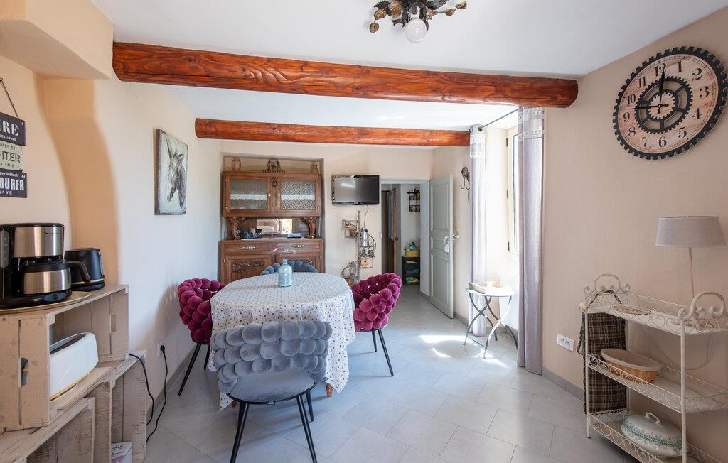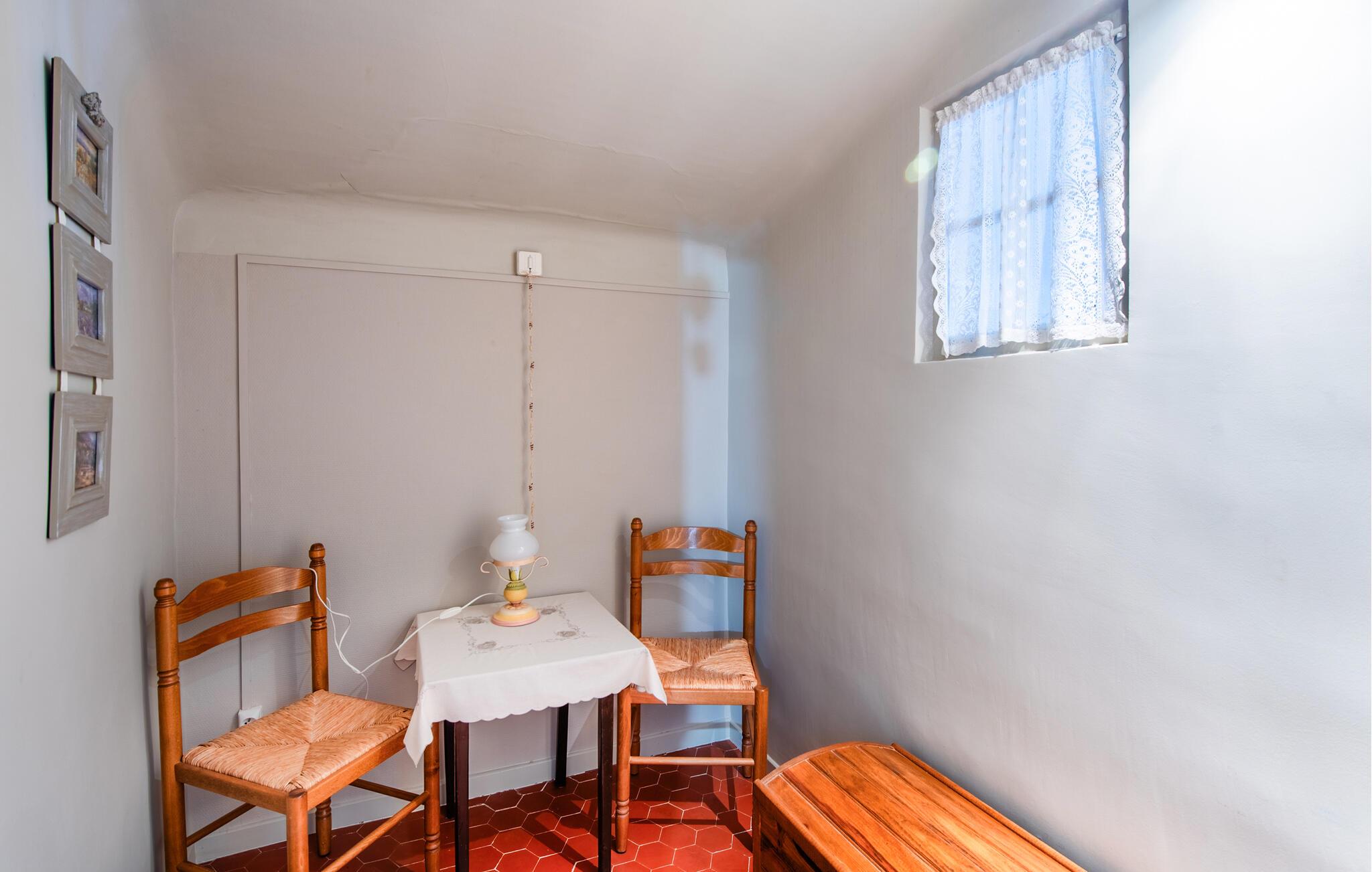 Dette vennlige feriehuset er et ideelt tilfluktssted for naturelskere som ønsker å flykte fra hverdagen og nyte fredelige dager i naturskjønne omgivelser. Tilbered enkle måltider på det praktiske kjøkkenet, planlegg aktivitetene dine ved det innbydende spisebordet, og nyt en koselig spillkveld med dine nærmeste etter en aktiv dag.