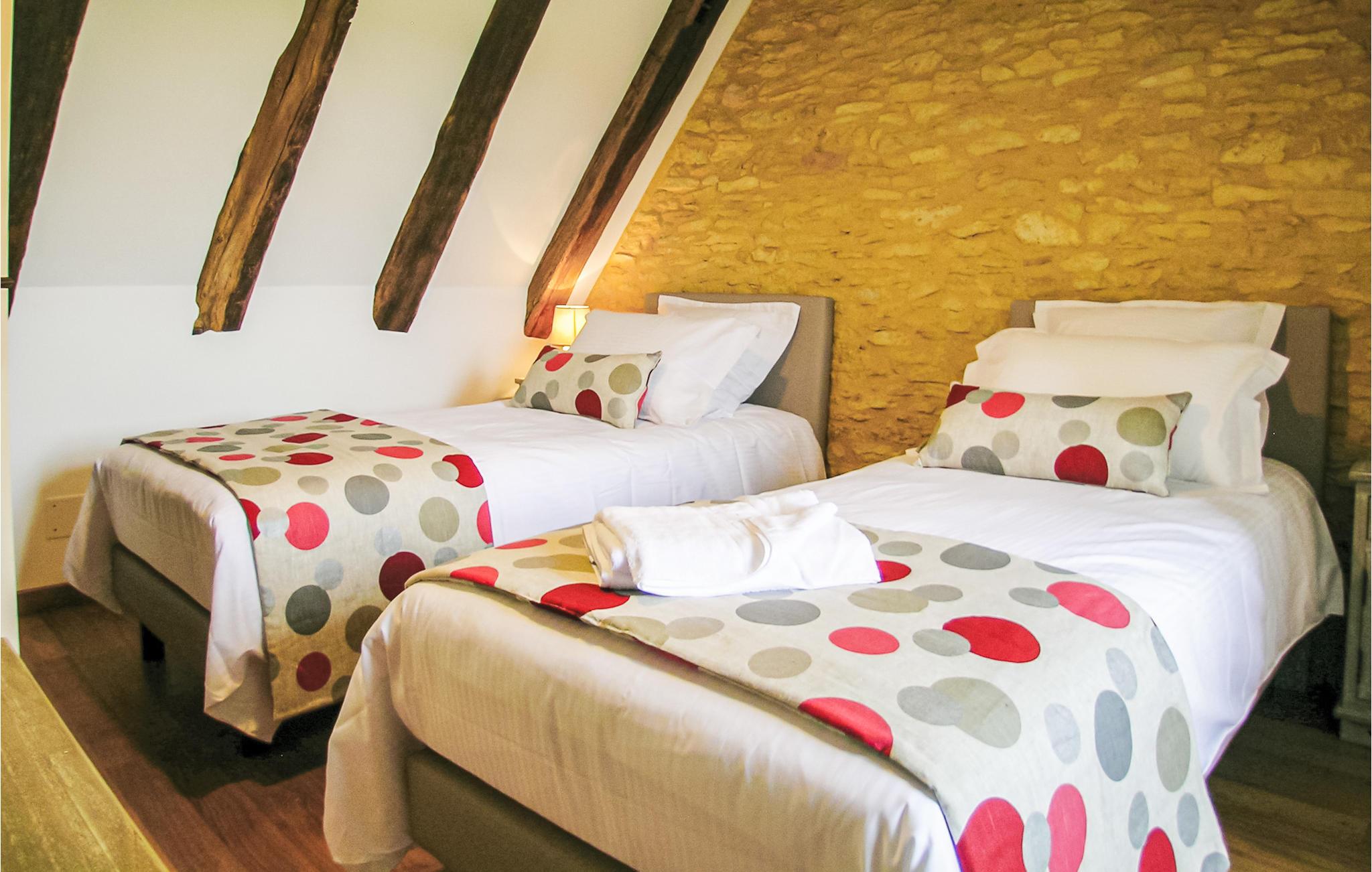 Dette renoverte feriehuset i stein fra 1700-tallet ligger i en landsby som ønsker deg velkommen i skogene og de grønne engene i Périgord Noir. Det sjarmerende huset har et oppvarmet og bortgjemt svømmebasseng og ligger ideelt til for å besøke de mange turistattraksjonene i regionen. En gammel brødovn pryder den veldig vakre stuen og spisestuen, som også har originale trebjelker og steinvegger. Franske dører på hver side av eiendommen fører til uteområdet der du kan nyte måltidene dine i det fri. Den nærliggende landsbyen er offisielt en av de vakreste landsbyene i Frankrike og har relikvier fra en kirke fra det 12. århundre og et romansk kloster. Med dette vakre bakteppet arrangeres det jevnlig musikalske kveldsarrangementer gjennom hele sommeren. Billetter må bestilles på forhånd. De som liker å gå, kan enkelt tilbakelegge de 3 km til den skogkledde dalen med sine mange hyggelige ridestier til fots. 5 km unna venter den historiske byen Montignac på ditt besøk: her kan du ta en rolig elvetur i kano og beundre de berømte steinmaleriene i Lascaux-grottene. Middelalderlandsbyen Sarlat (21 km) har et godt utvalg av butikker og markeder to ganger i uken, og Les Eyzies-de-Tayac-Sireuil har restauranter, kanoutleie og et nasjonalt museum for forhistorie.