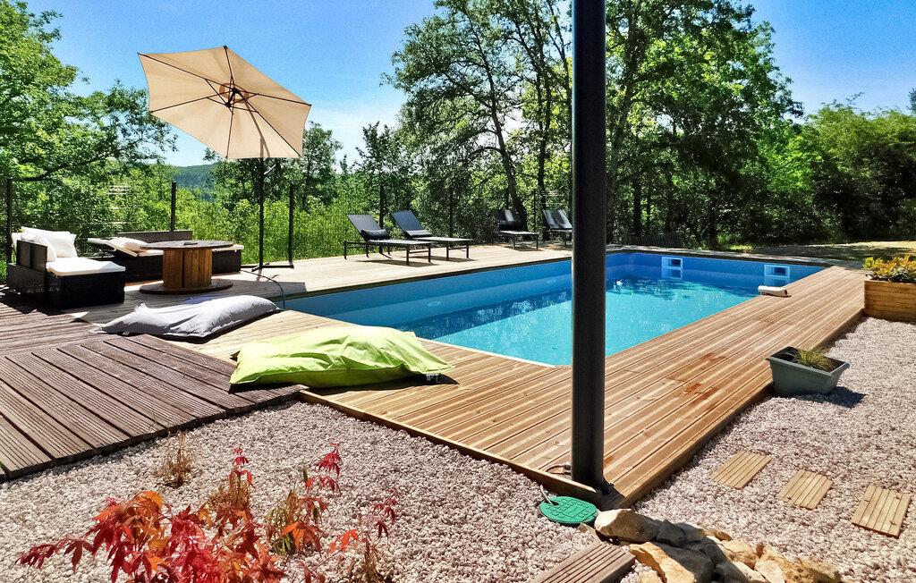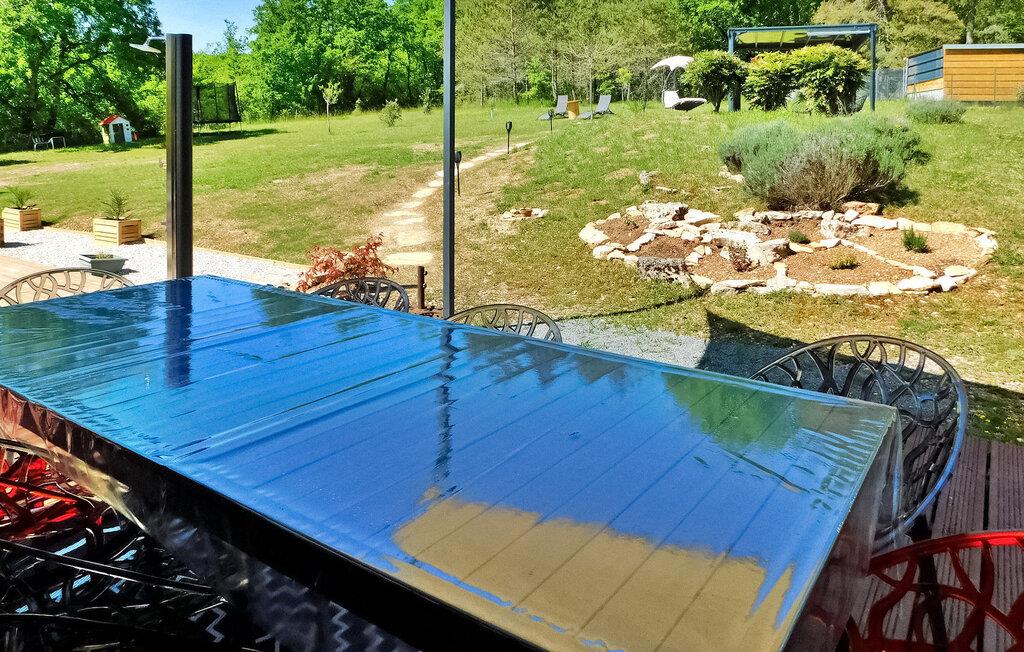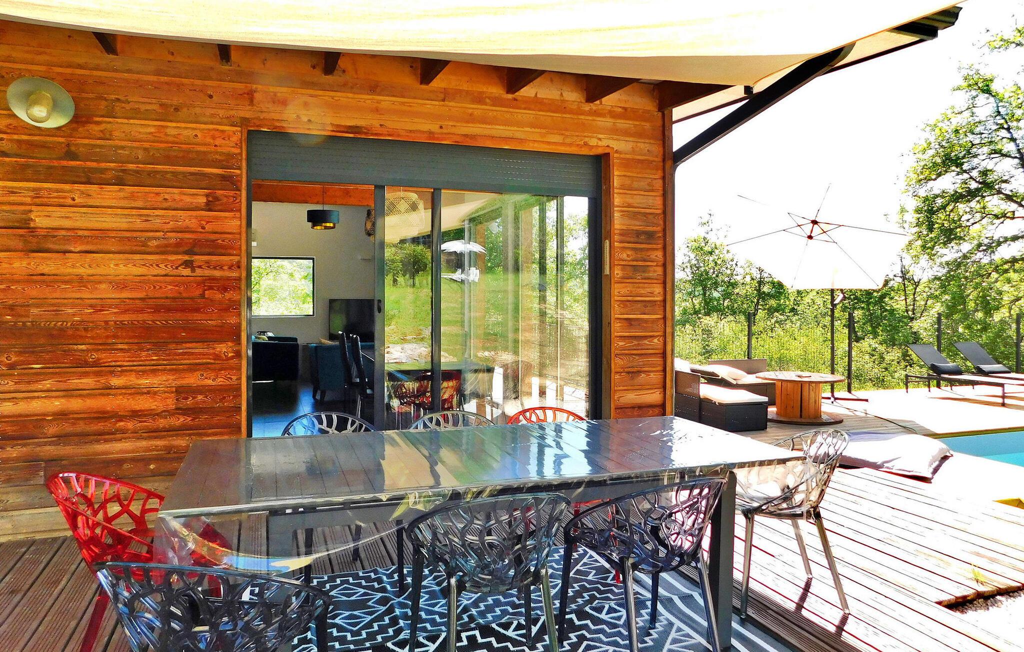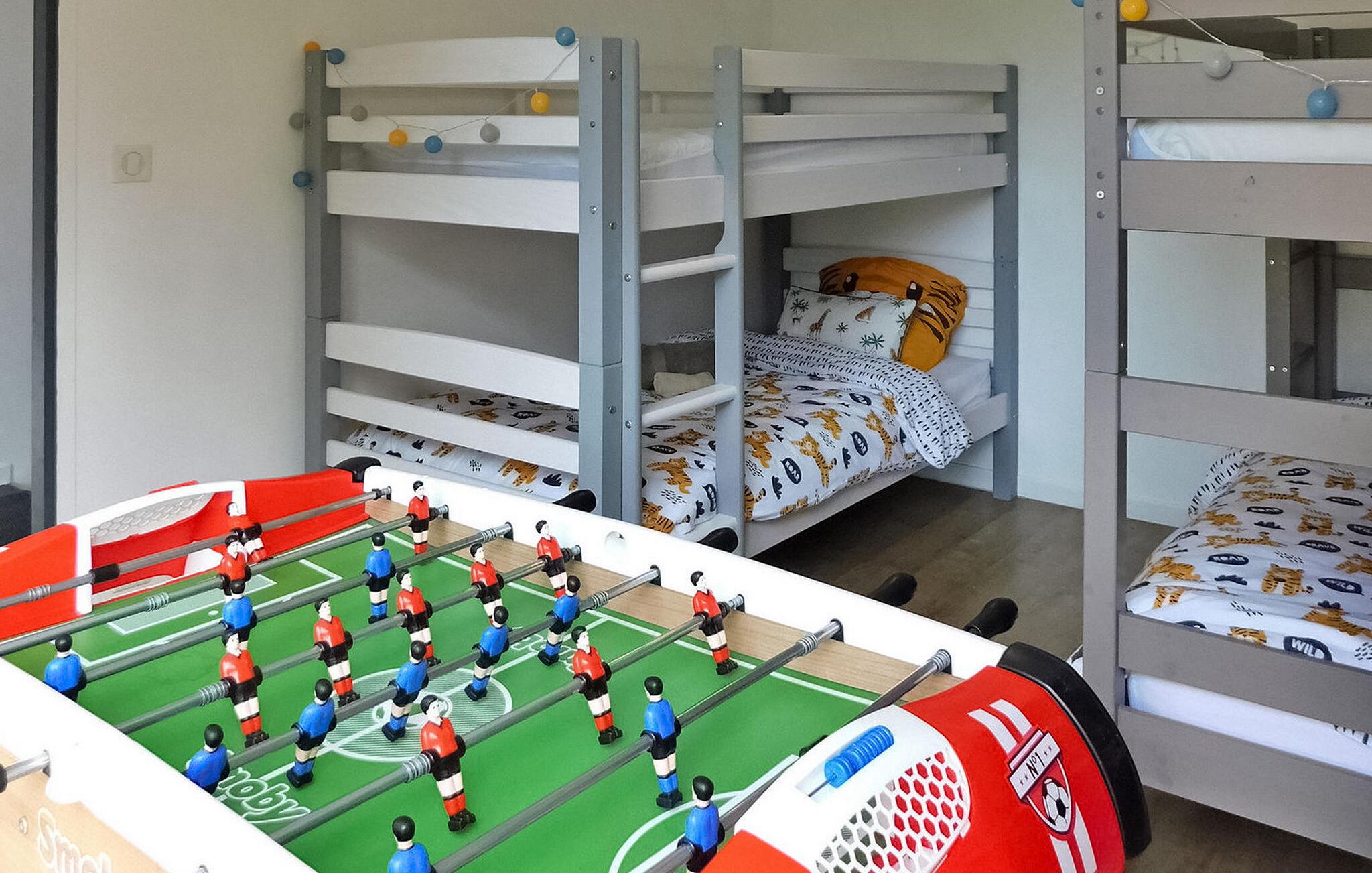Dette moderne feriehuset i Dordogne ligger i fredelige, landlige omgivelser i nærheten av Saint Amand de Coly. Huset har et lyst og lyst område i første etasje med klimaanlegg, en koselig sittegruppe, spiseplass og et åpent kjøkken utstyrt med de viktigste hvitevarene. Det er også to soverom i første etasje, hvorav det ene er utstyrt med køyesenger og et bordfotballbord for barn. I andre etasje er det to soverom med klimaanlegg og et felles dusjrom. Utenfor har eiendommen et privat oppvarmet basseng, et lekeområde for barn med trampoline og lekehus, flere terrasser med hagemøbler og en plancha. Vær oppmerksom på at hovedadkomsten går via en tretrapp med rekkverk og en port. Om vinteren varmes huset opp med en pelletskamin. Huset ligger på landsbygda utenfor landsbyen Saint-Amand-de-Coly (lokal dagligvarebutikk, restaurant og brøddepot).