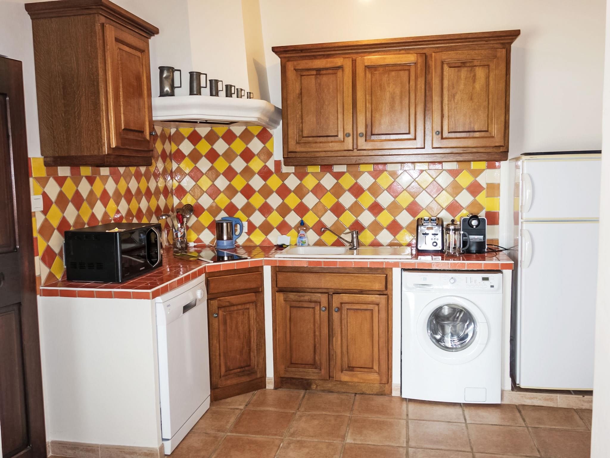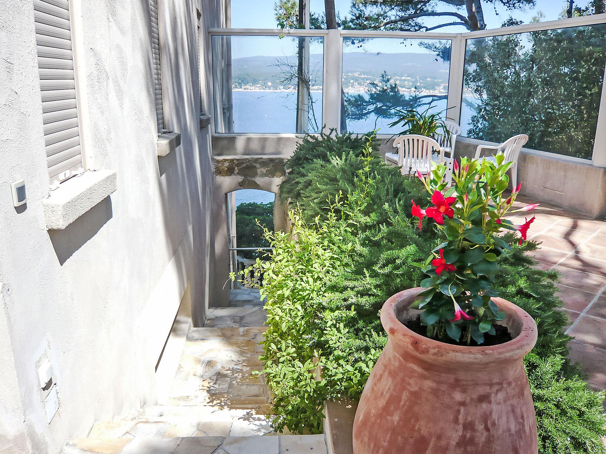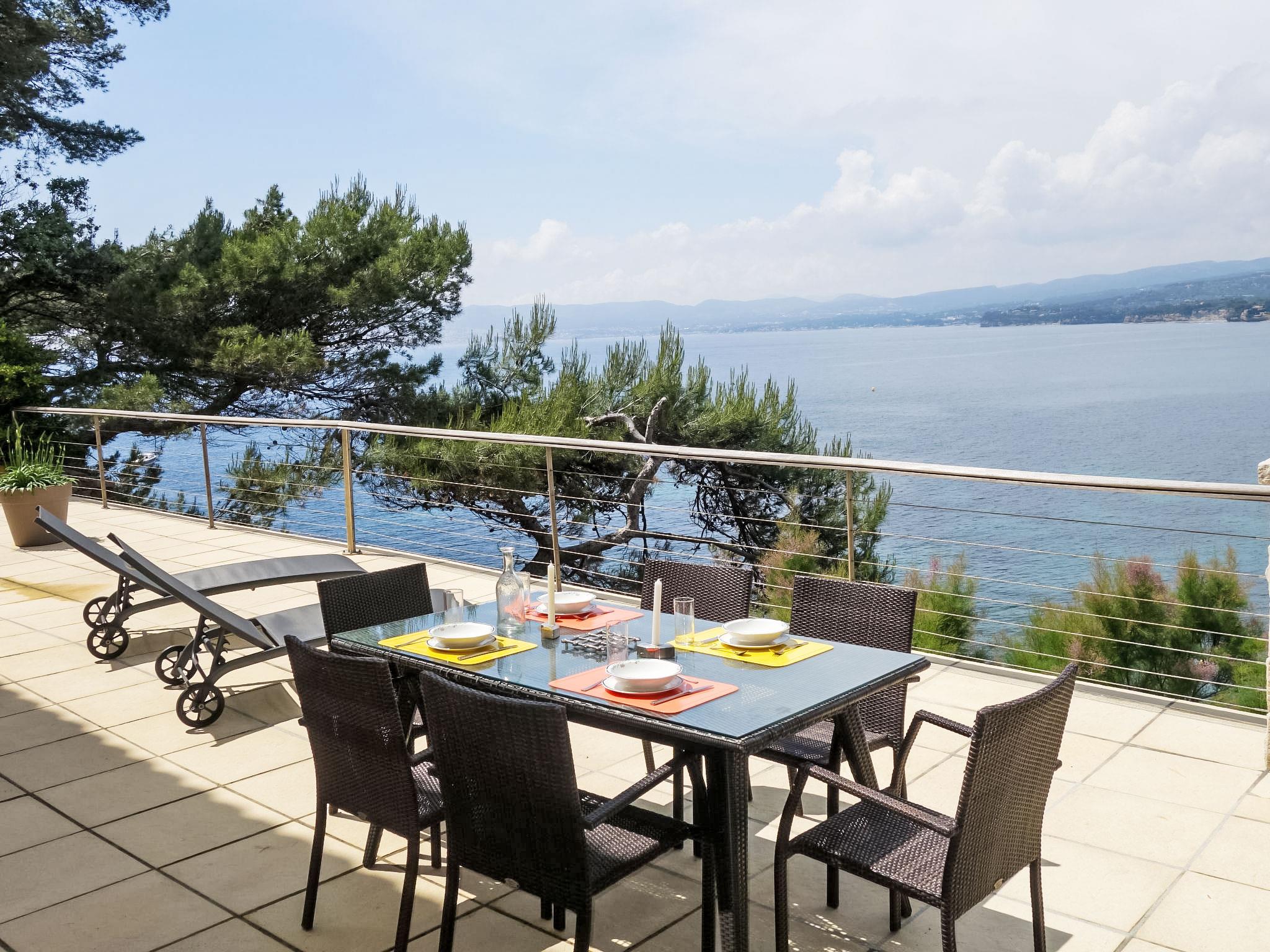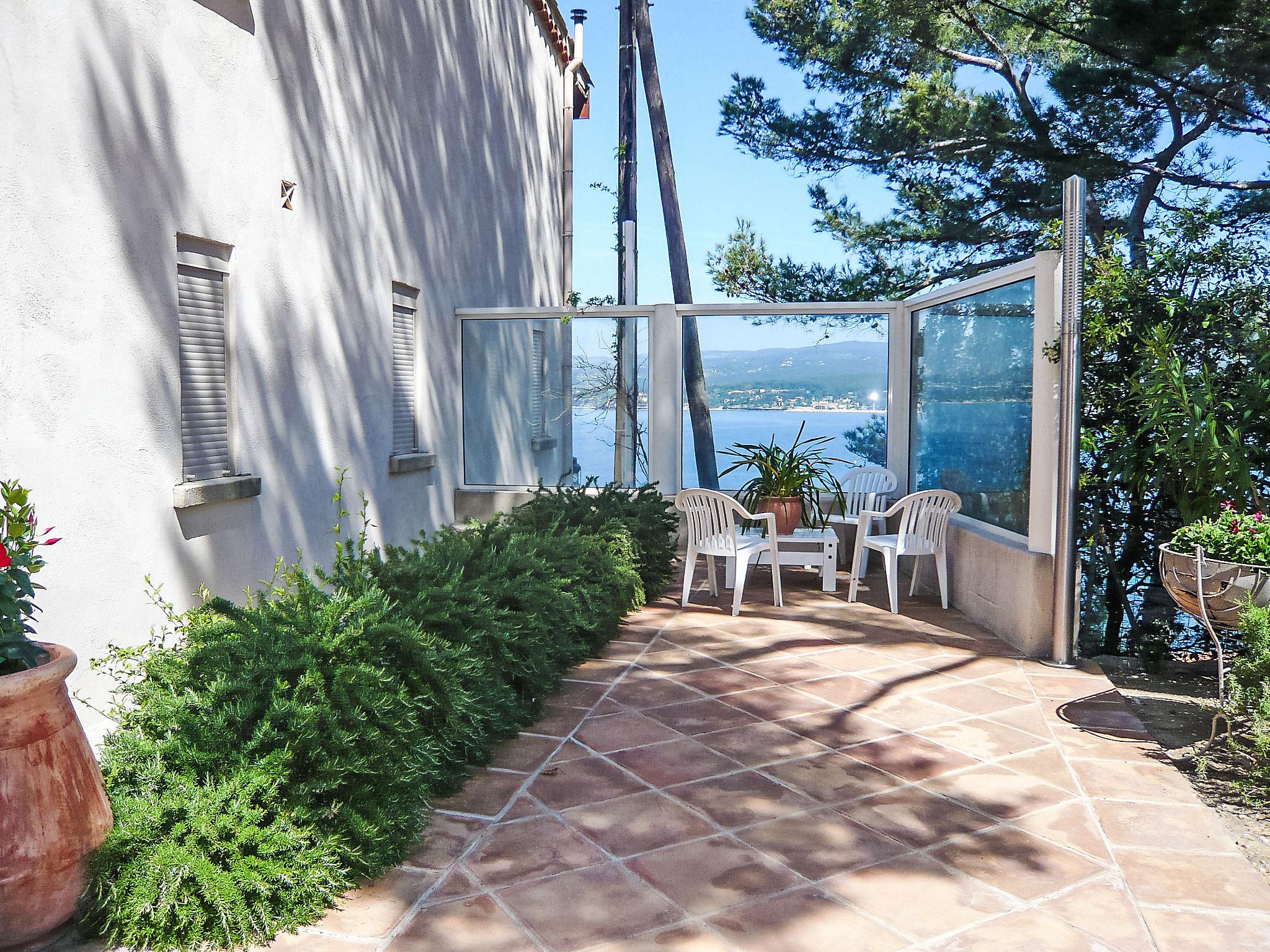 3-room apartment 70 m2. Comfortable and beautiful furnishings: living/dining room with TV (flat screen), DVD and air conditioning. Exit to the terrace. 1 room with 1 french bed (140 cm, length 200 cm), air conditioning. Exit to the terrace. 1 room, window onto the living room with 1 french bed (160 cm, length 200 cm), shower/WC. Open kitchen (dishwasher, 2 ceramic glass hob hotplates, freezer, electric coffee machine, Capsules for coffee machine (Nespresso) extra, combination microwave). Shower/WC. Underfloor heating. Terrace 50 m2, north-west facing position. Terrace furniture, deck chairs. Very beautiful panoramic view of the sea. Facilities: washing machine, dryer, iron, baby cot for up to 2 year olds. Internet (WiFi, free). Please note: non-smokers only. TV only FR. Smoke alarm. Access to the house is via 20 steps down. Access to the cove for swimming is private and is also via steps. 25 m² terrace above the boat garage. Charcoal and wood barbecue prohibited. Pets prohibited. The air conditioning is done by cooling the ground. 83112000214DW